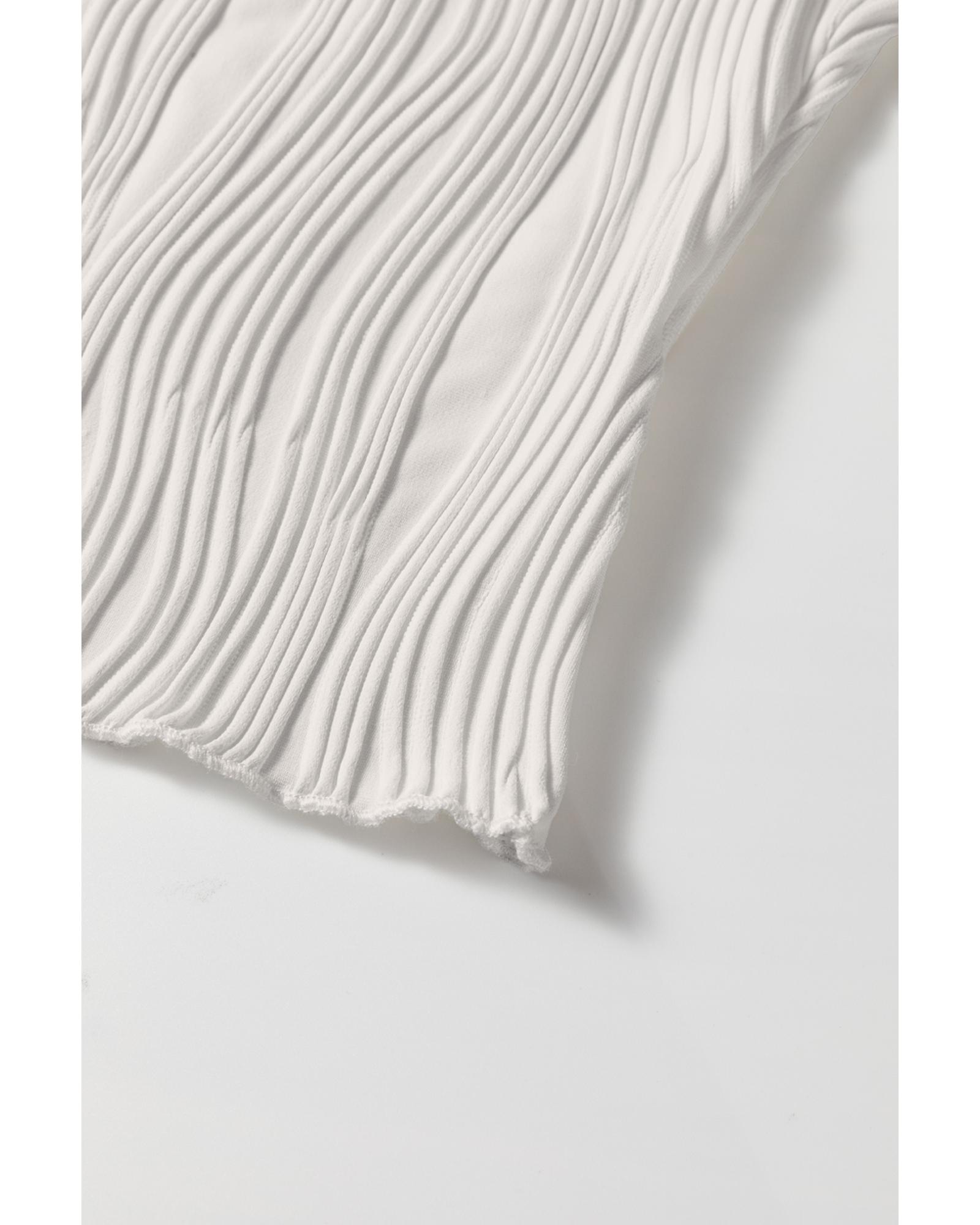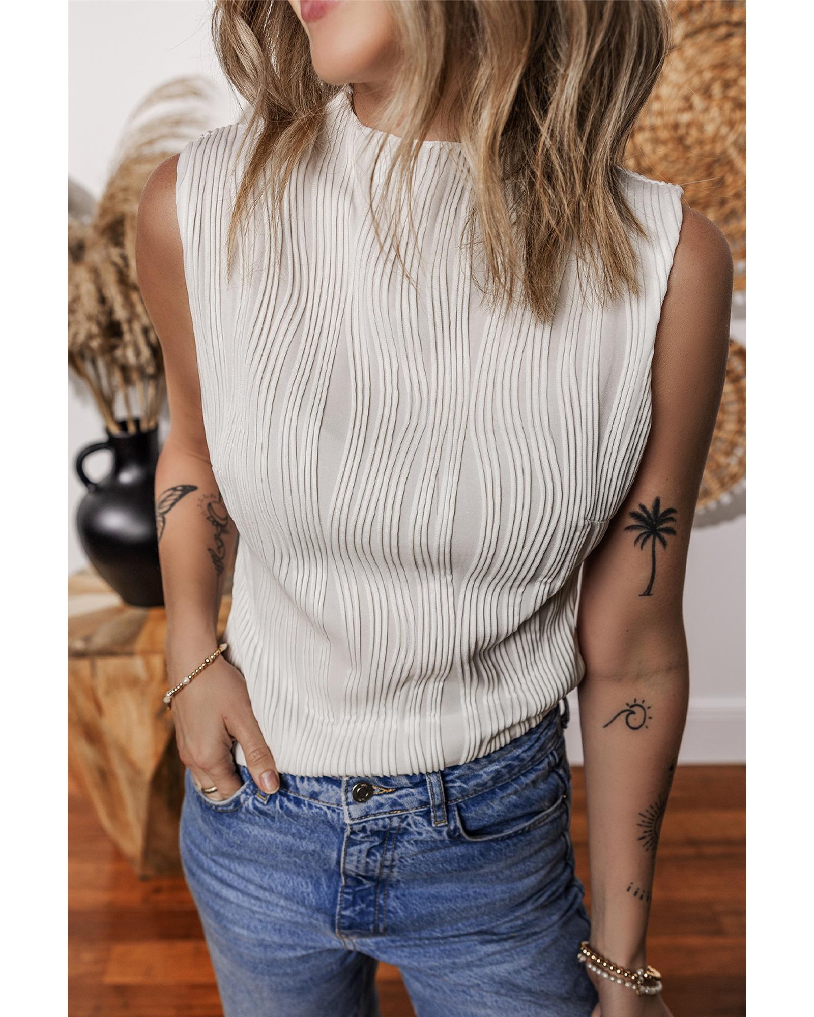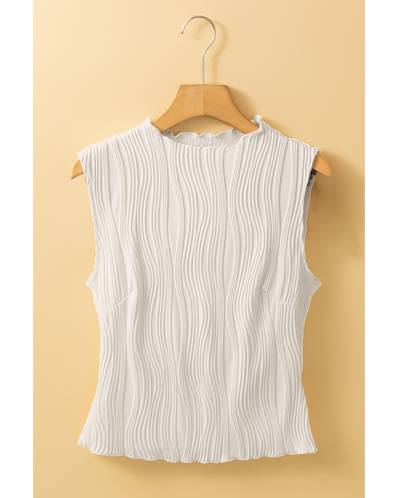 White Solid Color Wavy Textured Round Neck Tank Top – XL