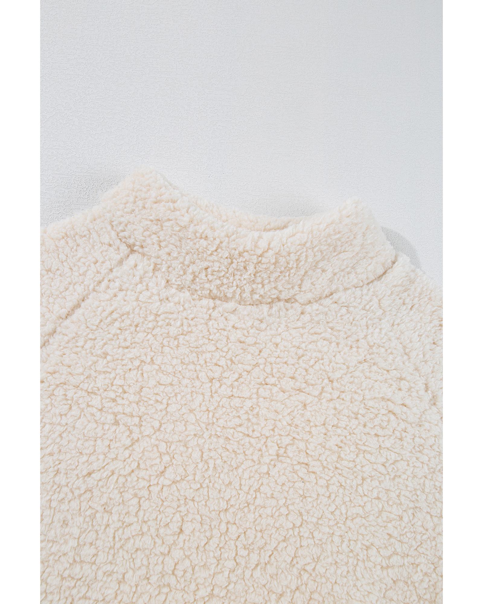 - White Solid Fleece High Neck Drop Shoulder Pullover Sweatshirt
