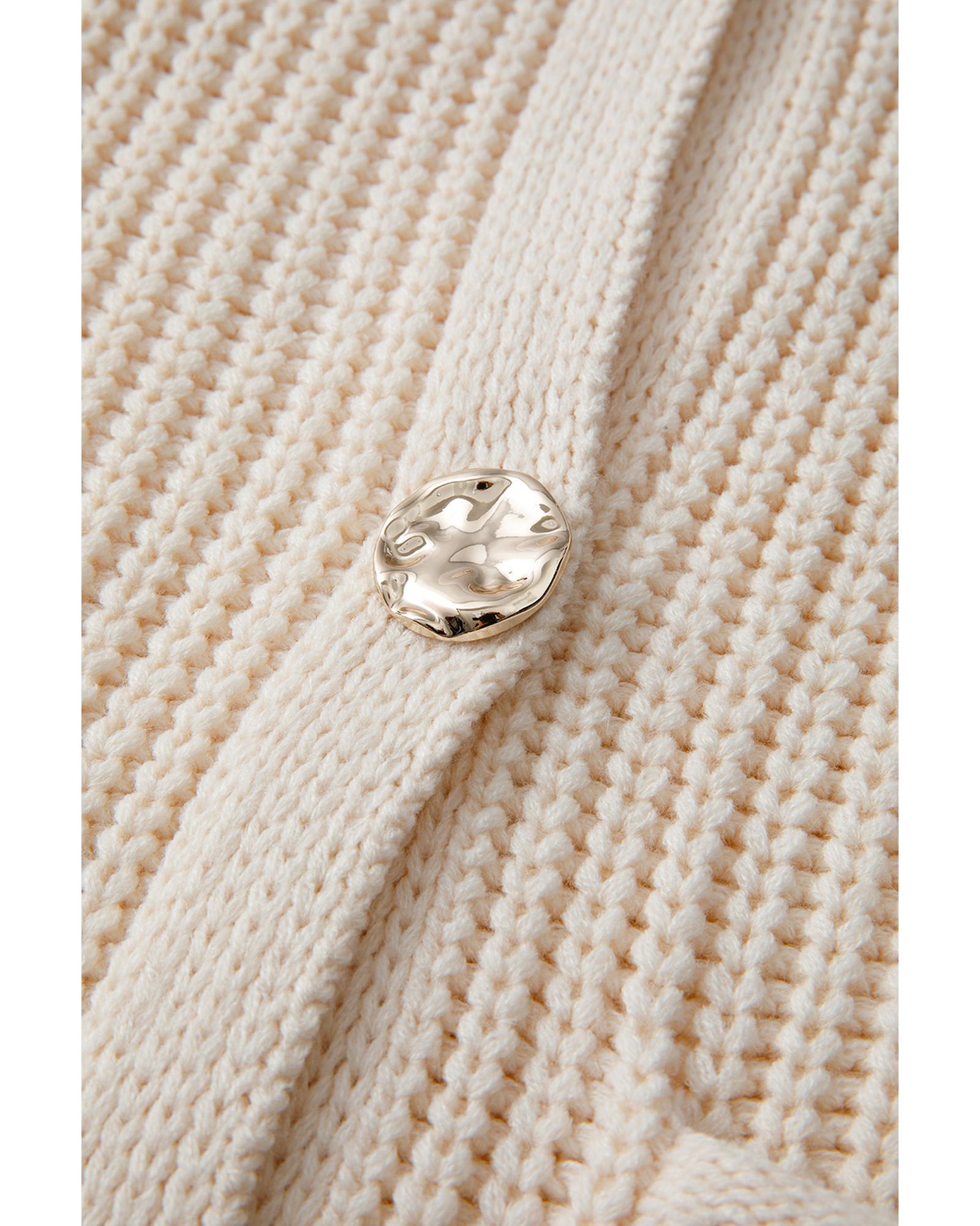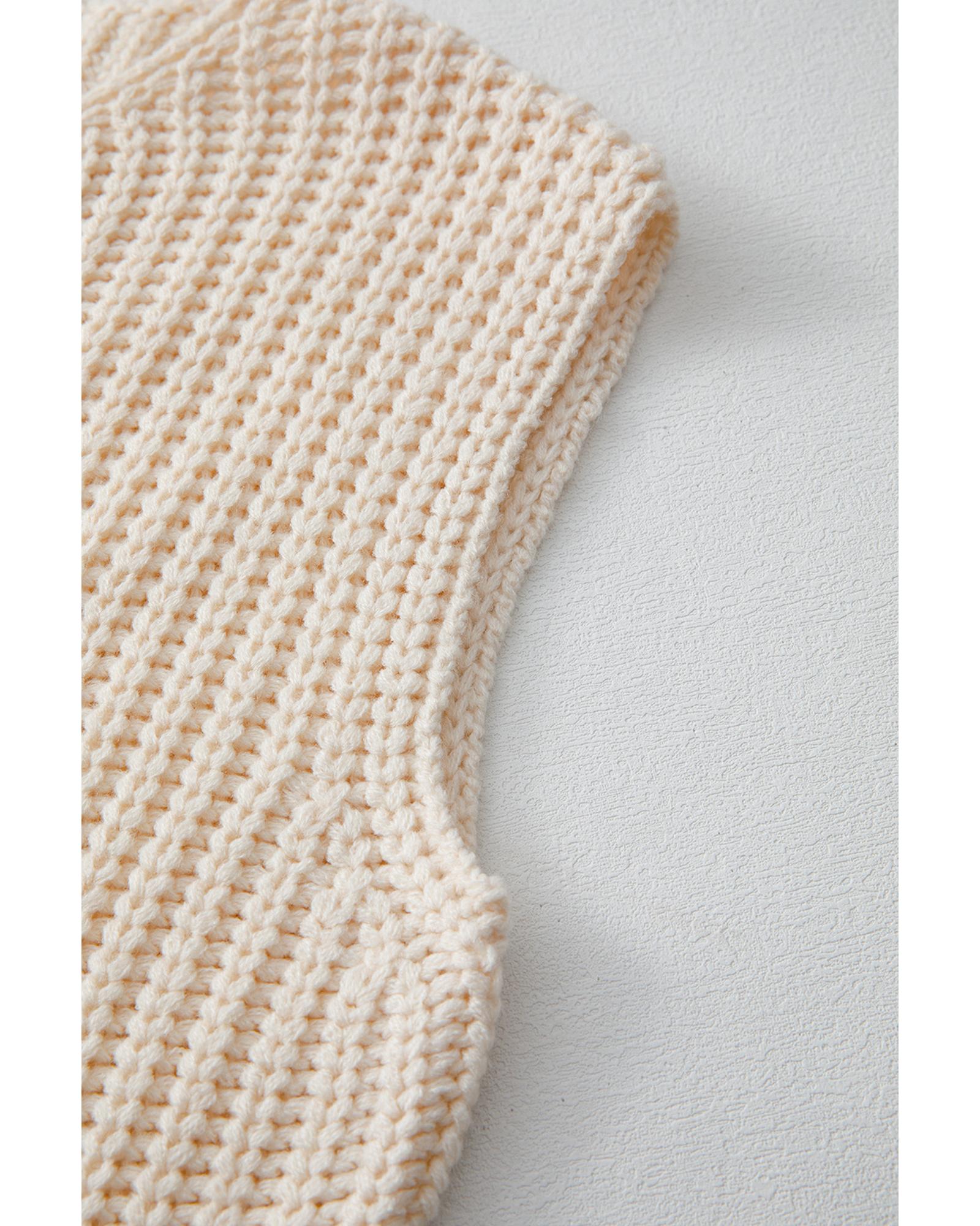 White Solid Textured Knit Side Pockets Buttoned Sweater Vest – XL
