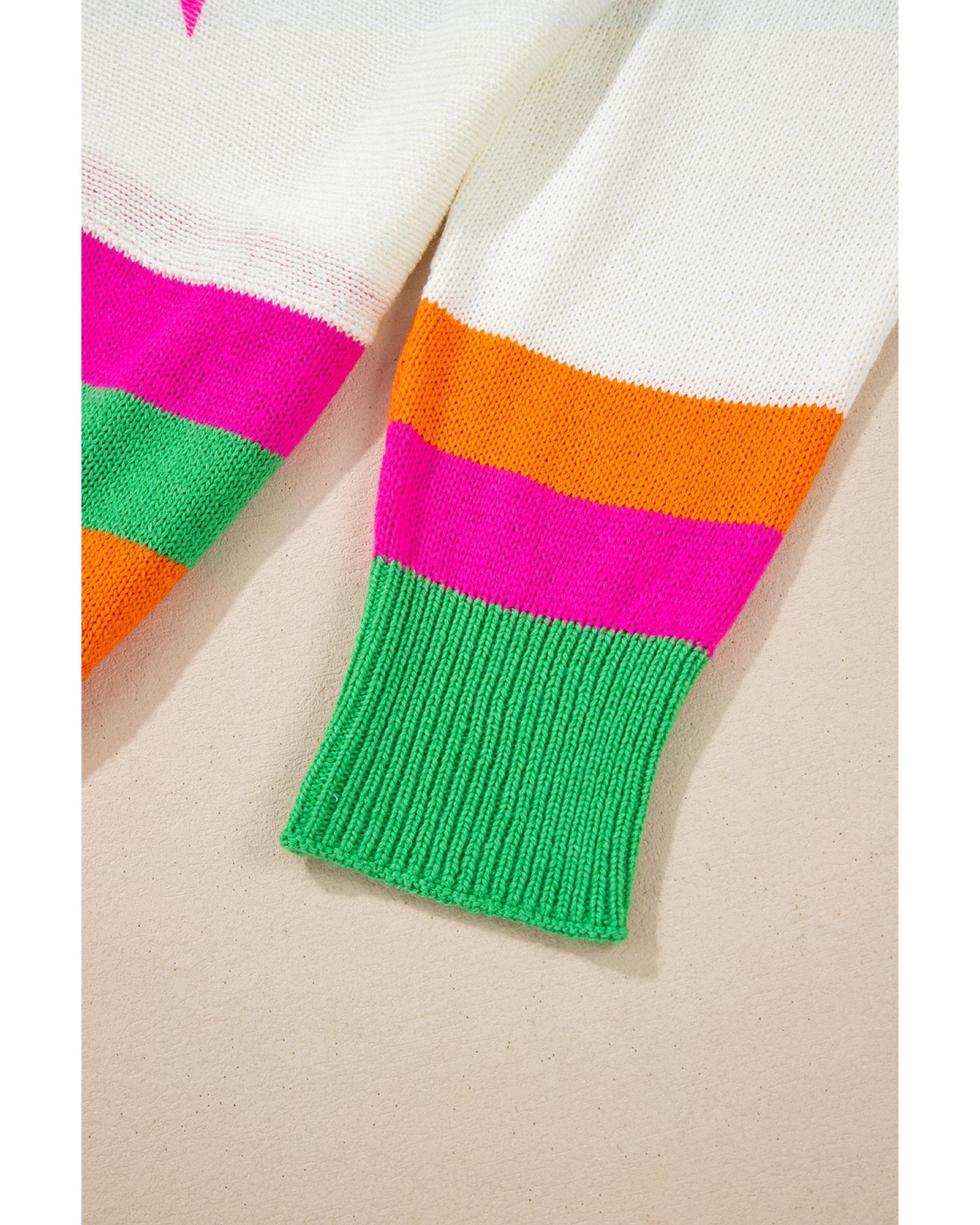 White Star Pattern Colorblock Striped Edge Drop Shoulder Sweater – M