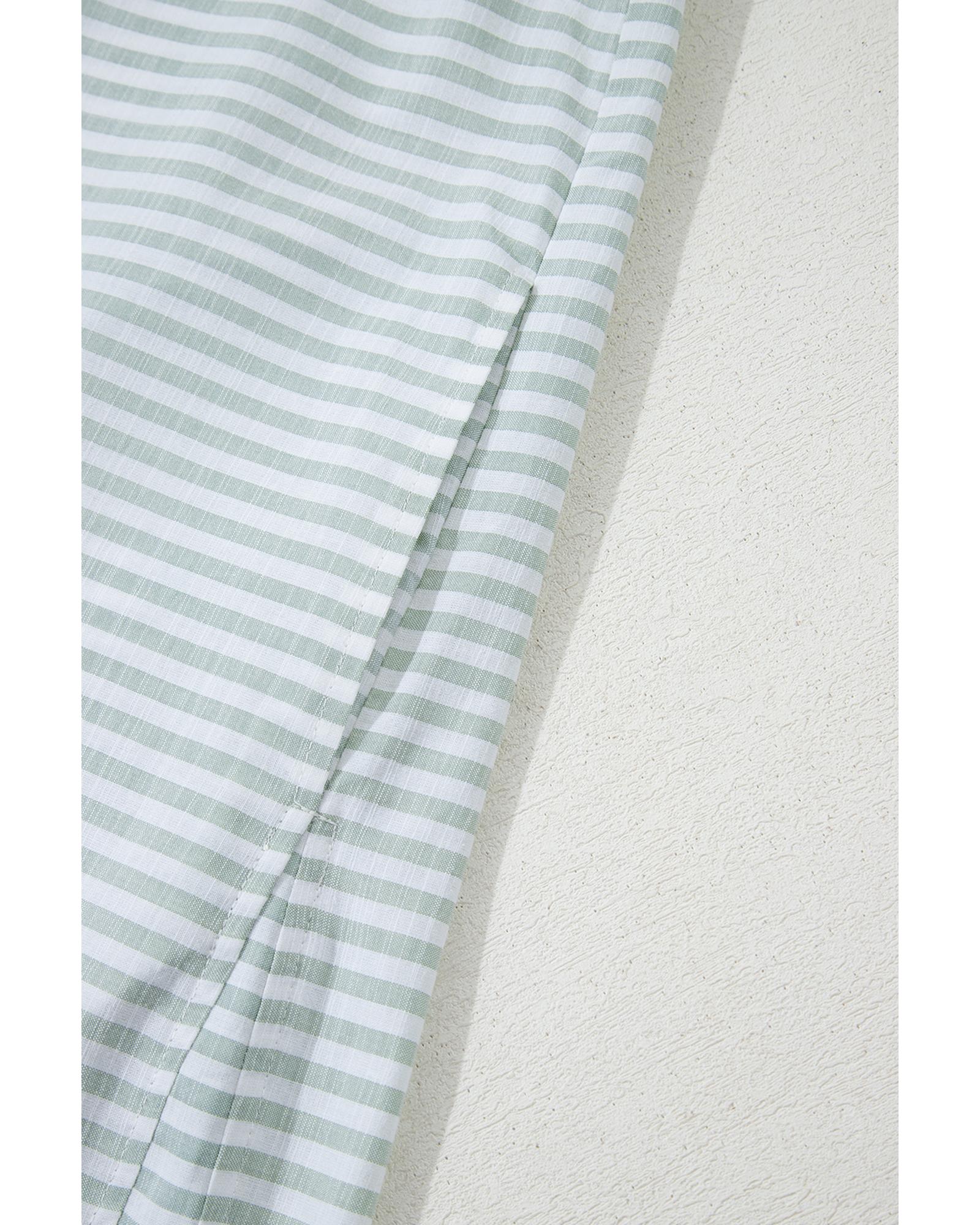White Stripe Collared V Neck Chest Pocket Long Sleeve Beach Cover up – 2XL
