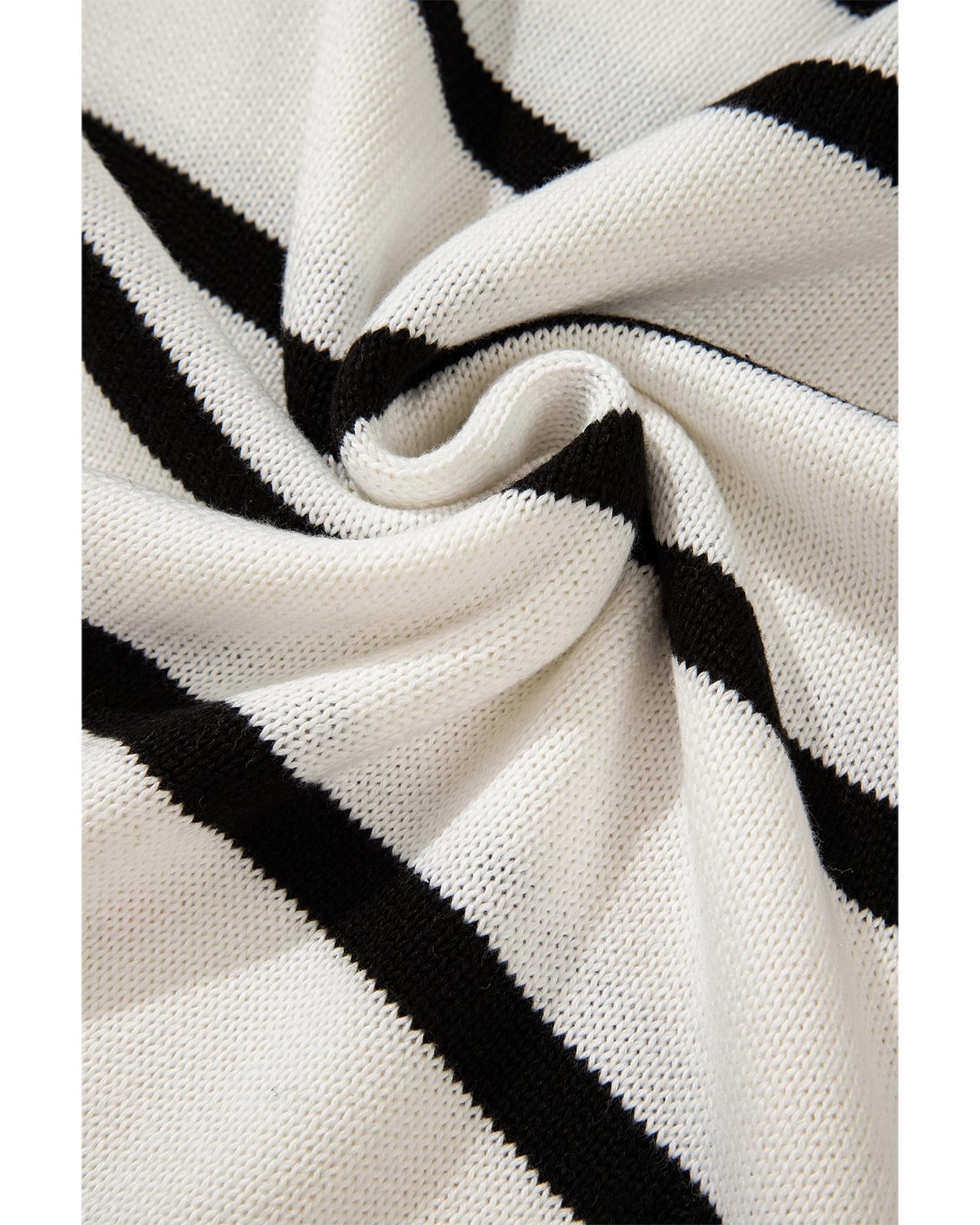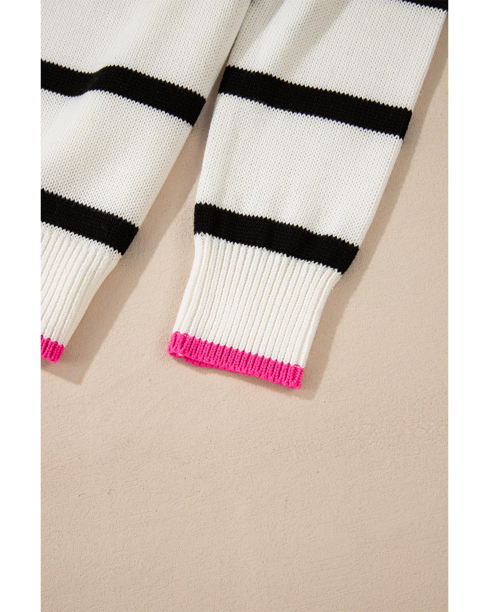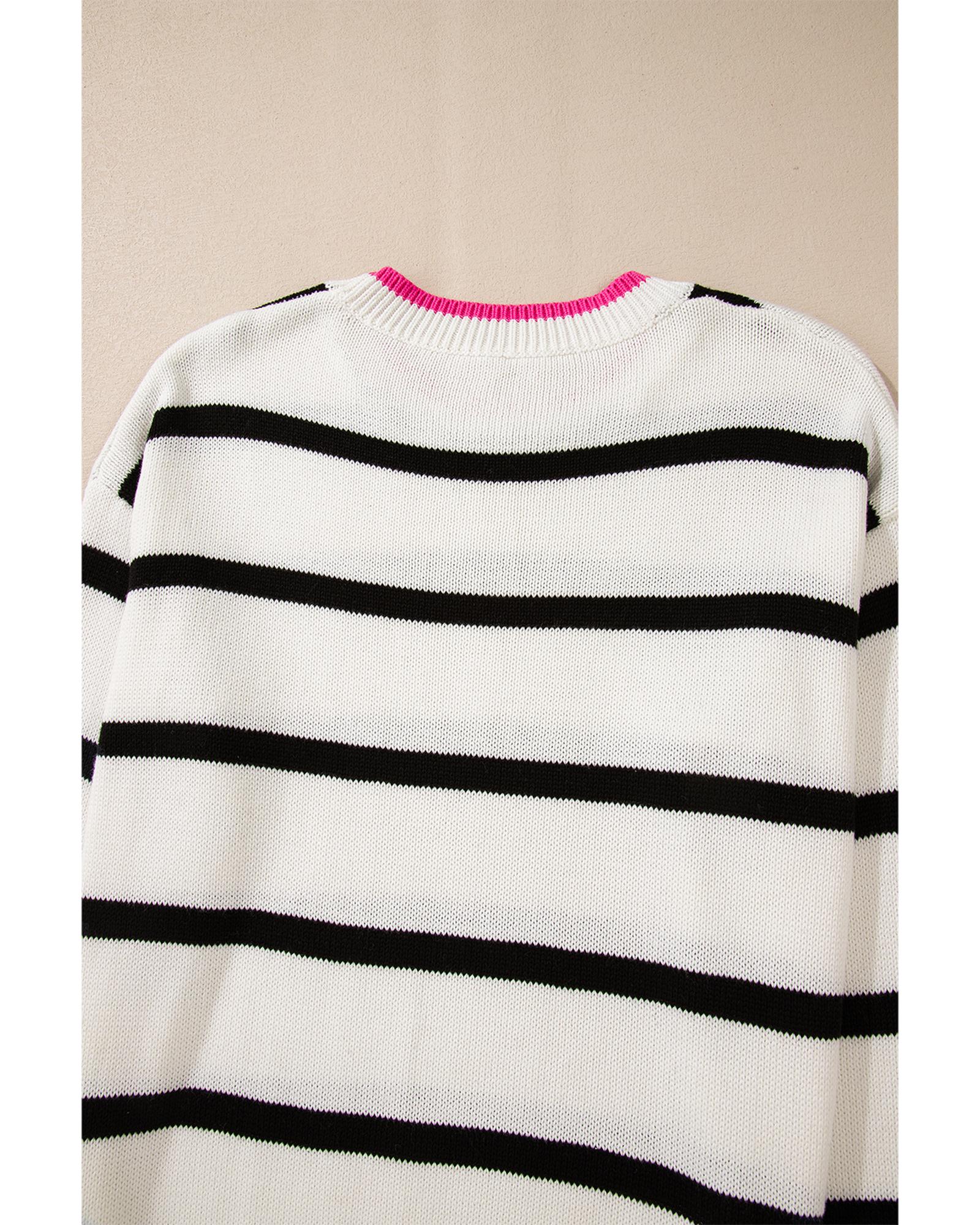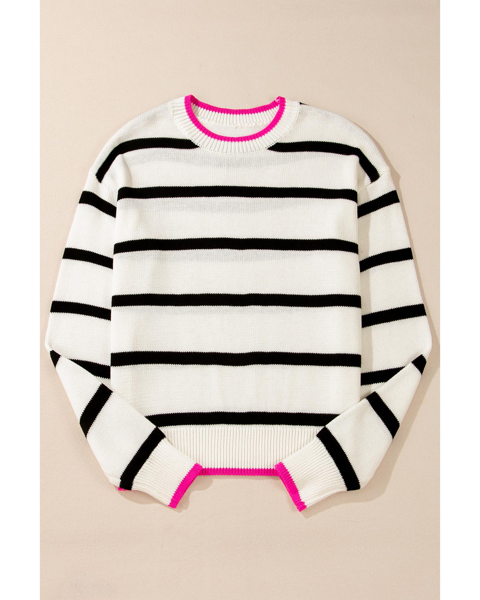 White Stripe Color Contrast Drop Shoulder Crew Neck Sweater – S
