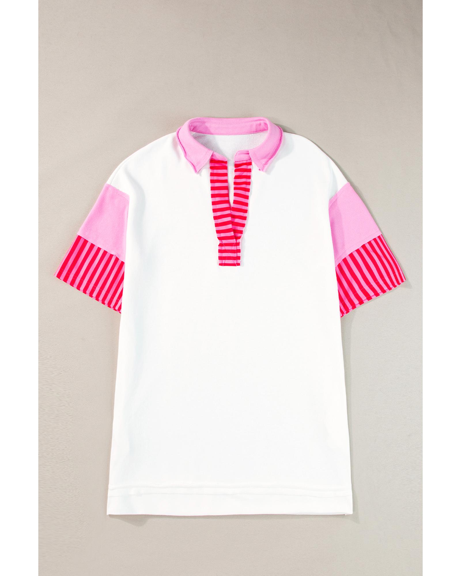 White Stripe Colorblock Patchwork Short Sleeve T Shirt Dress – S