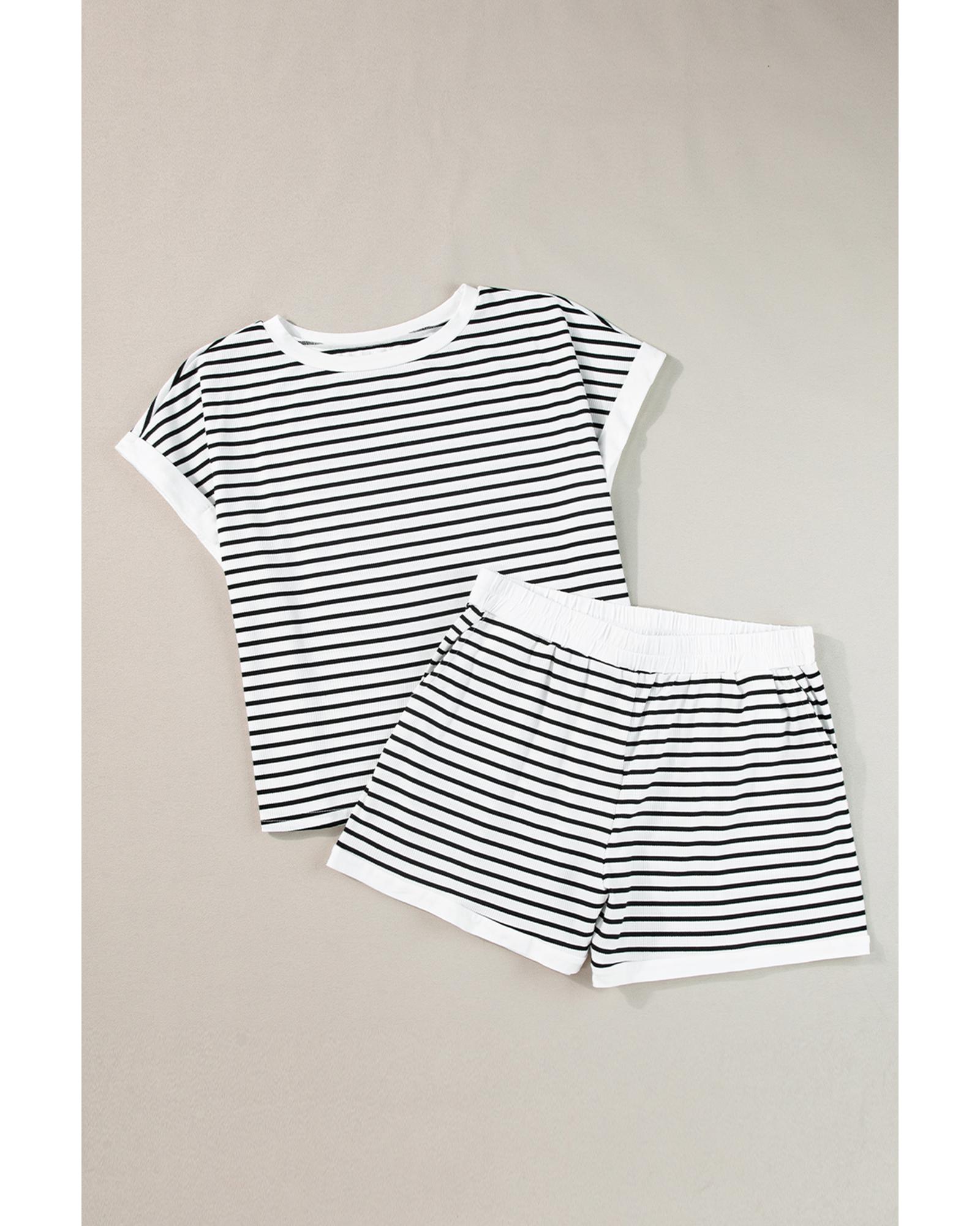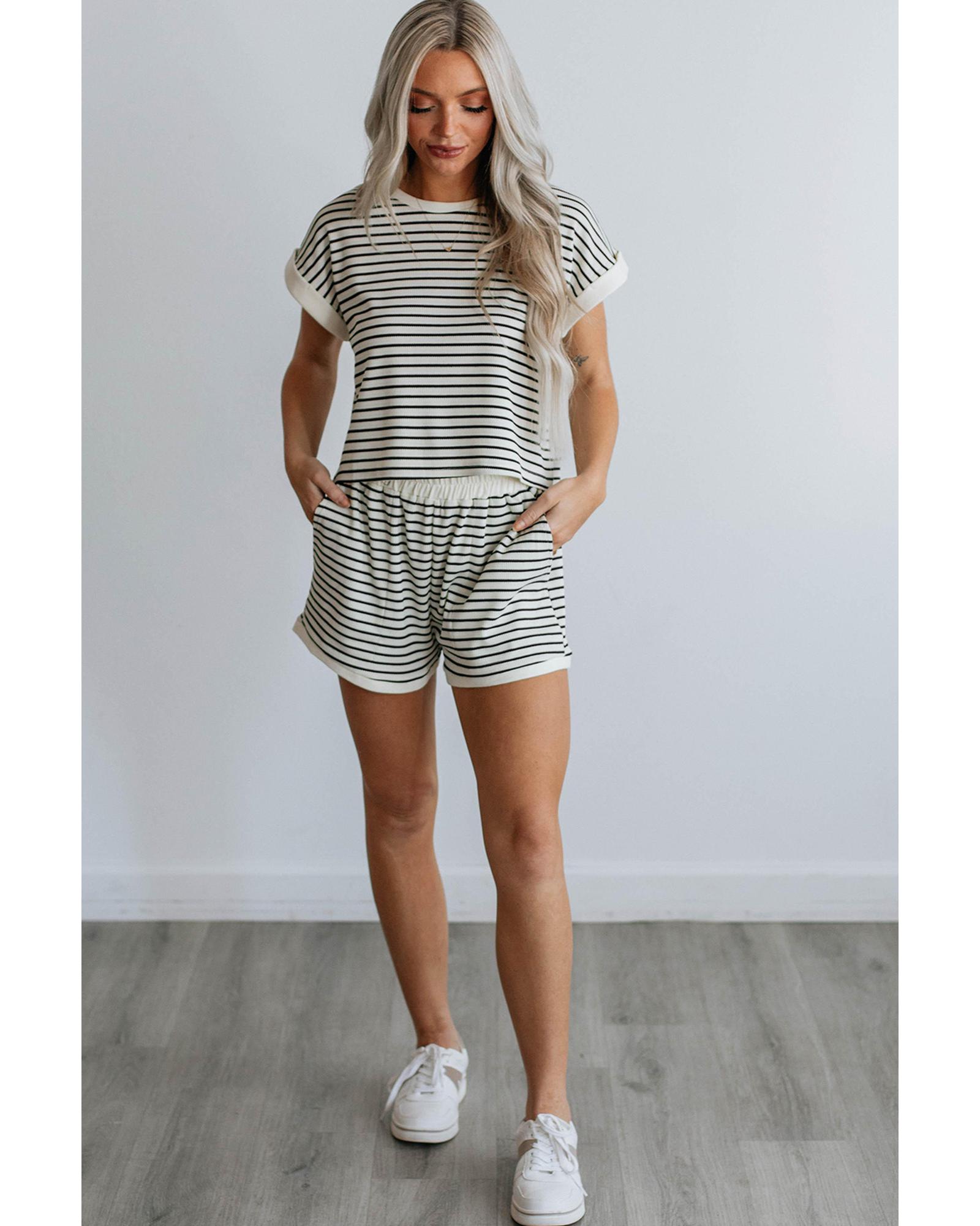White Stripe Contrast Edge Tee and Shorts Set – M