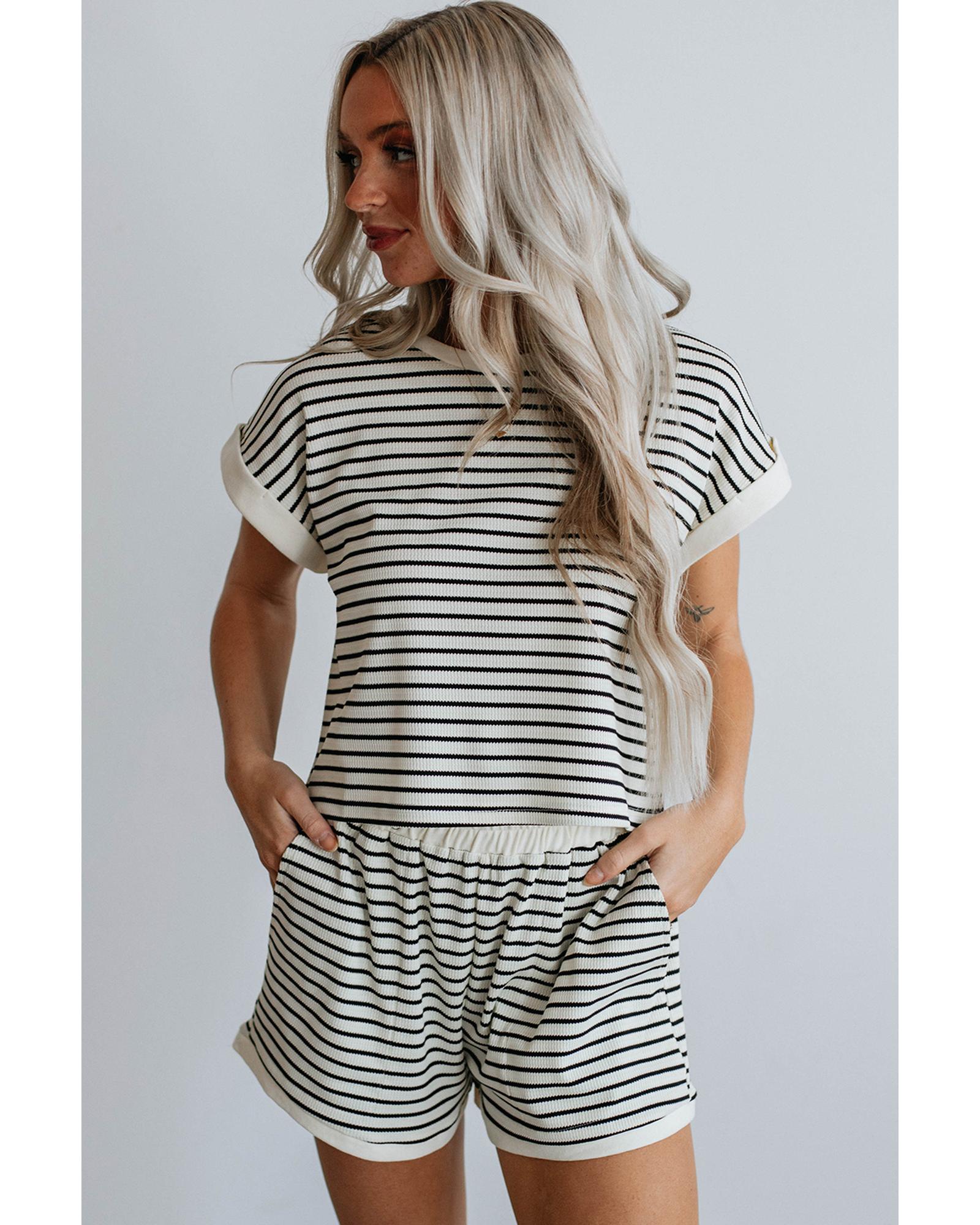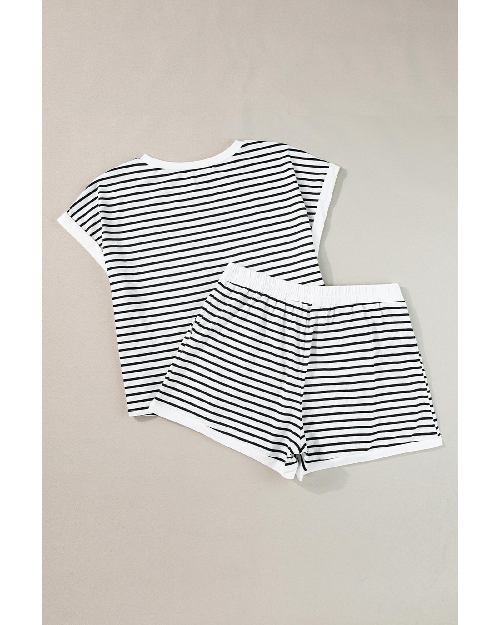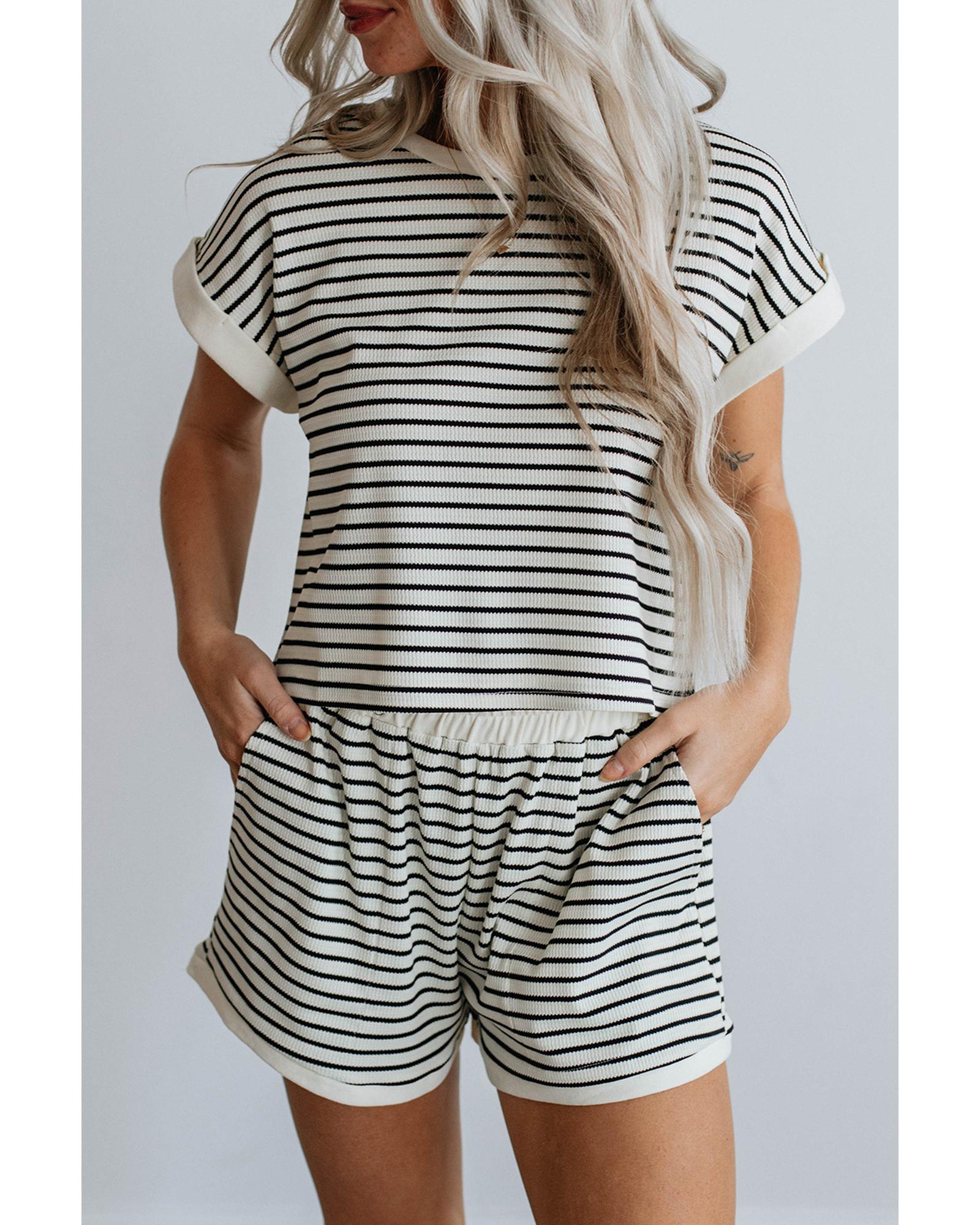 White Stripe Contrast Edge Tee and Shorts Set – S