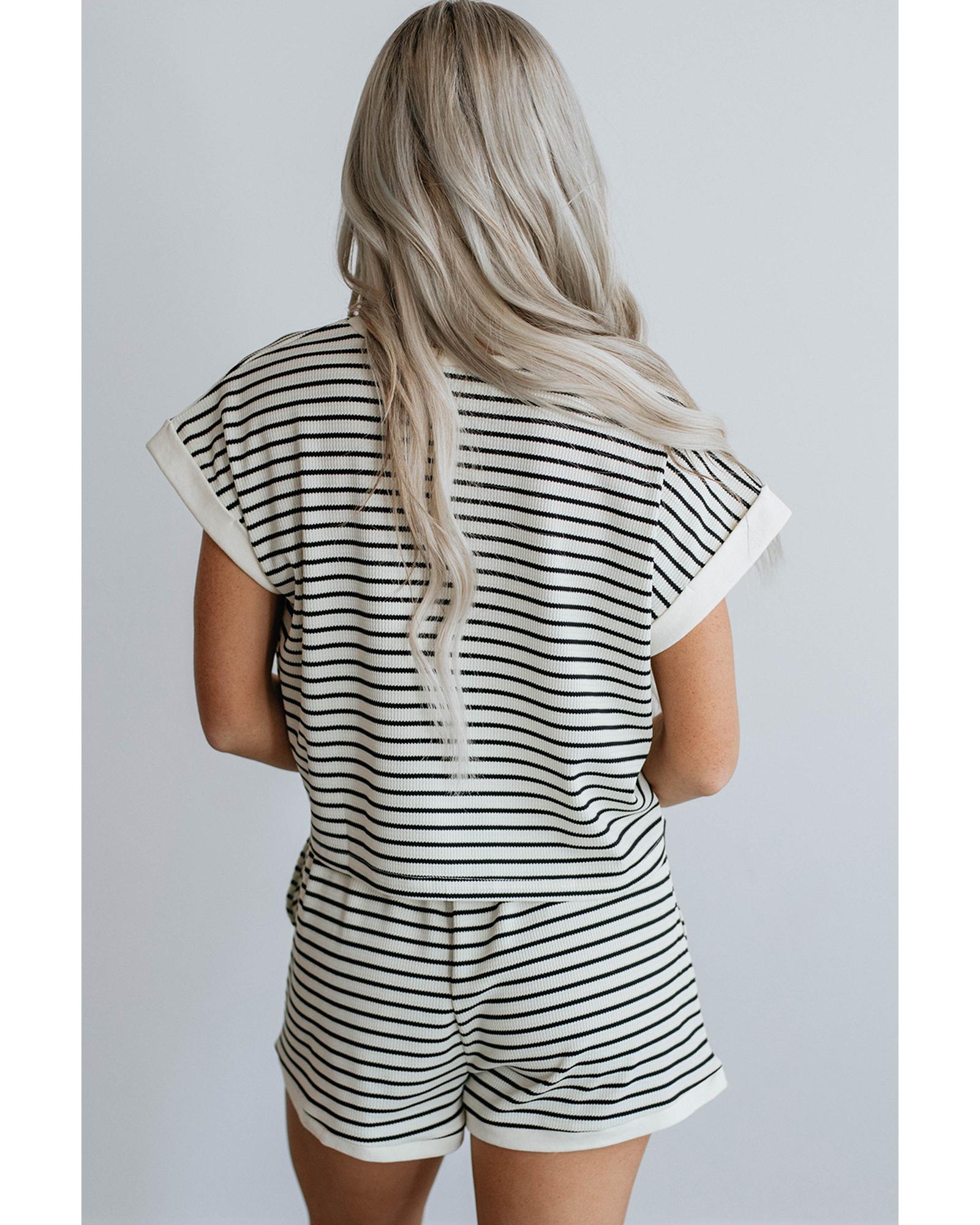 White Stripe Contrast Edge Tee and Shorts Set – XL