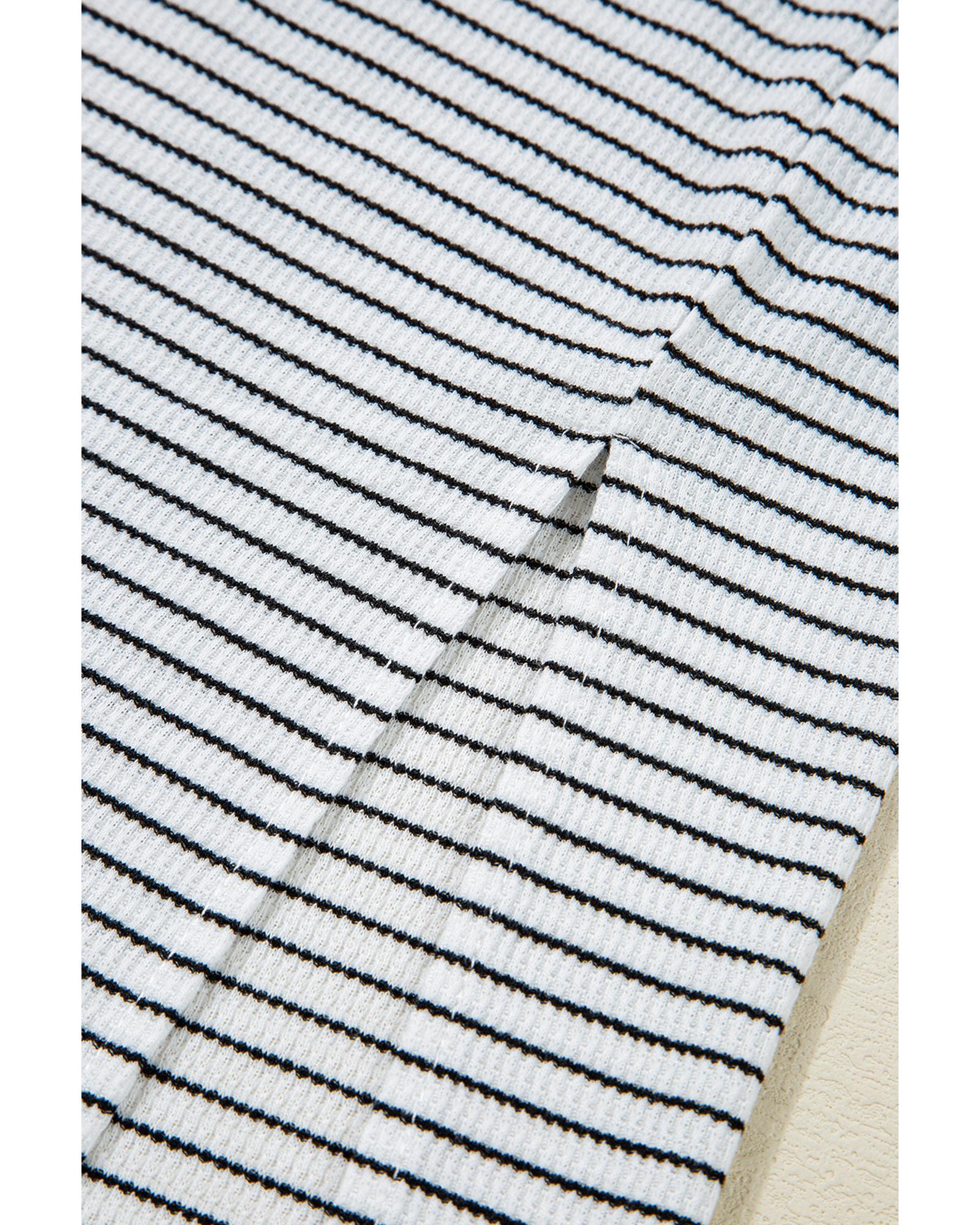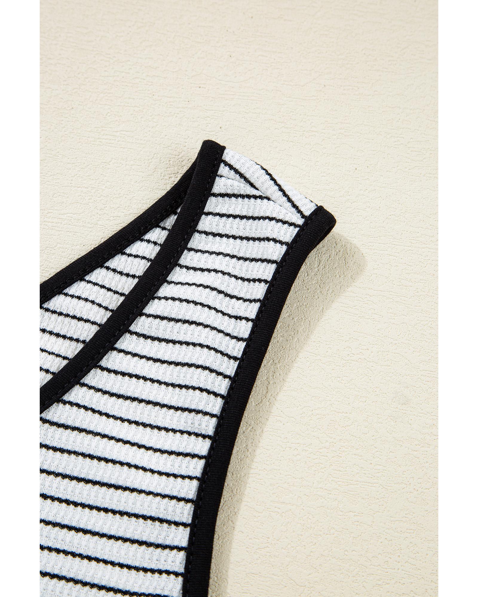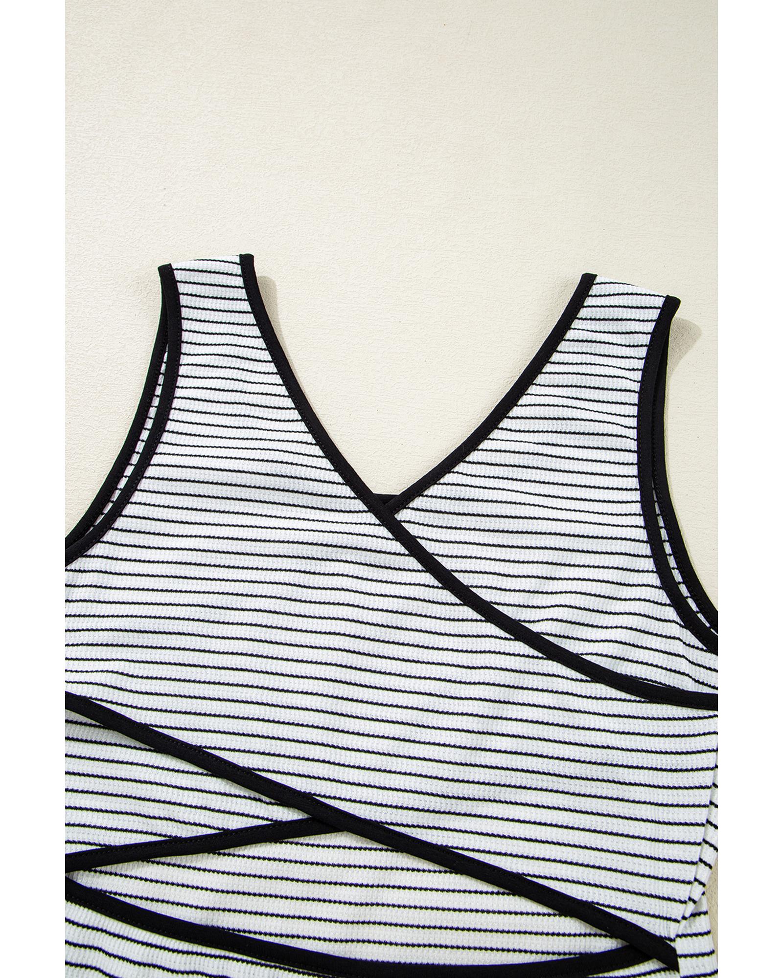 • White Stripe Criss Cross Side Slits Slim Fit Sleeveless Midi Dress