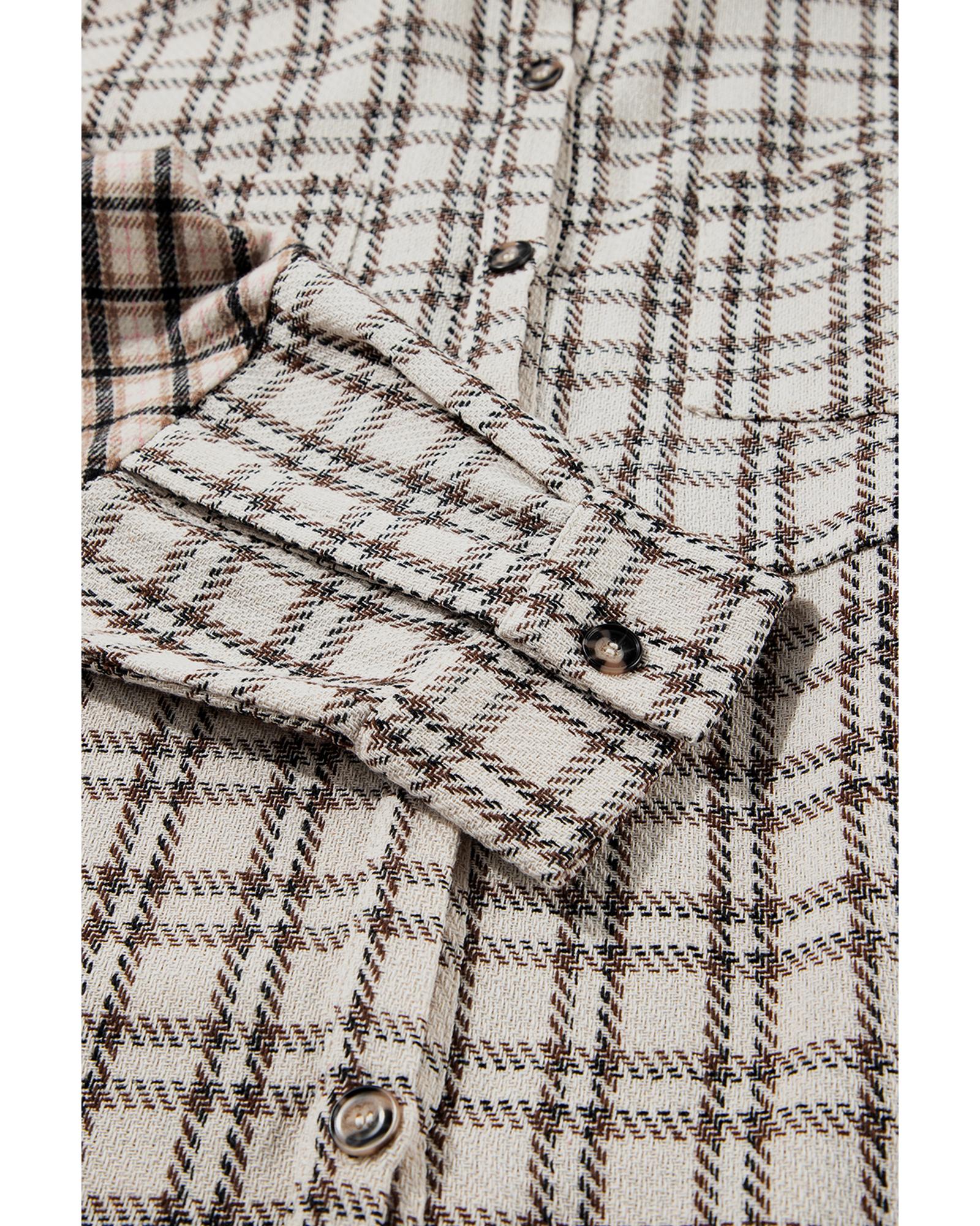 White Stripe Plus Size Plaid Buttoned Raw Hem Tunic Shirt Dress – 3X