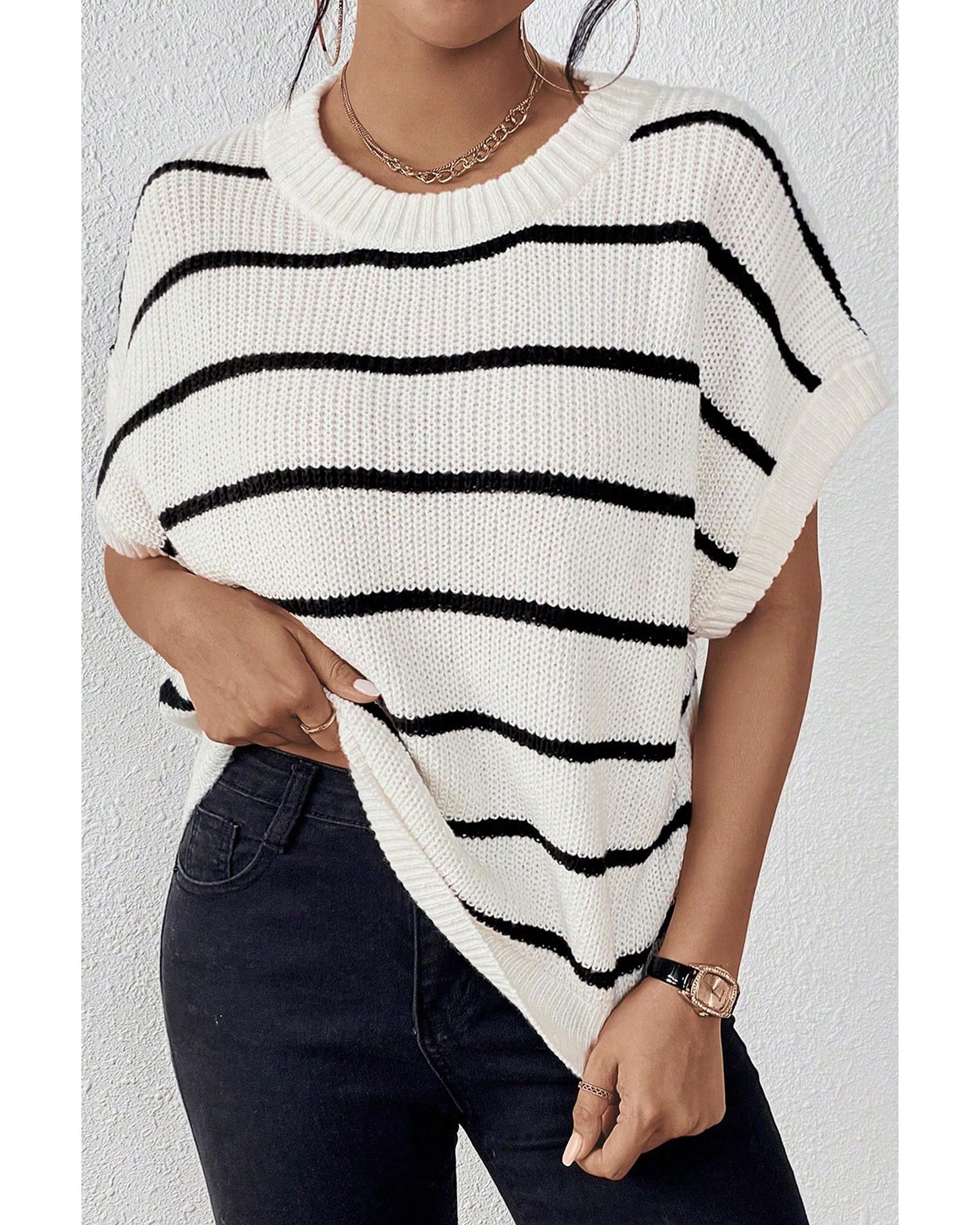White Stripe Striped Pattern Batwing Sleeve Sweater – XL