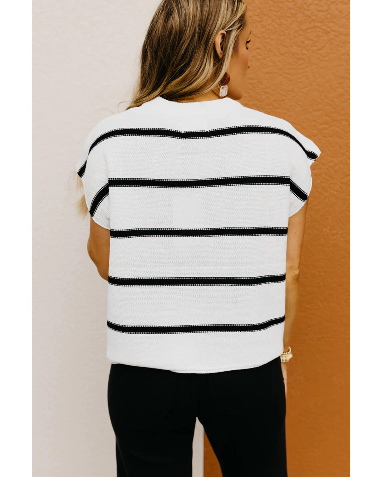 White Striped Batwing Sleeve Sweater Tee – M