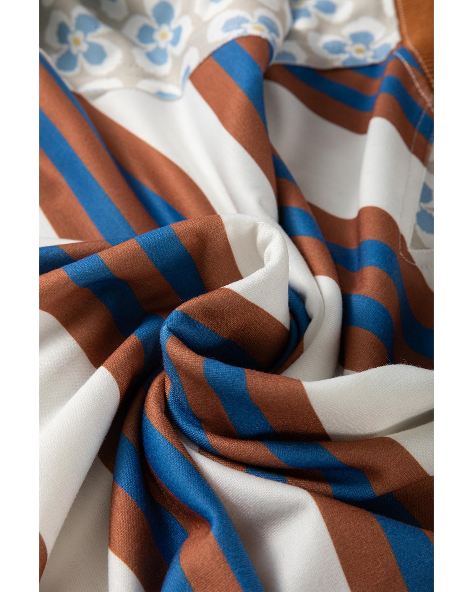 - White striped floral printed patchwork blouse