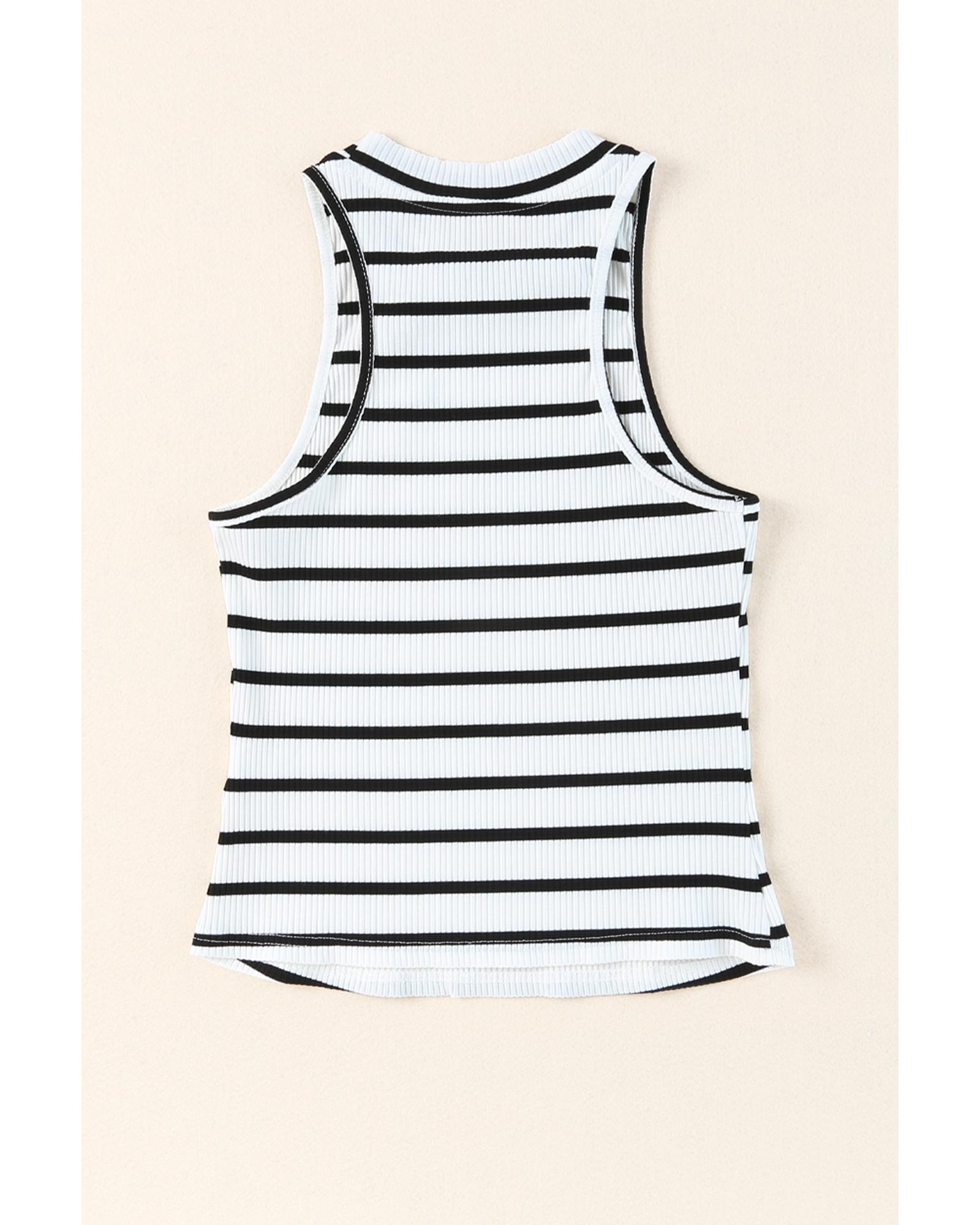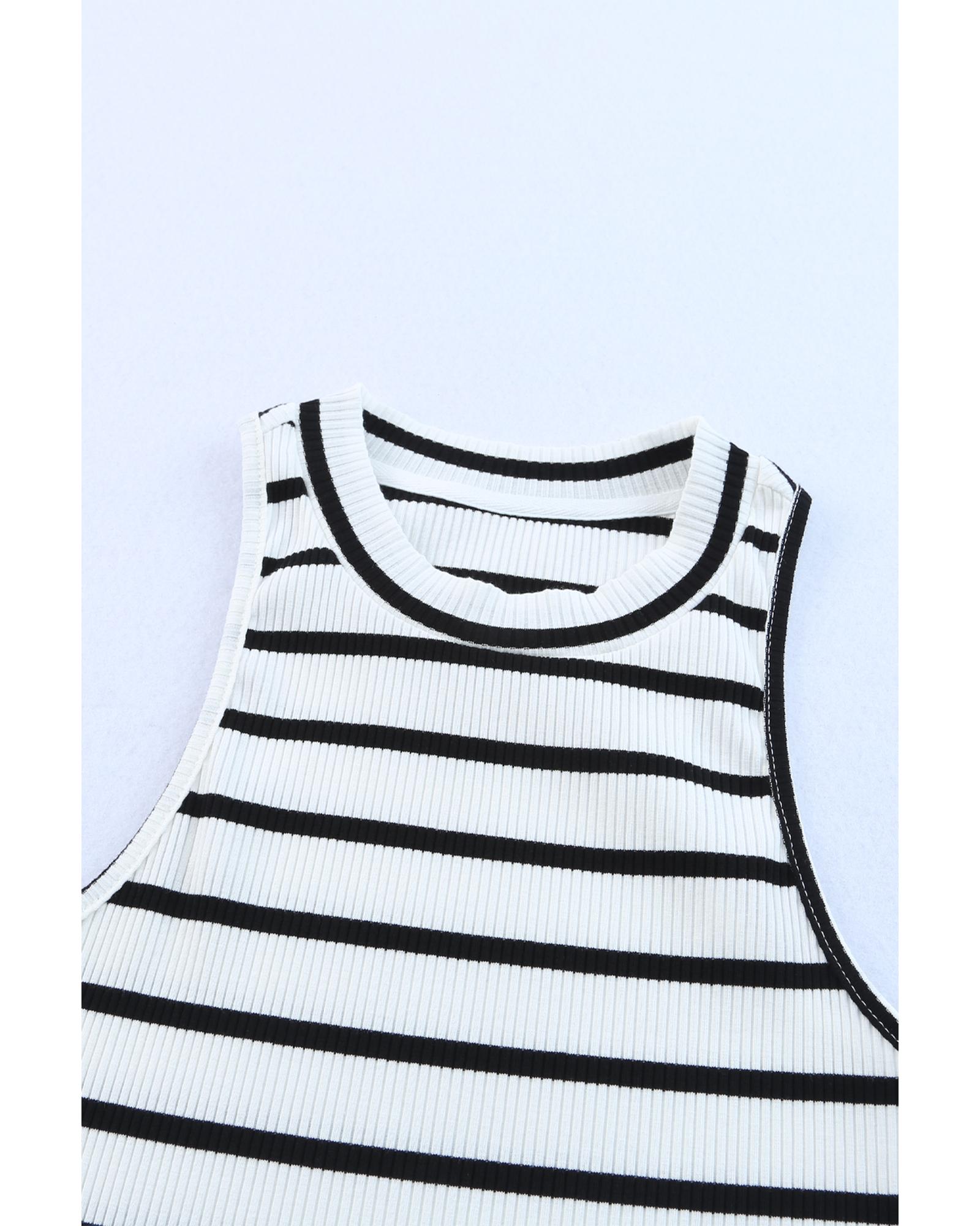White Striped Print Ribbed O-neck Sleeveless Top – L