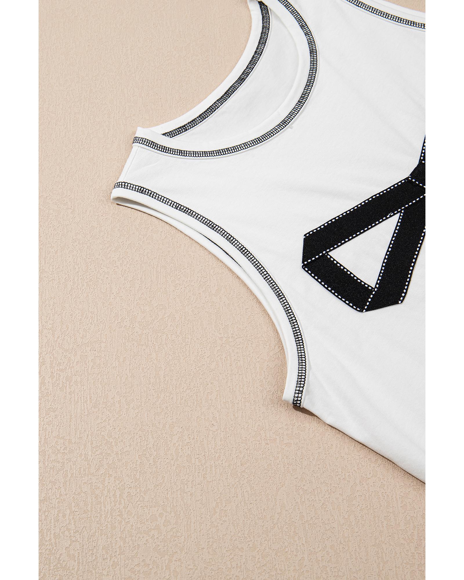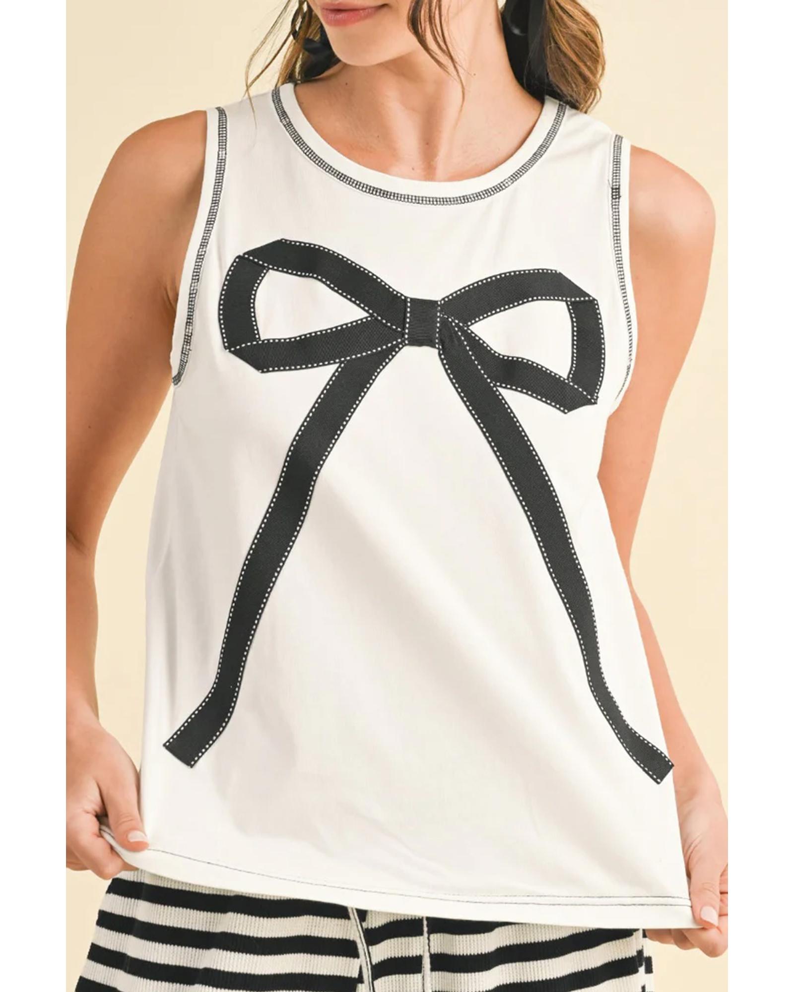 White Sweet Bow Stitching Trim Sleeveless Top – M