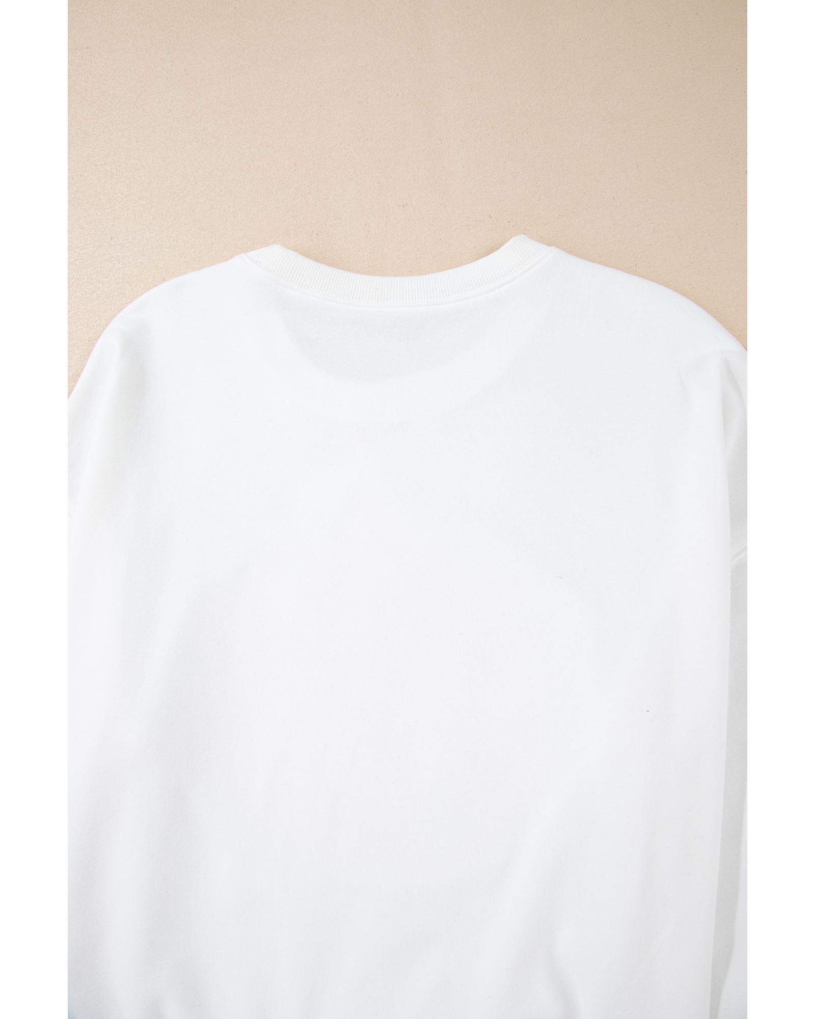 White Terry Halloween Pumpkin Patched Pattern Pullover Sweatshirt – L