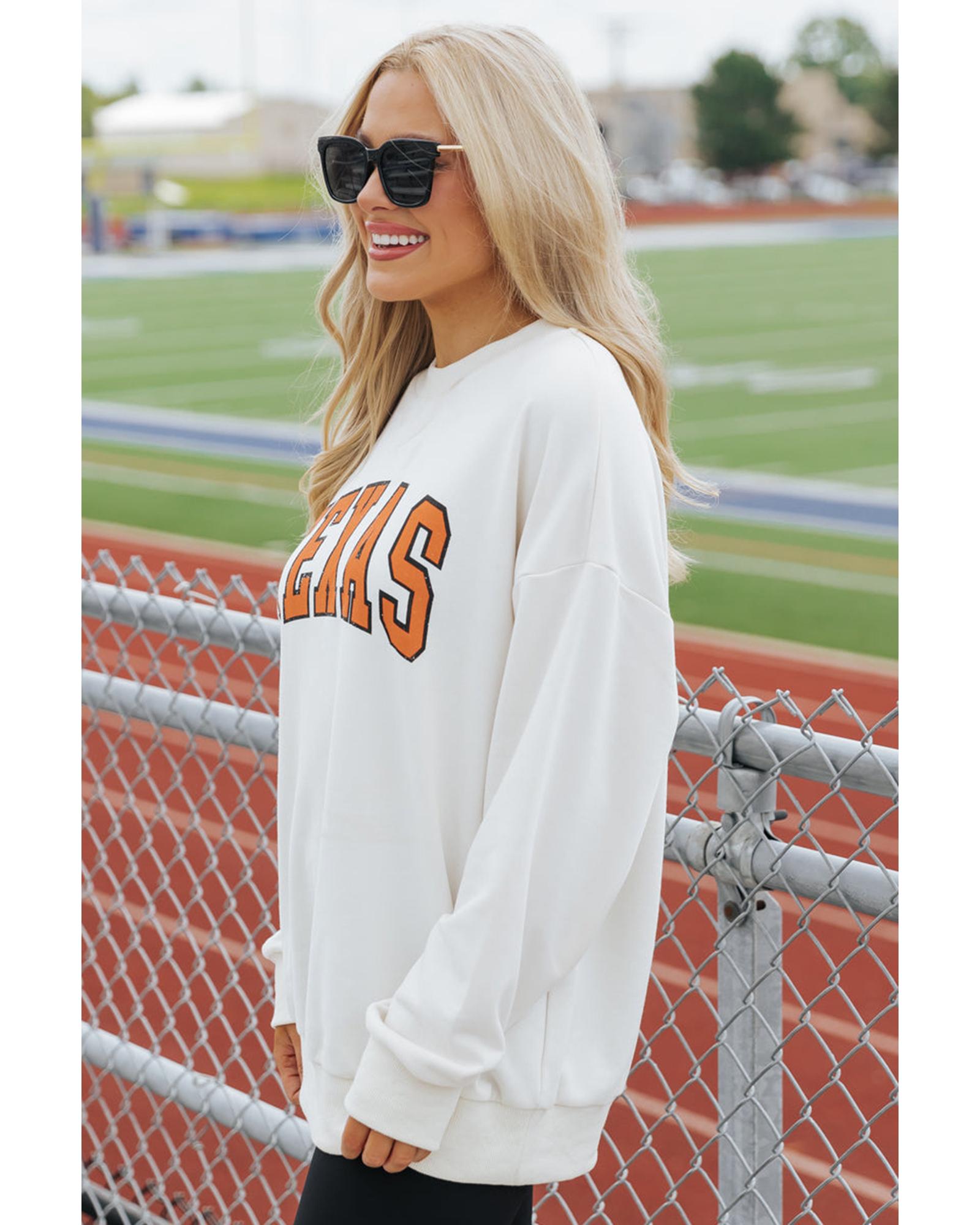 White TEXAS Graphic Drop Shoulder Crewneck Sweatshirt – M