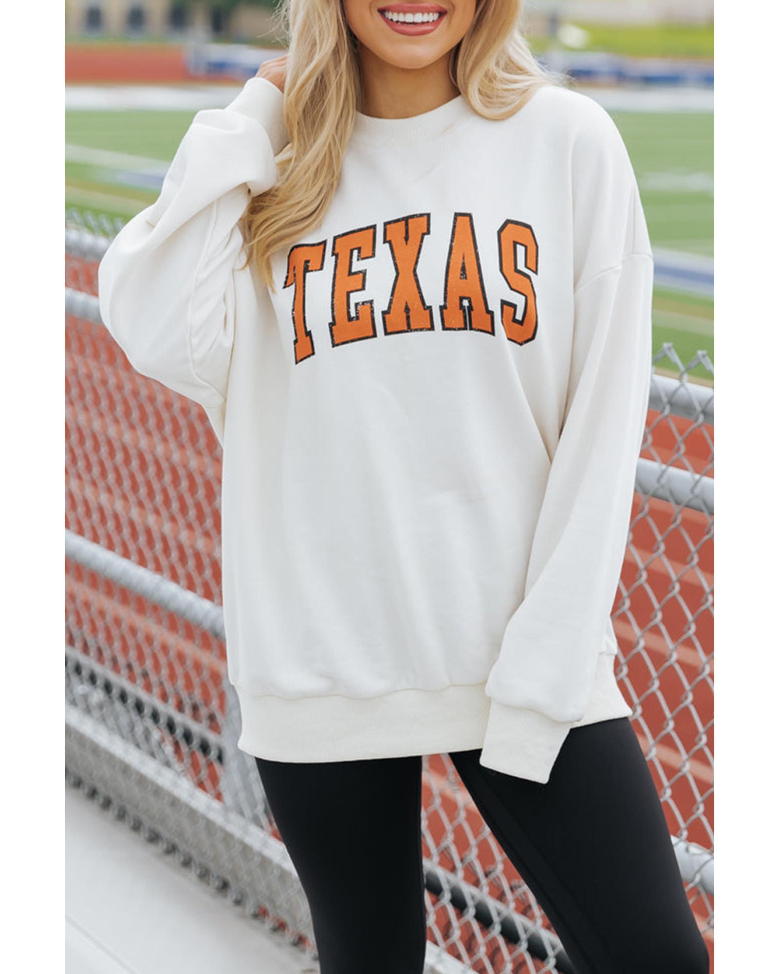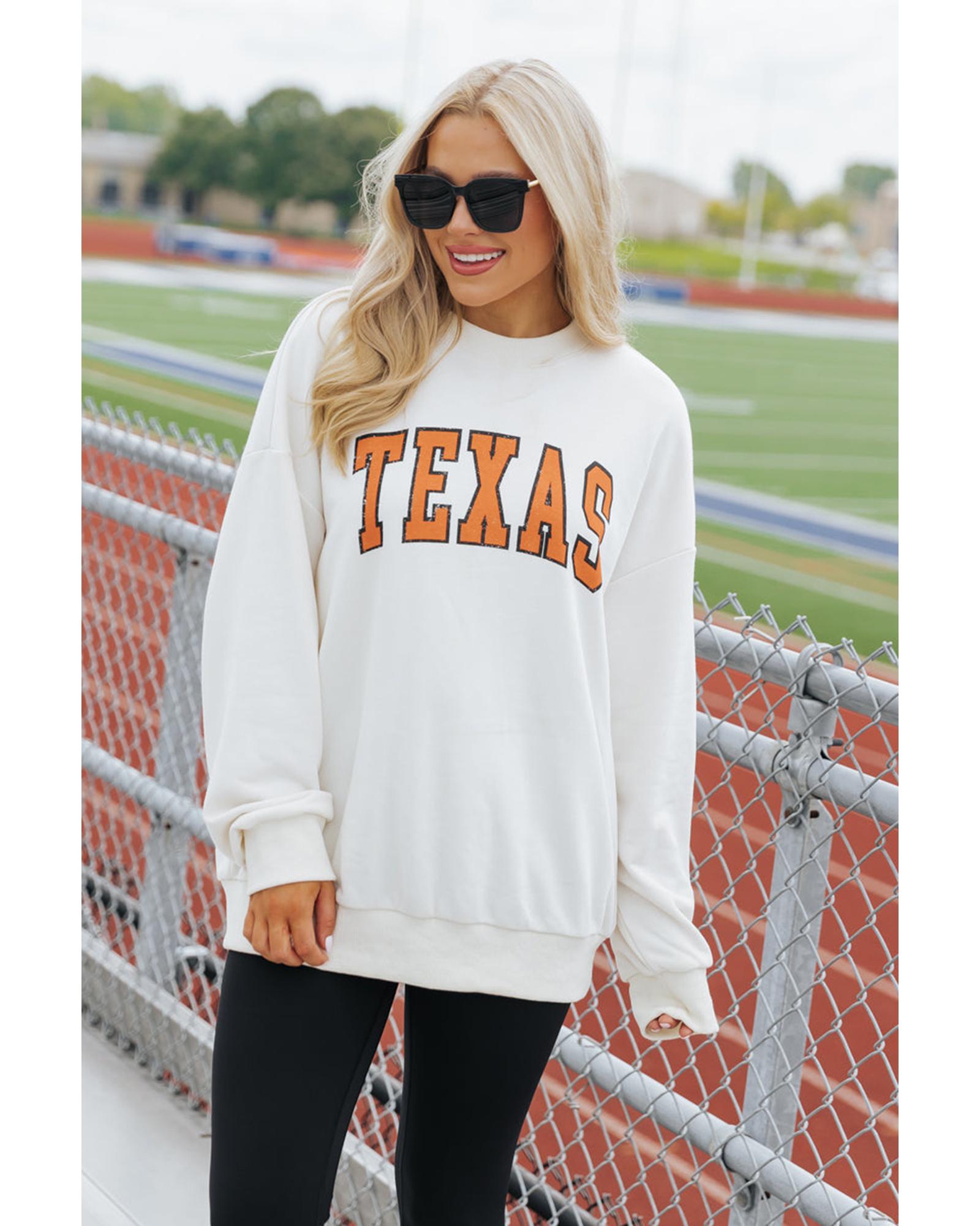 White TEXAS Graphic Drop Shoulder Crewneck Sweatshirt – S