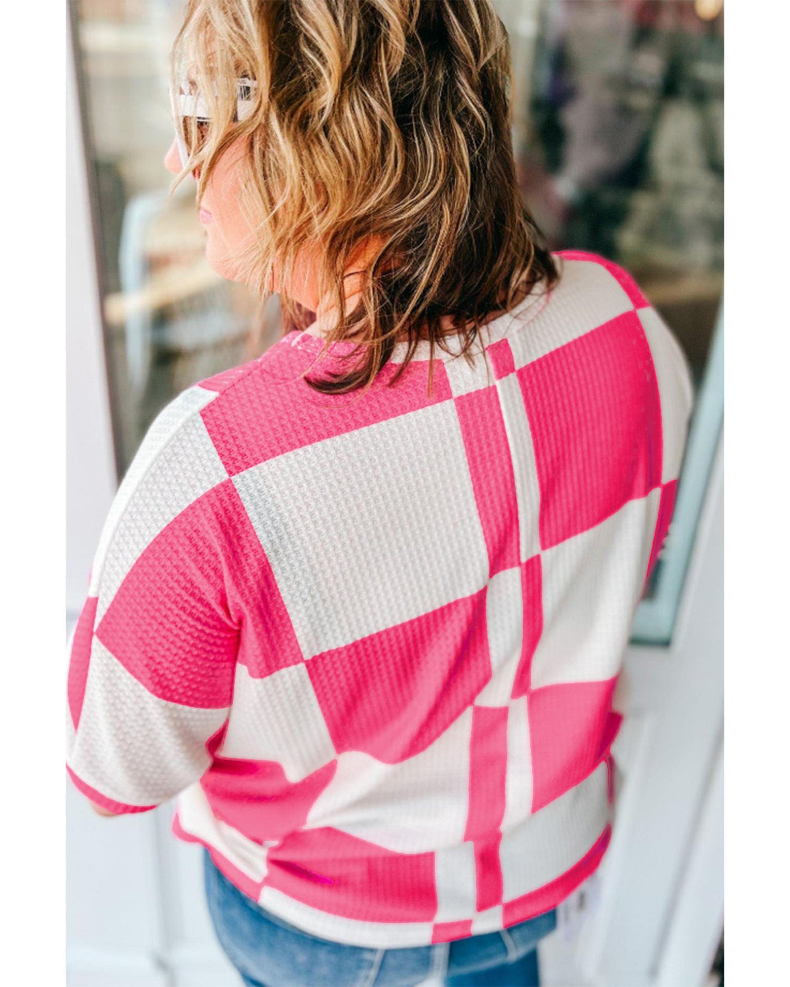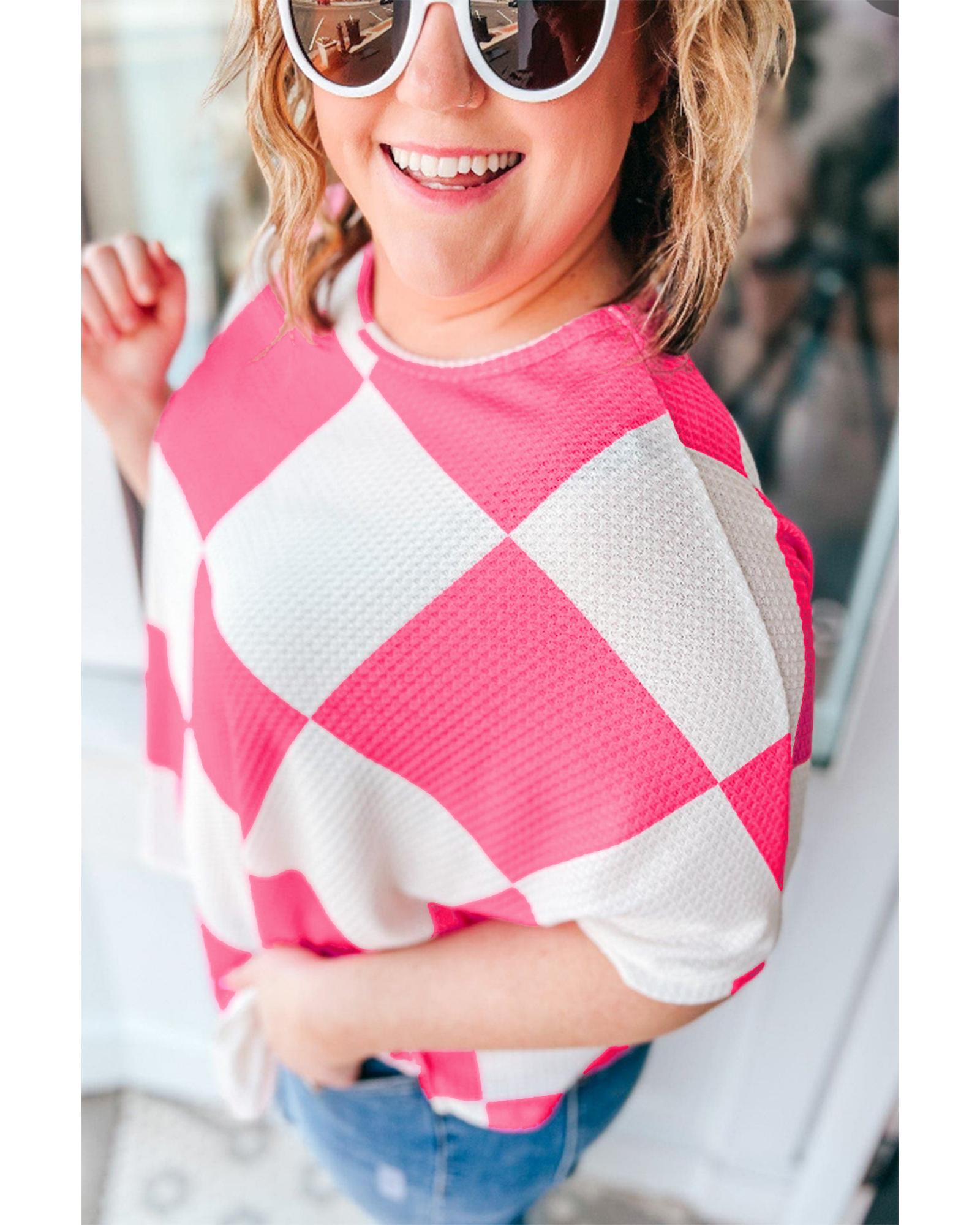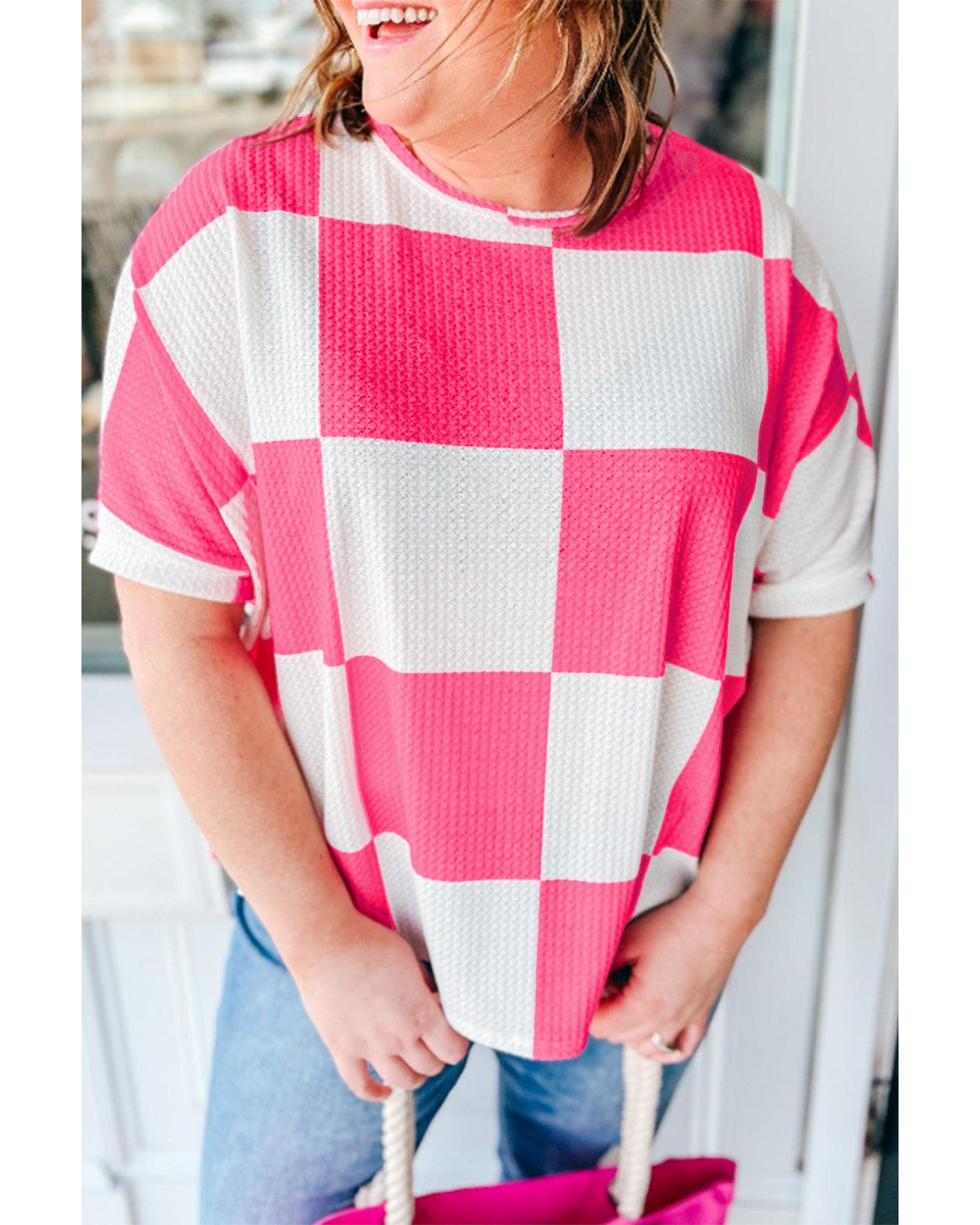 White Textured Checkerboard Round Neck Plus Size T Shirt – 3X