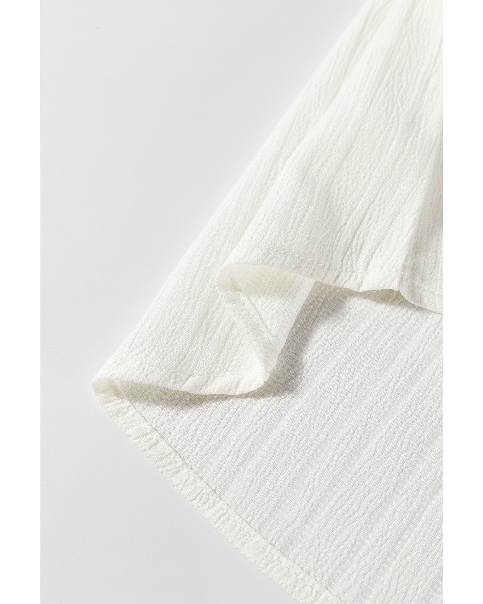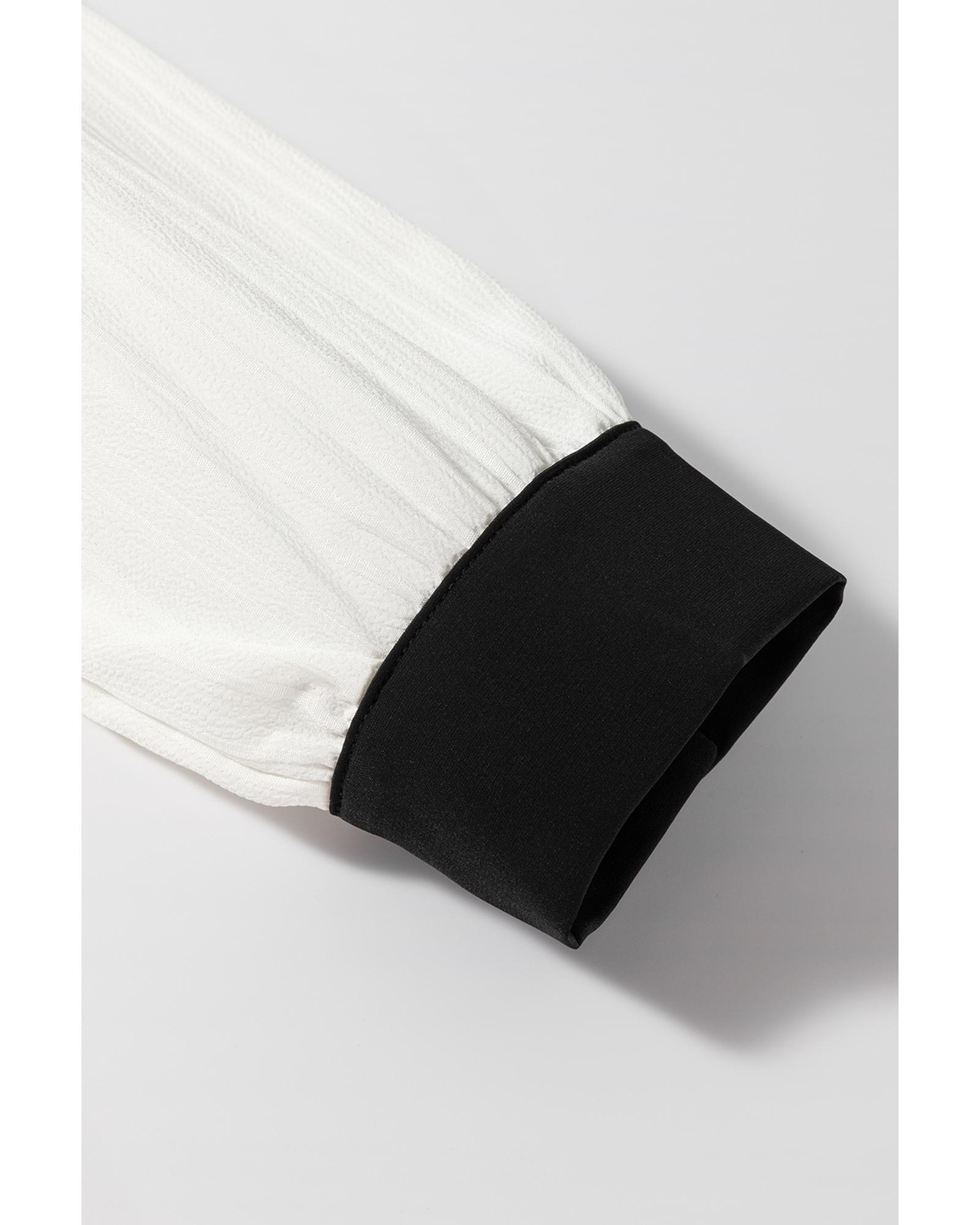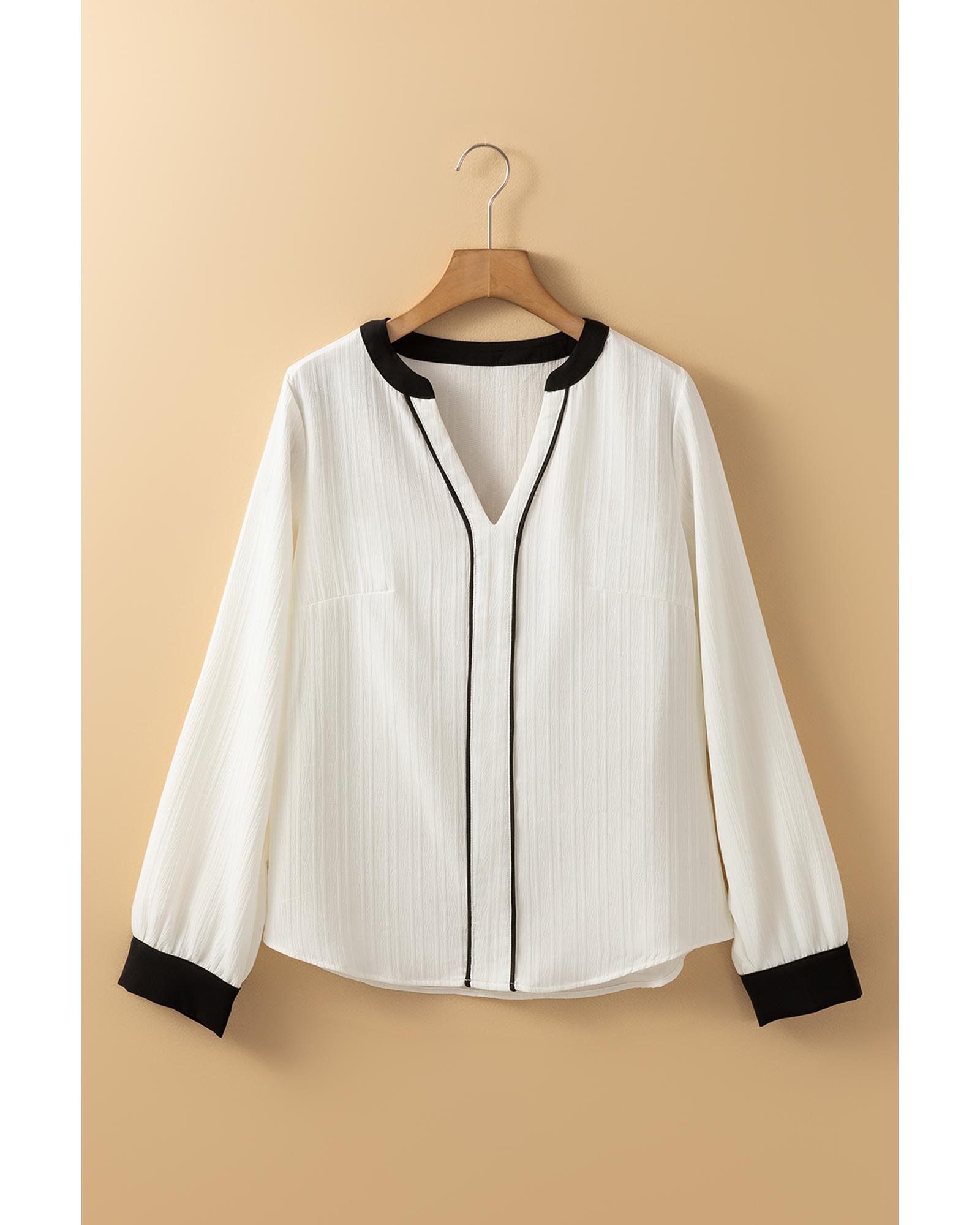 White Textured Colorblock V Neck Elegant Blouse – XL