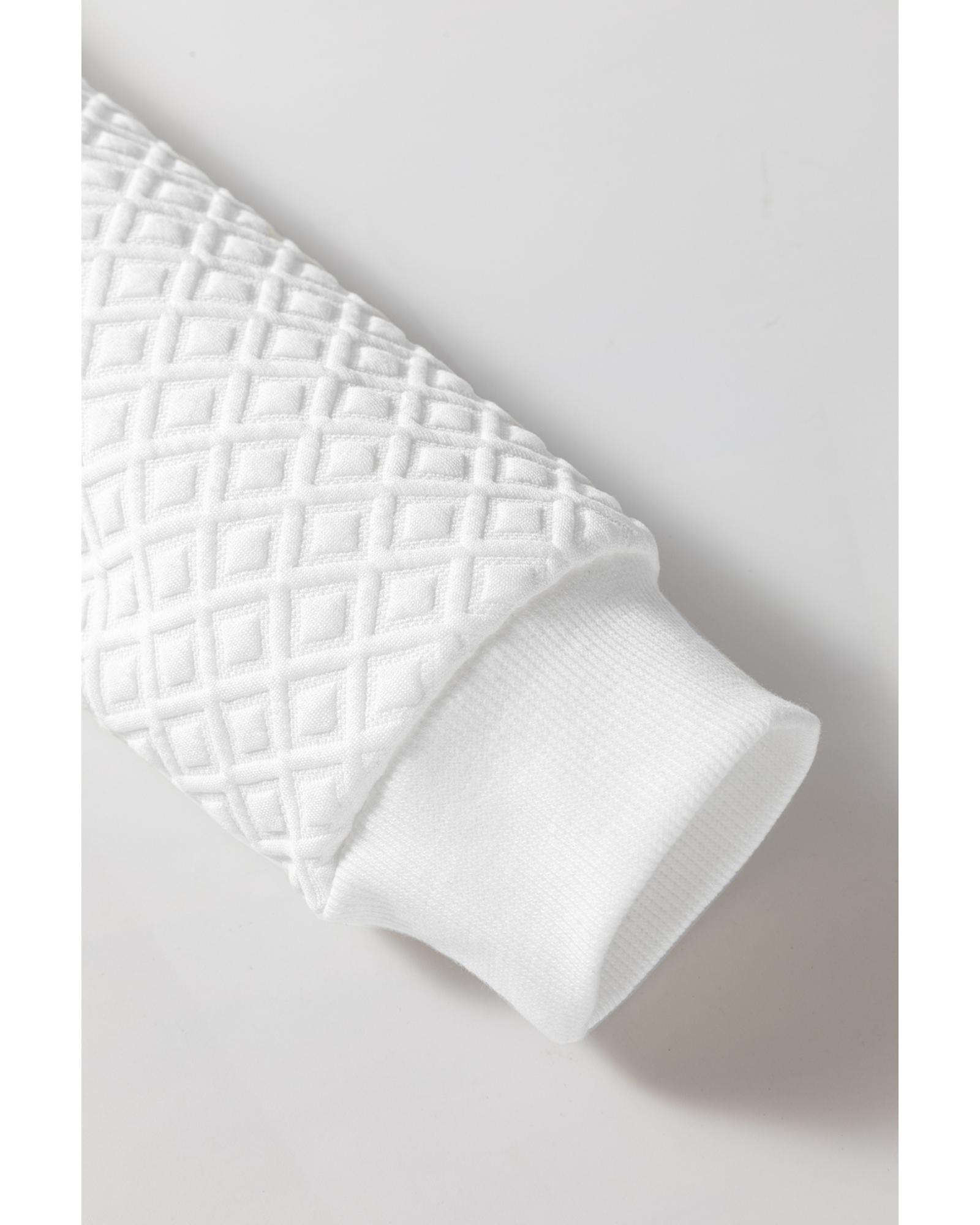 White Textured Puff Long Sleeve Round Neck Top – S