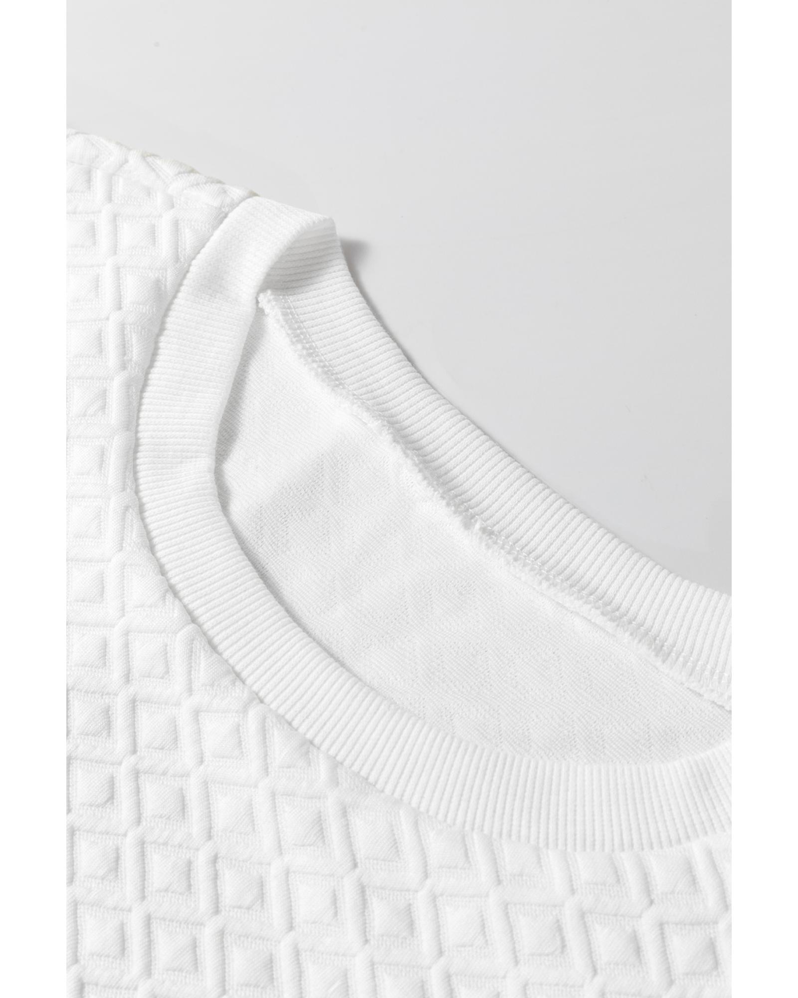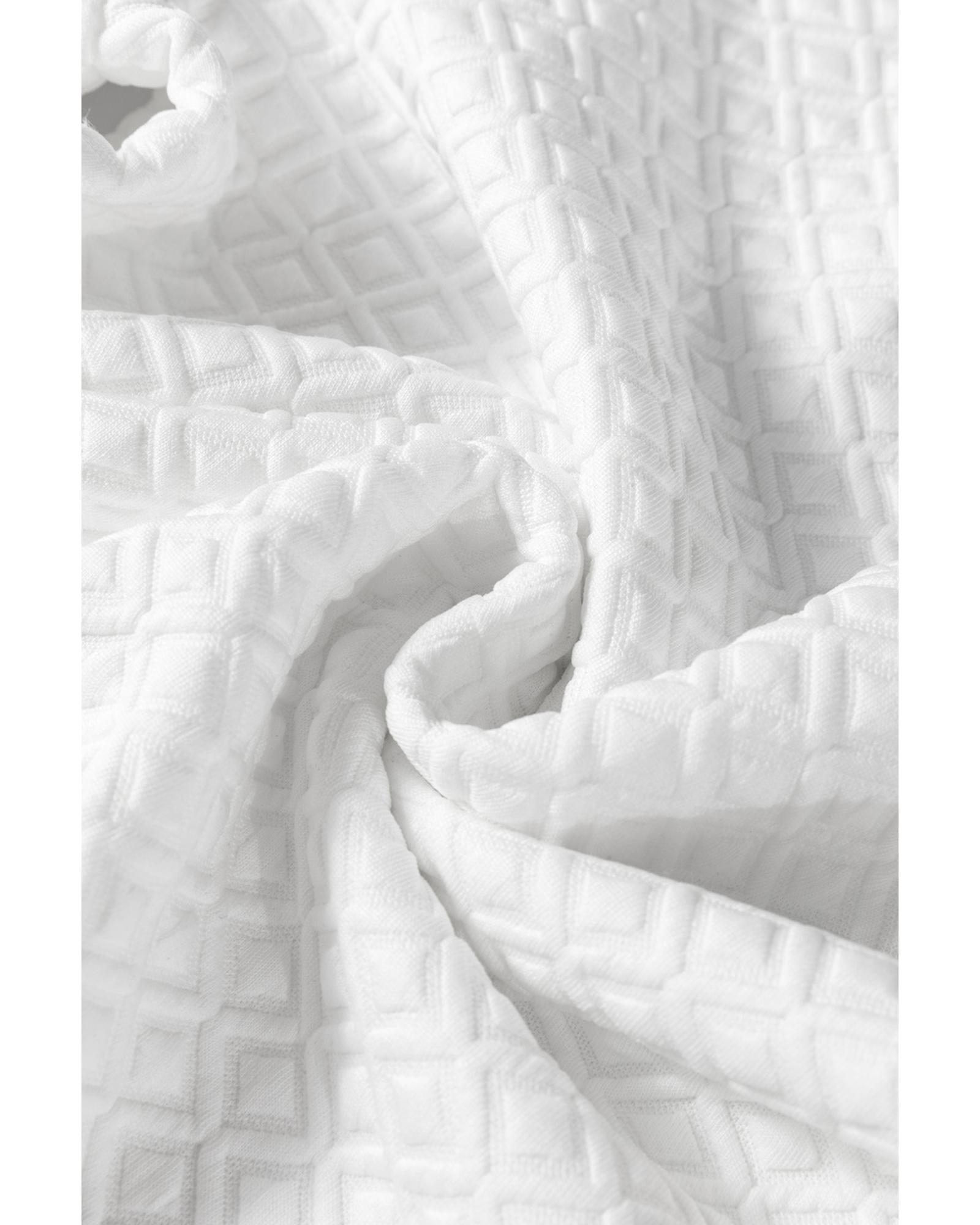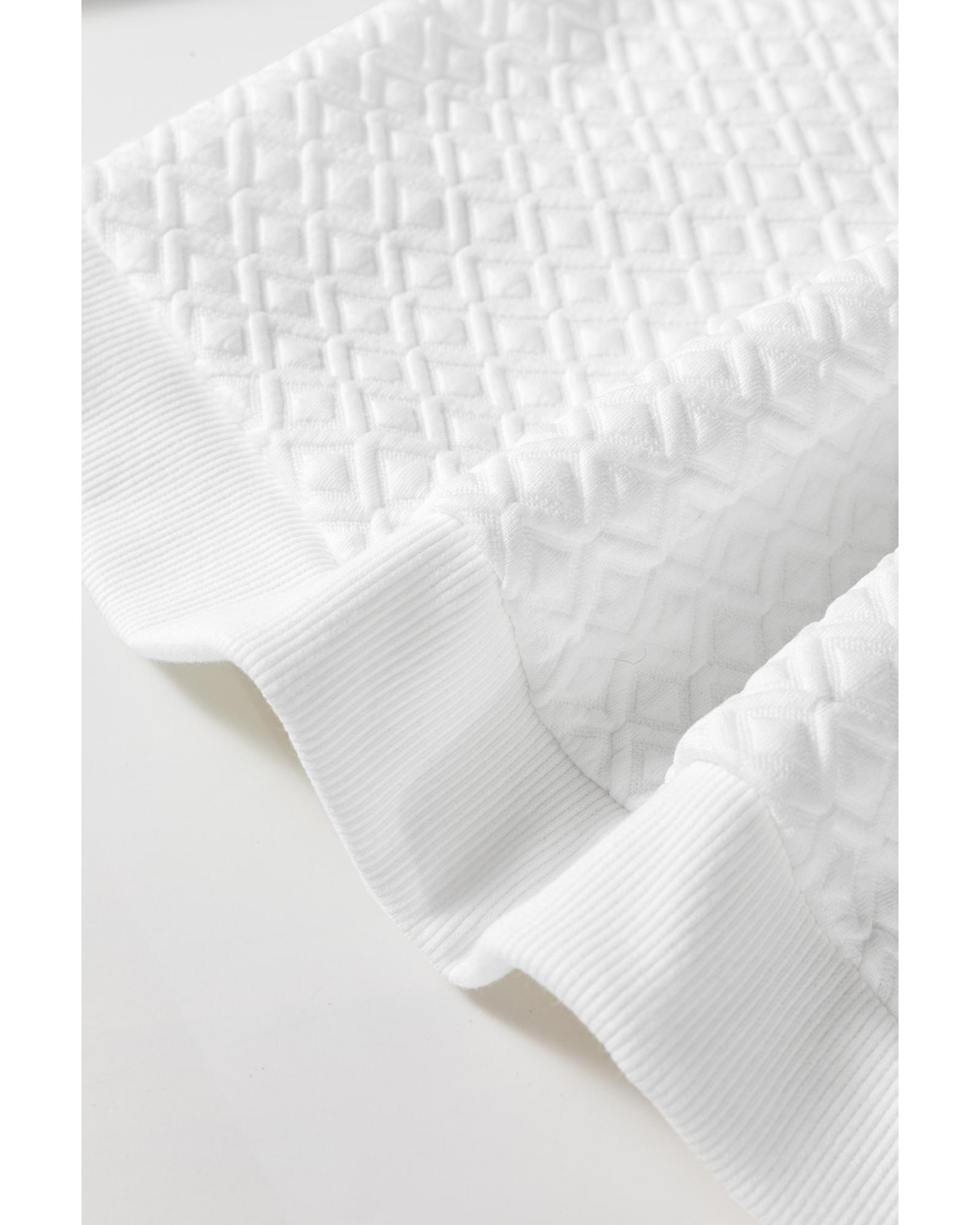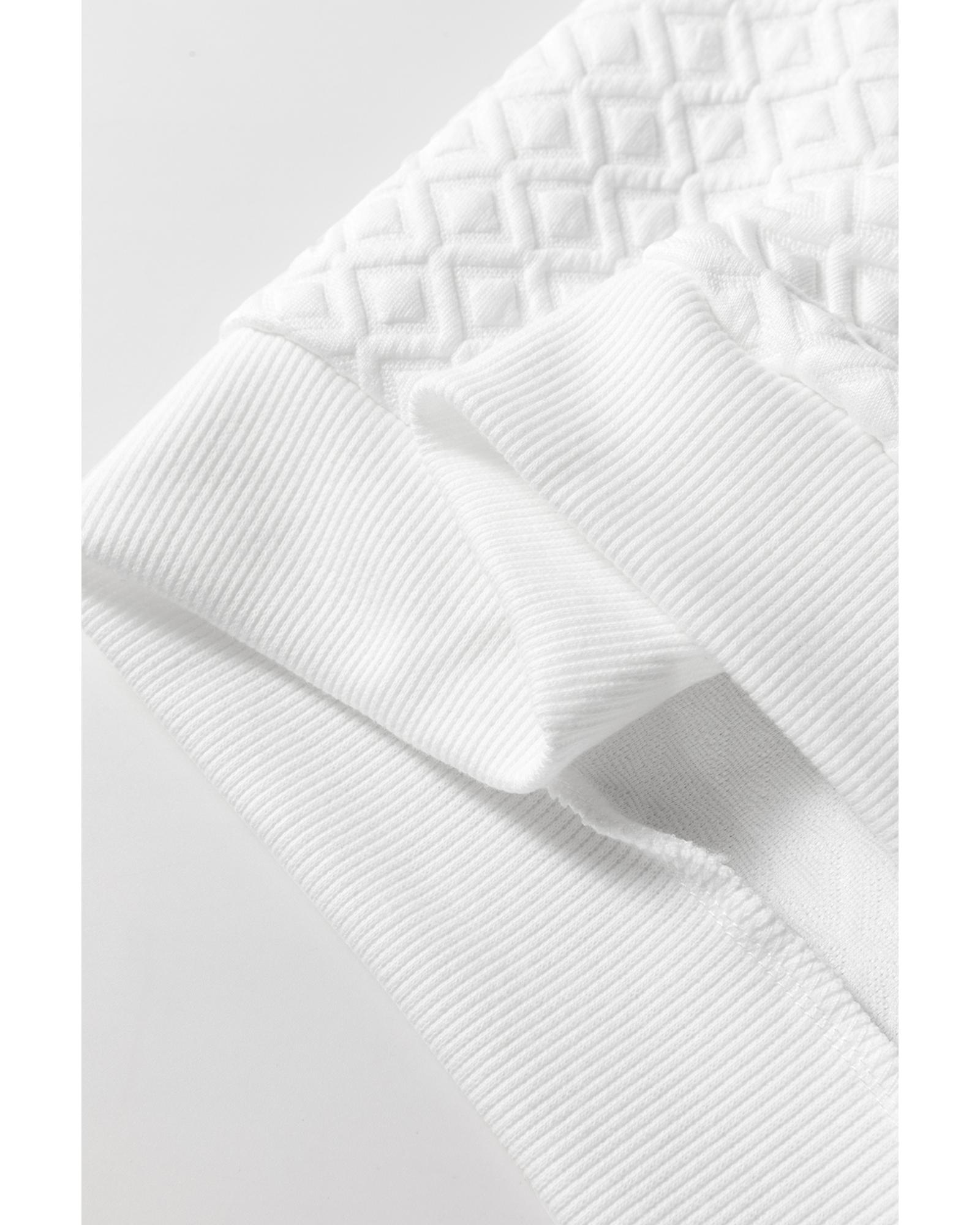 White Textured Puff Long Sleeve Round Neck Top – XL