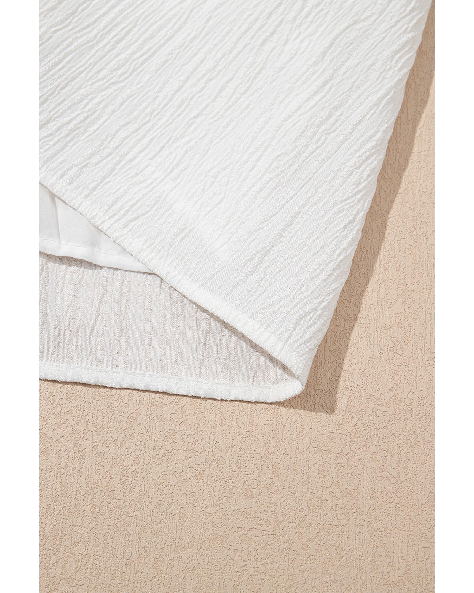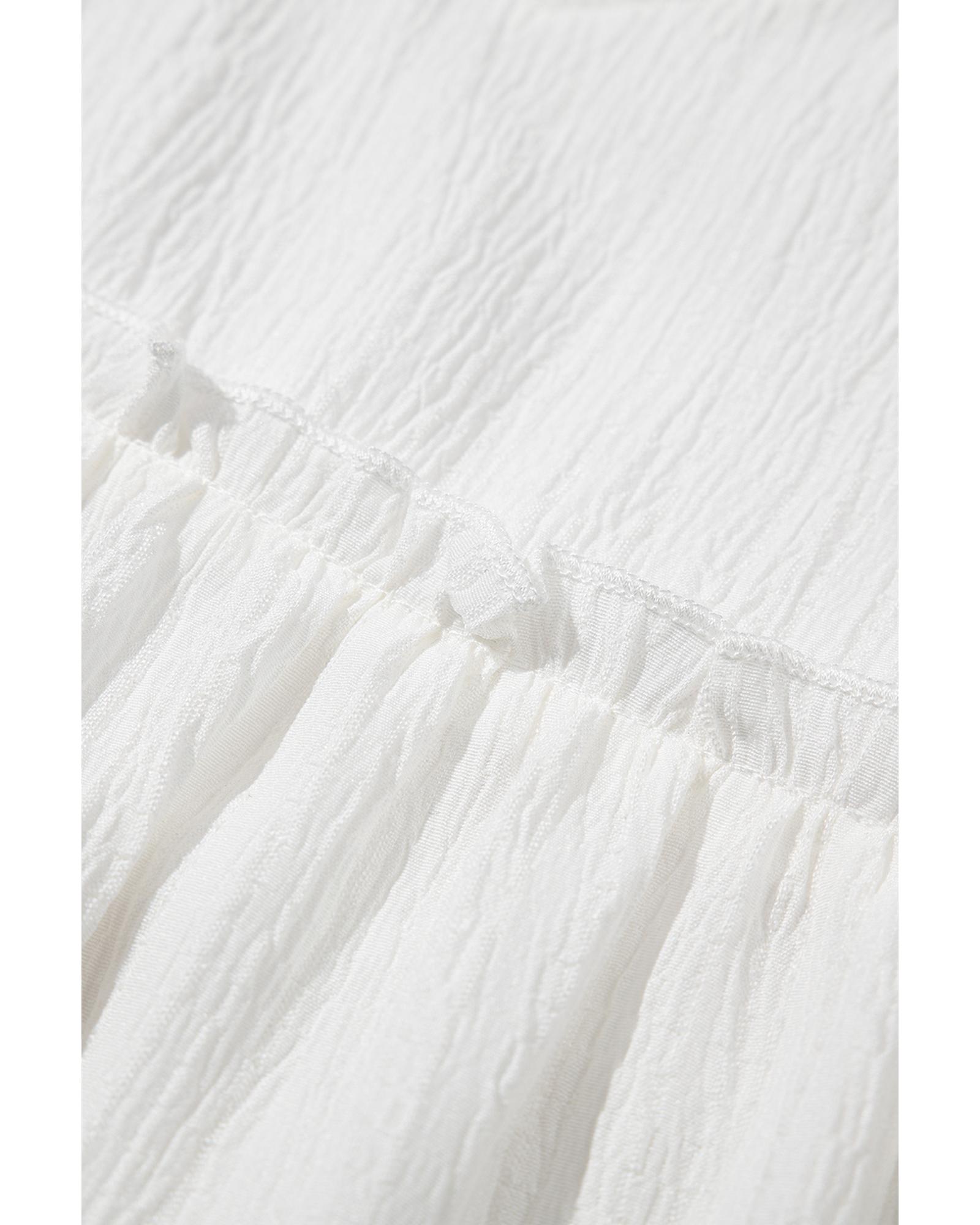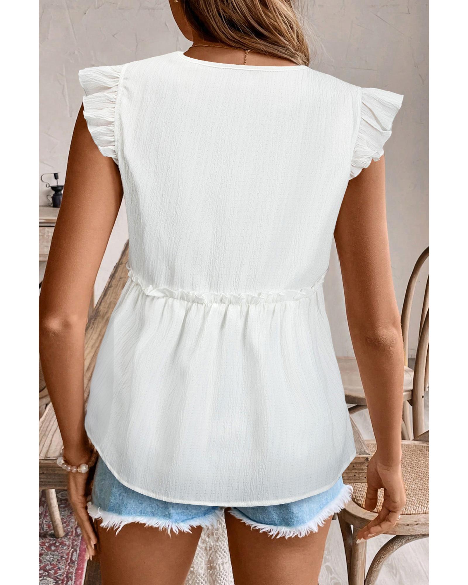 White Textured Ruffled Trim V Neck Flutter Flowy Top – L