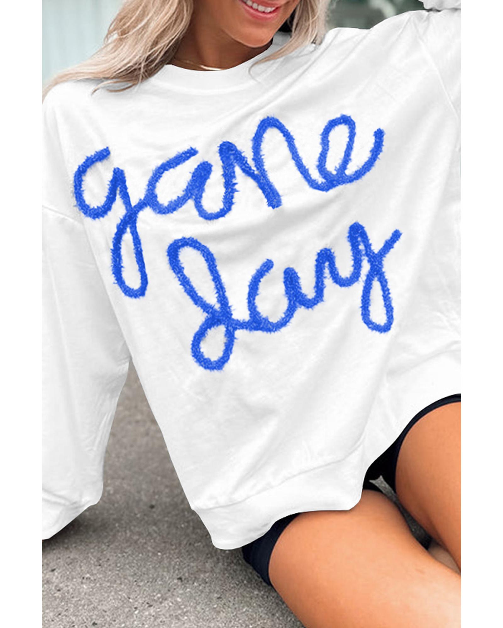 - White Tinsel Game Day Drop Shoulder Graphic Sweatshirt