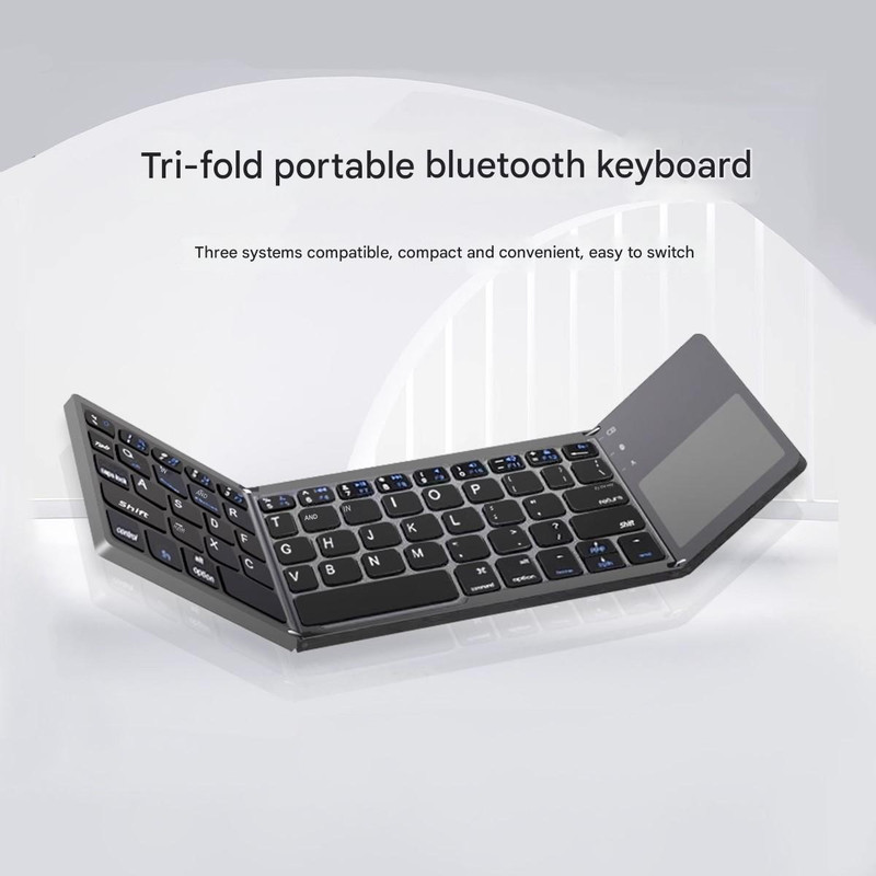 Boost Productivity Anywhere: Portable Tri-Fold Bluetooth Keyboard with Touchpad