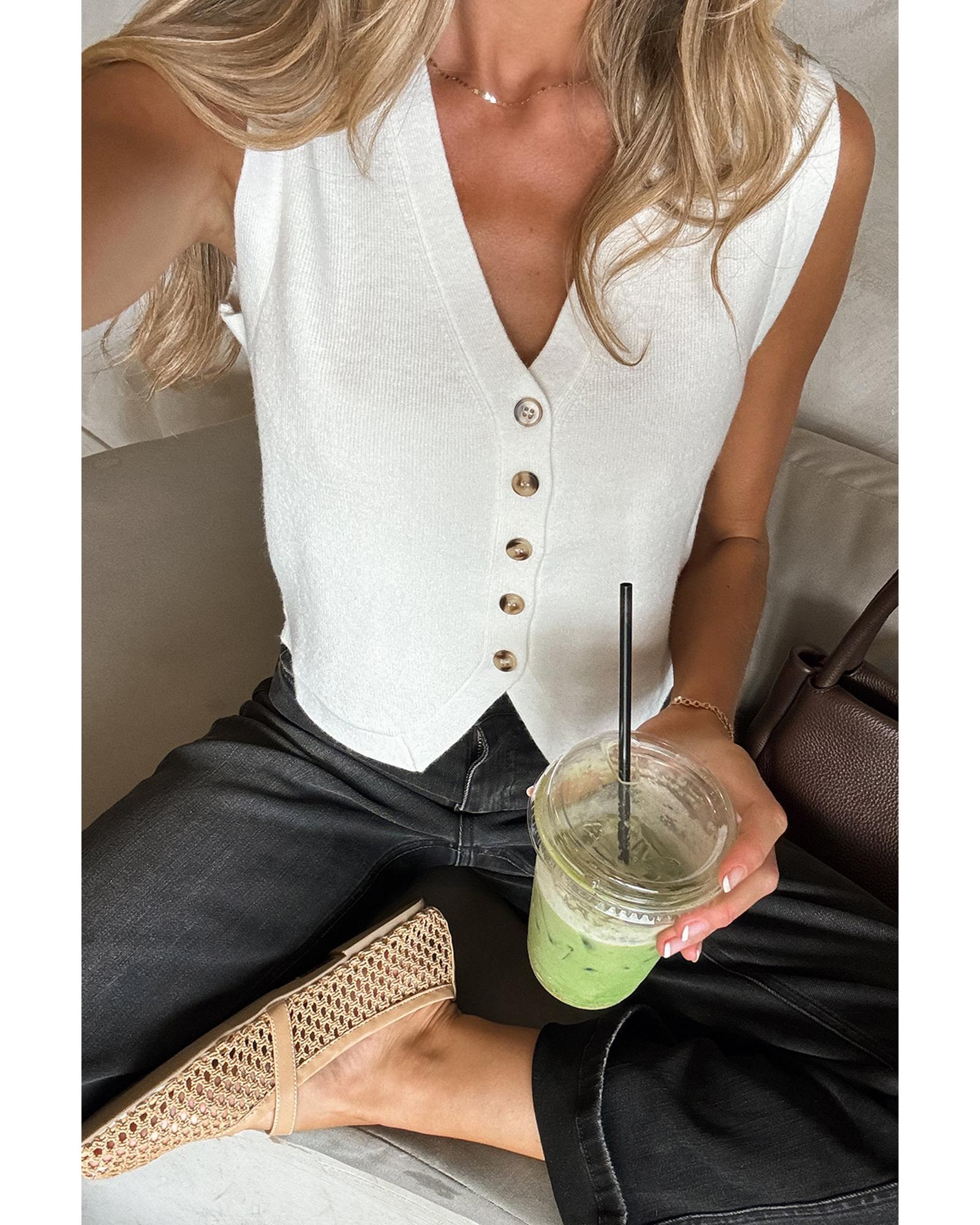 Black Stripe Crew Neck Slim Fit Sweater Vest - M