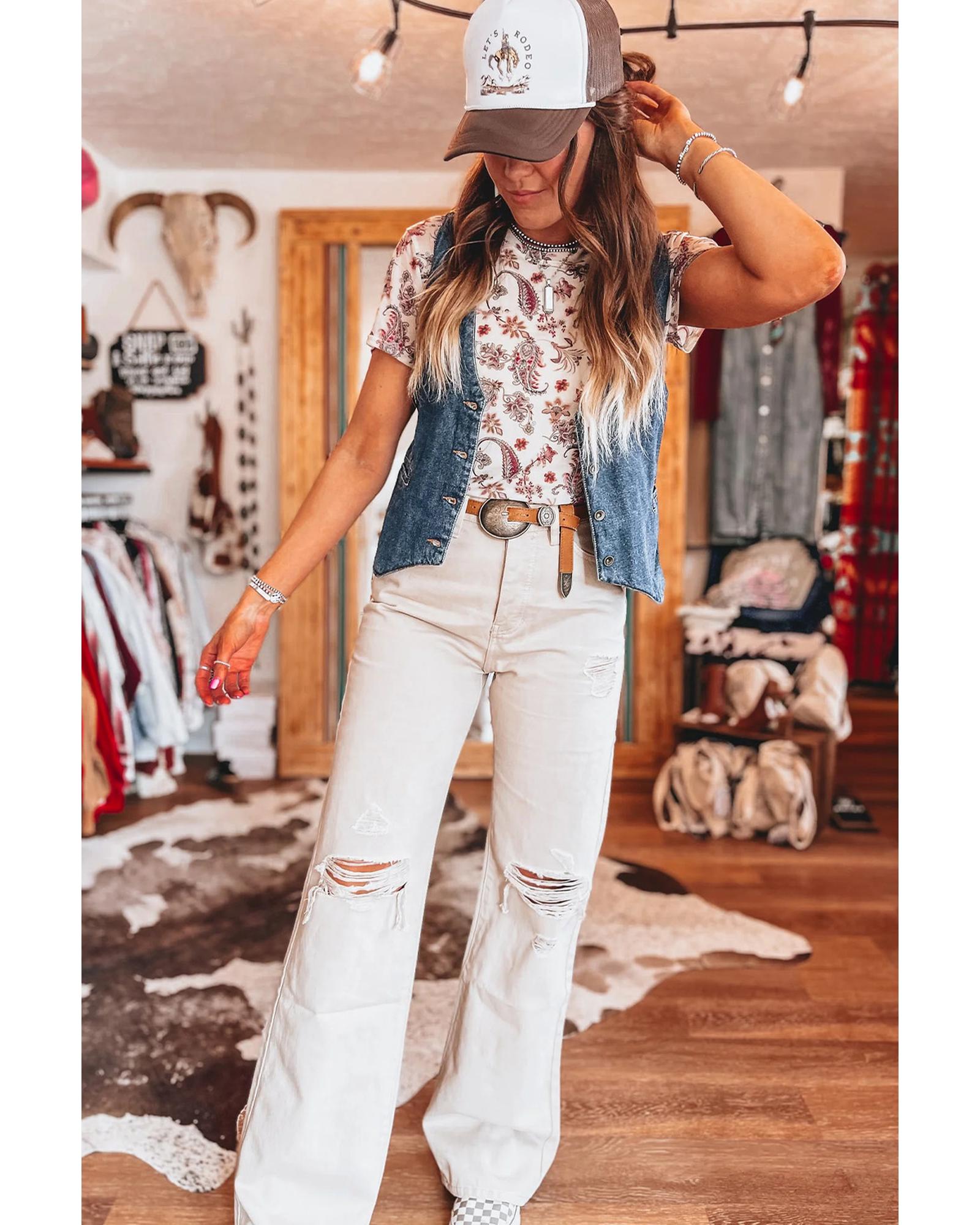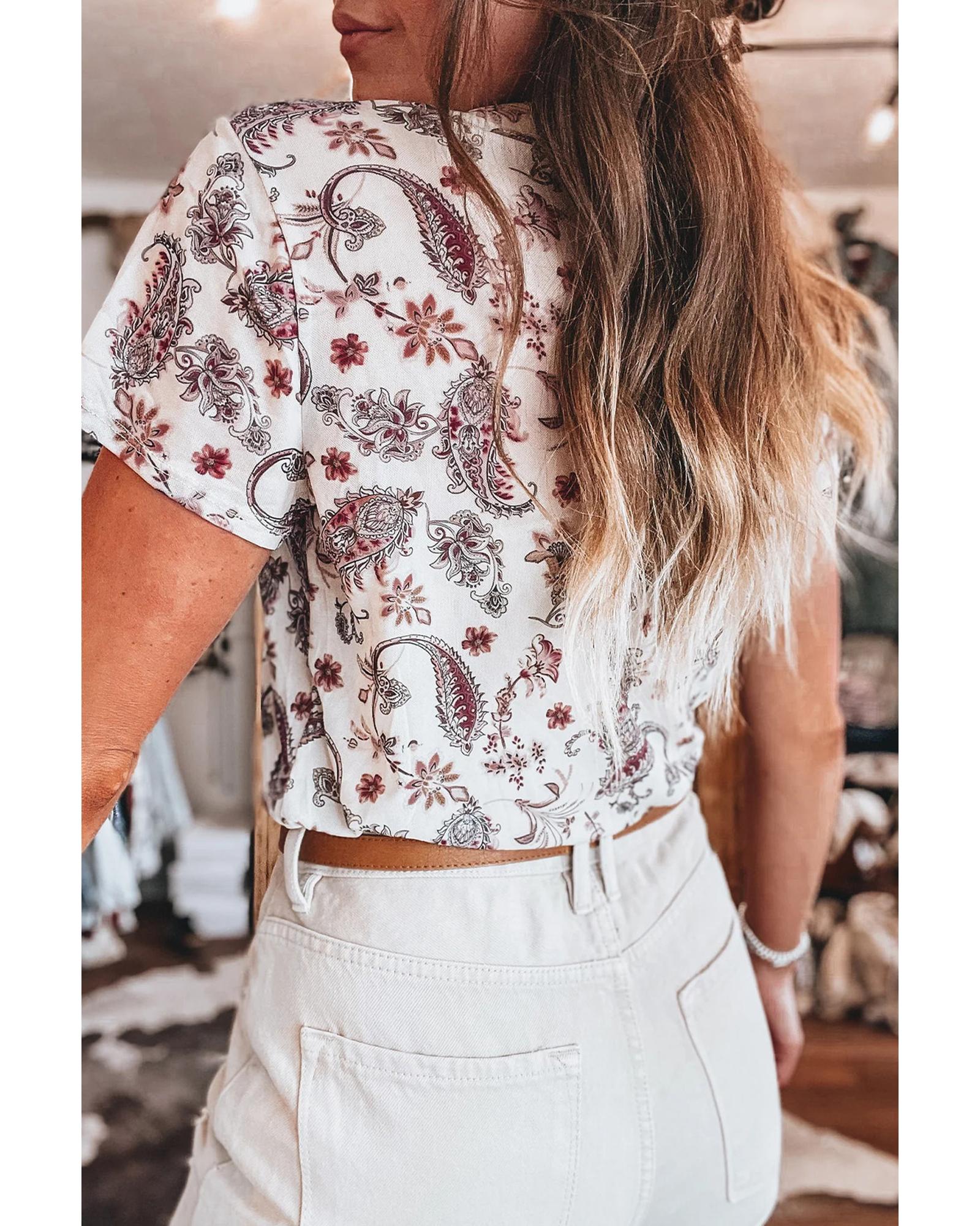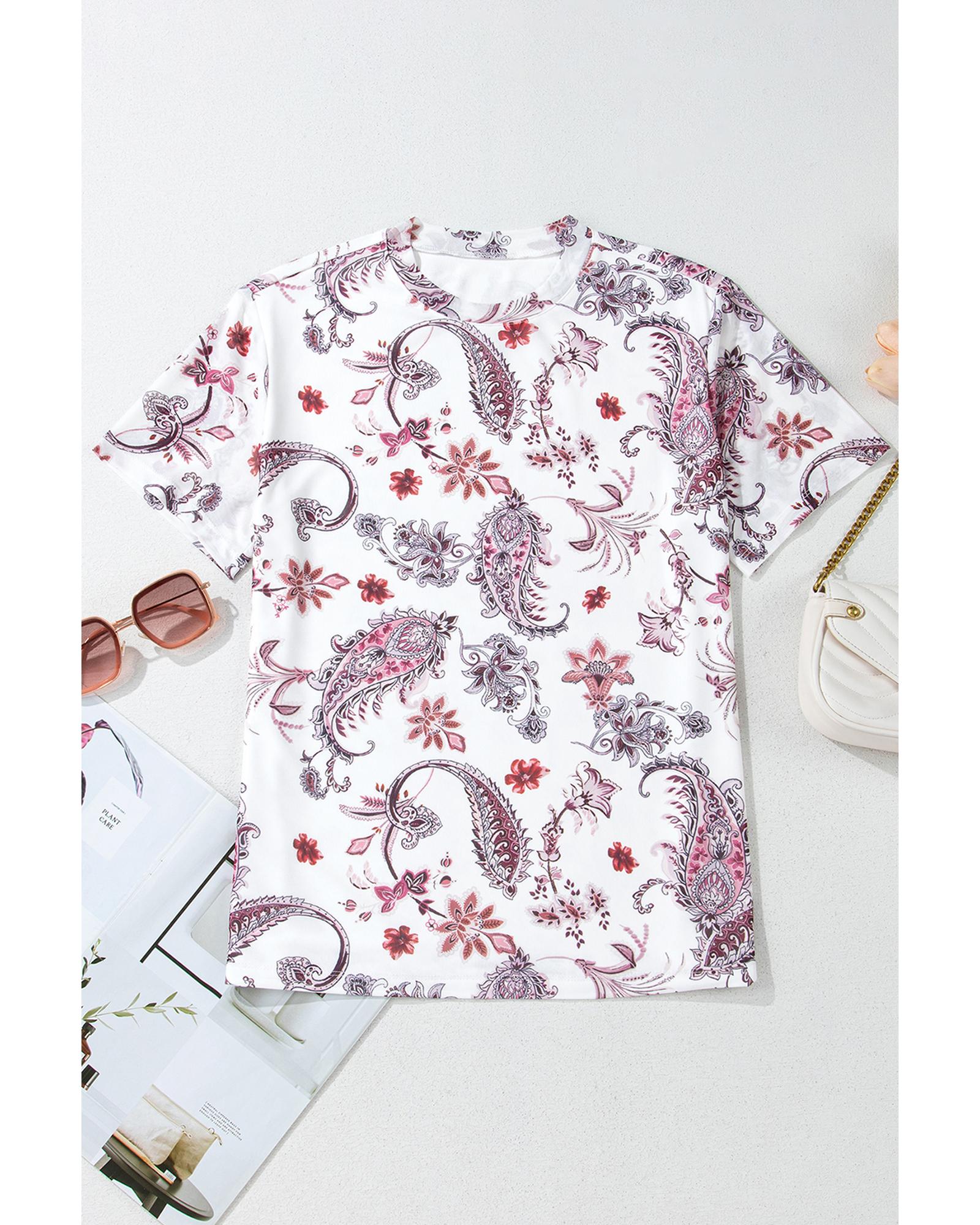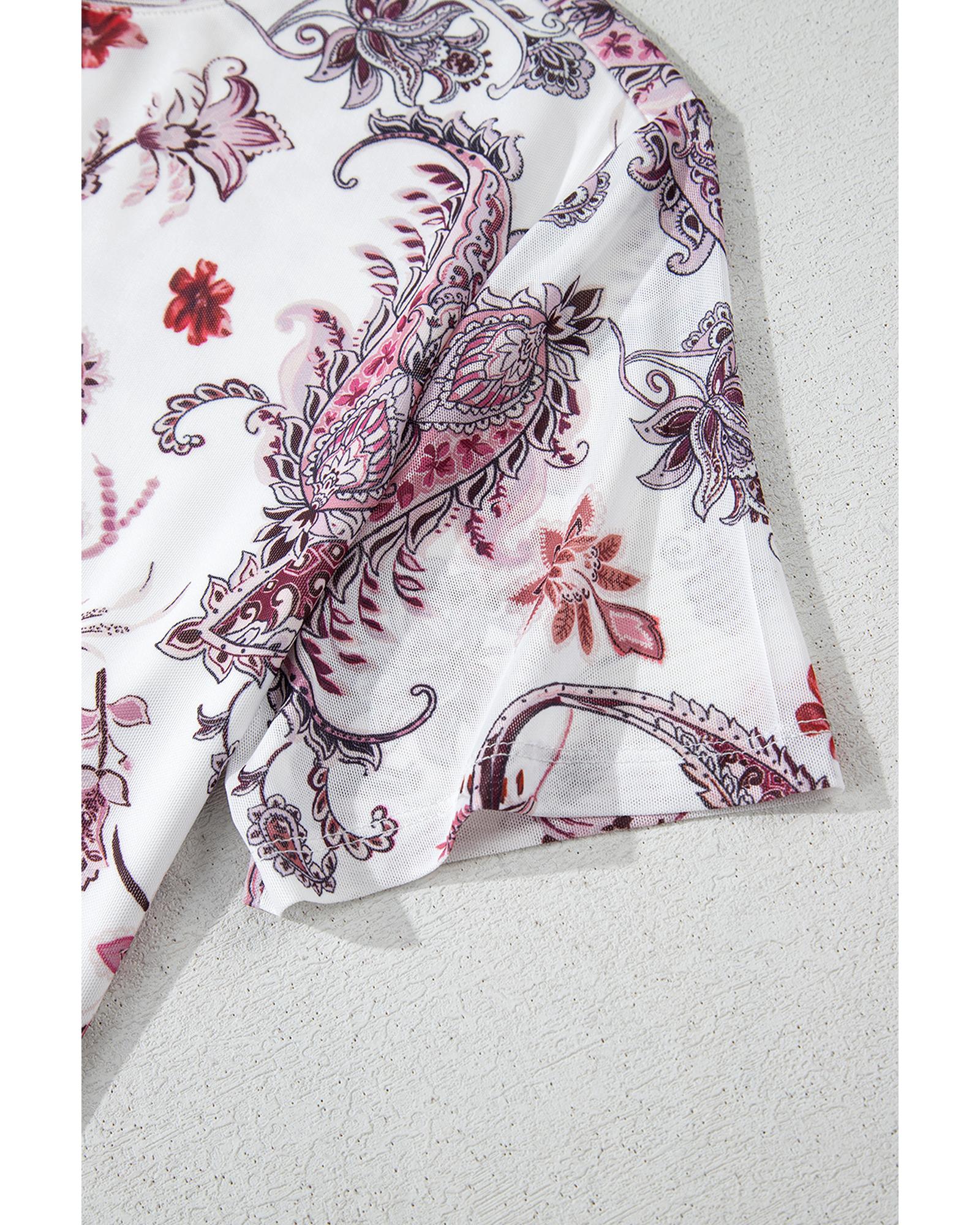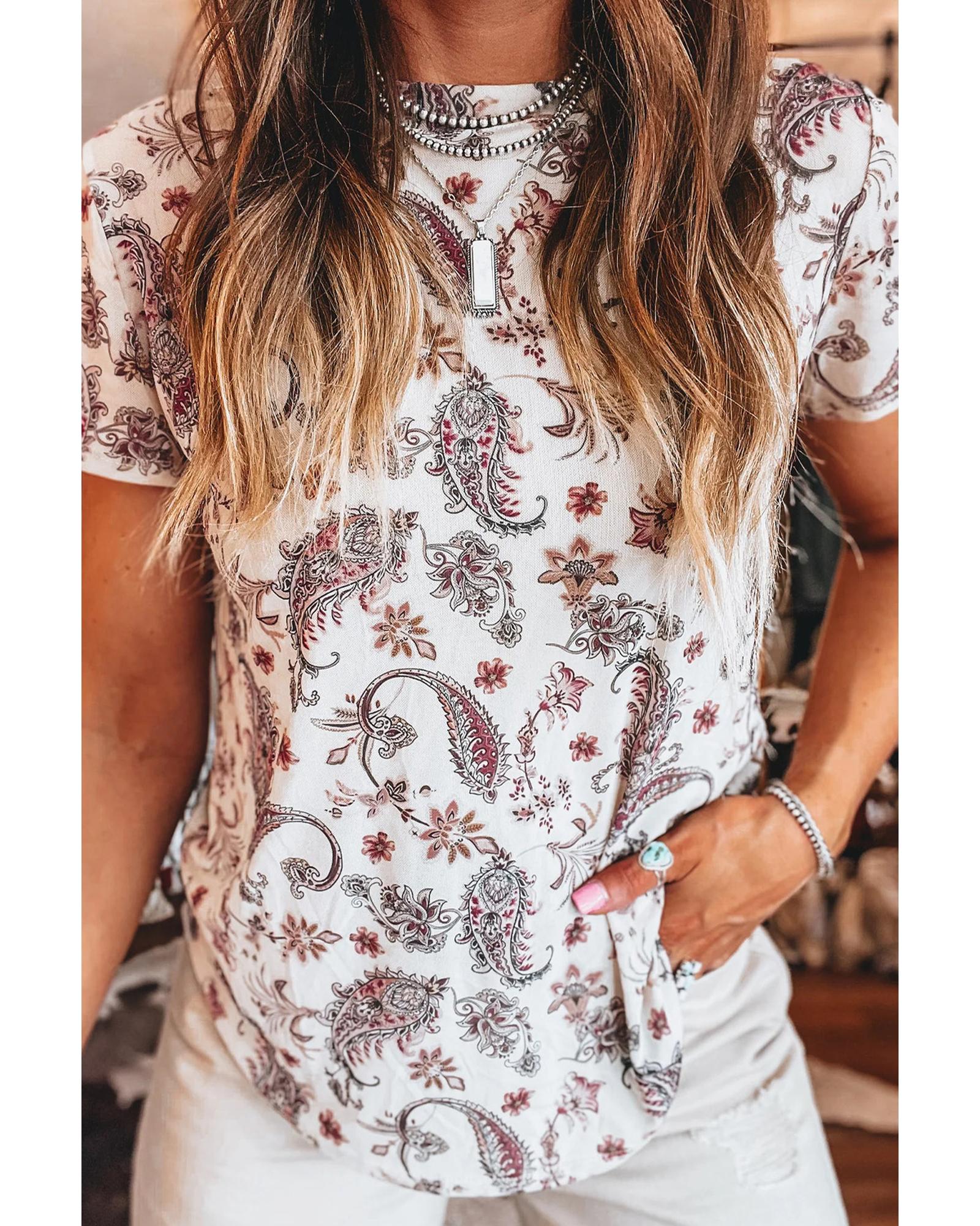 White Vintage Paisley Mock Neck T Shirt – XL