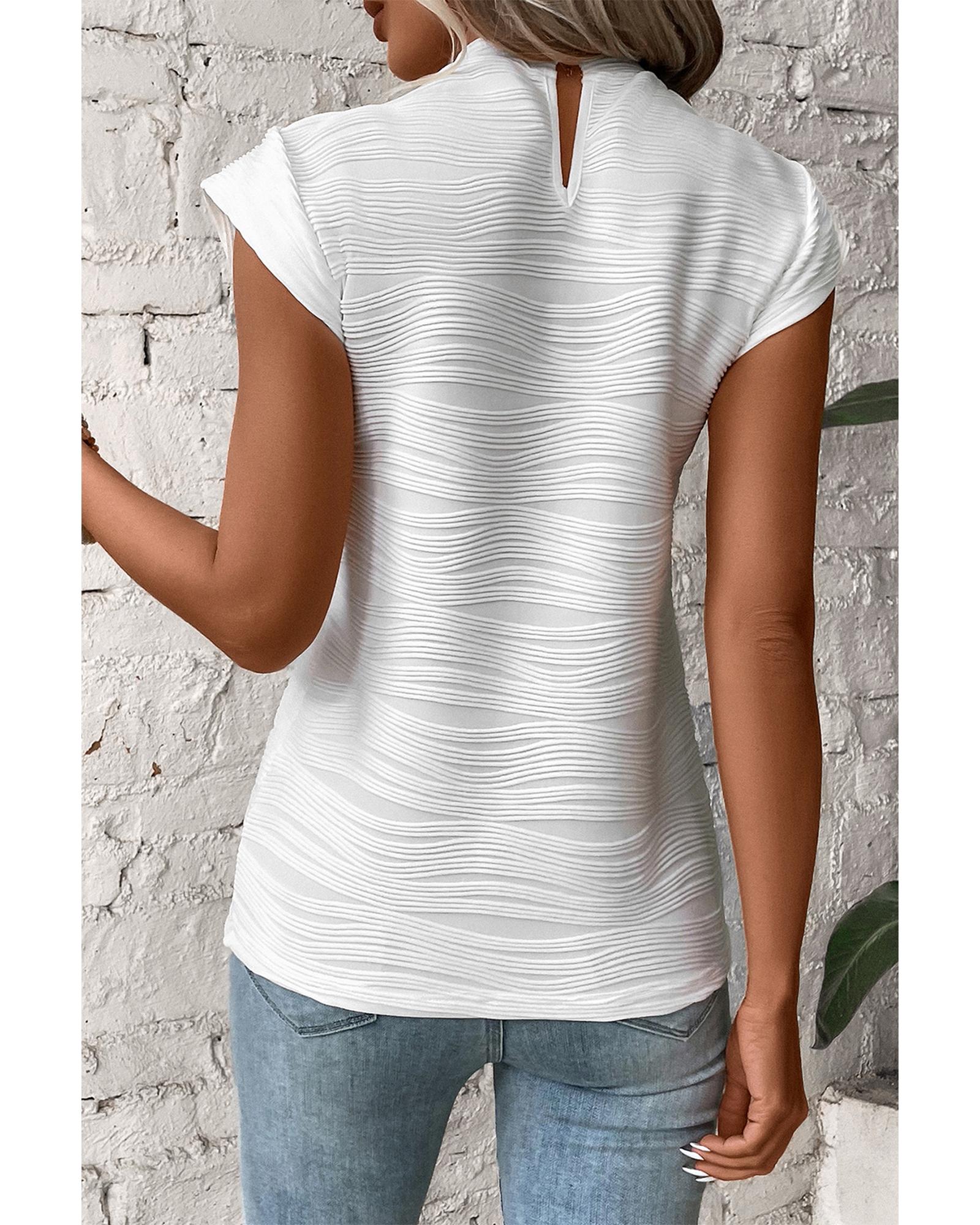 White Wavy Textured Mock Neck Cap Sleeve Top – XL