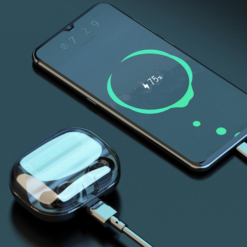 • LED digital display on the charging boxshows power level, while breathing lights indicate earphone battery levels