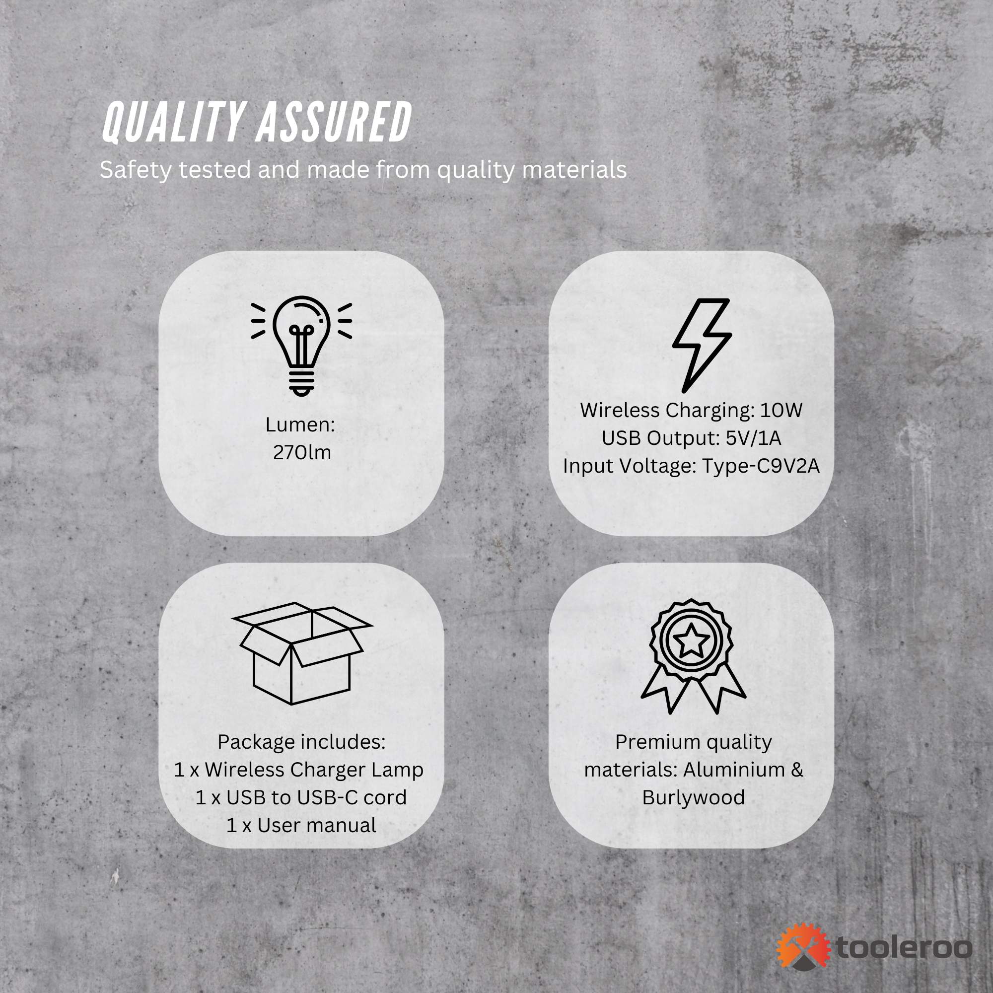 - 1 x Lamp with wireless charger and clock