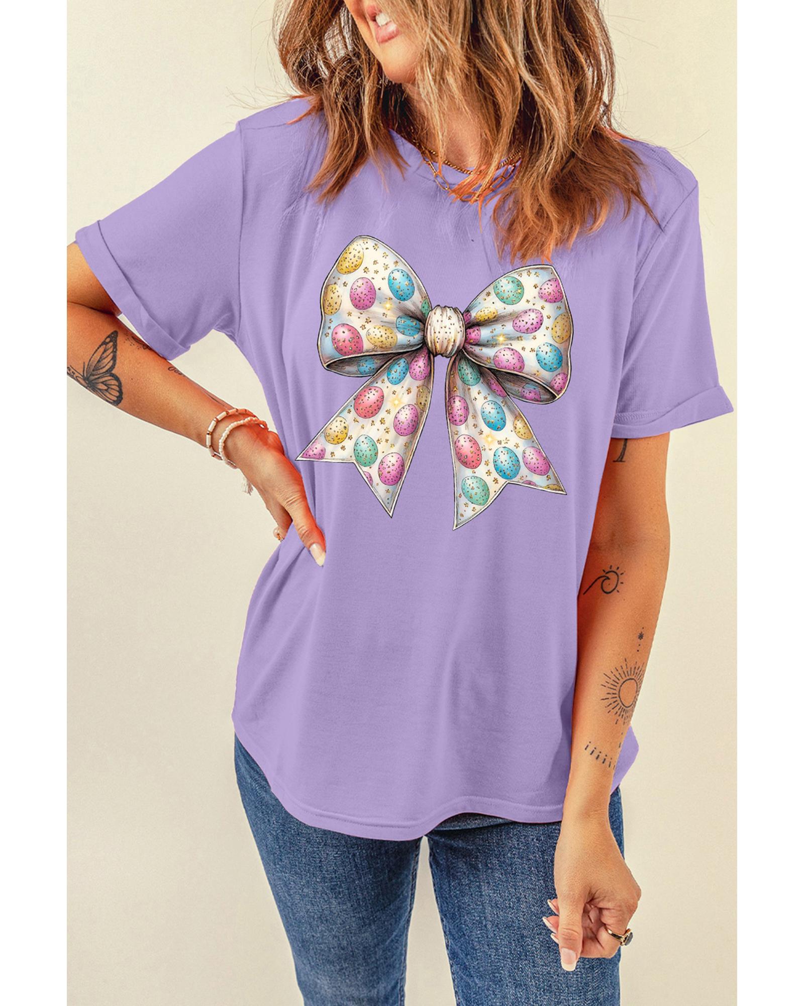 Wisteria Celebrative Easter Eggs Bow Print Casual T Shirt – M