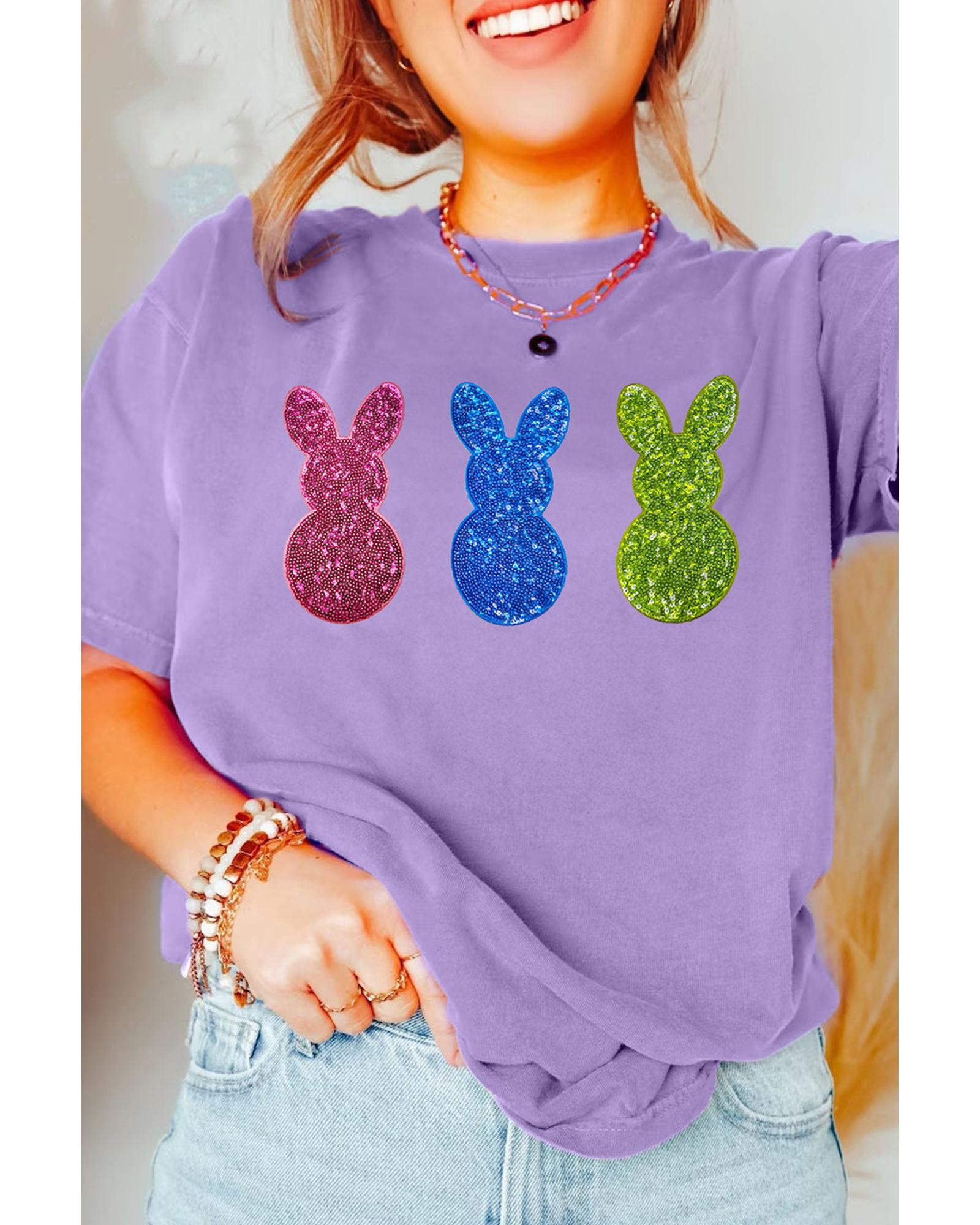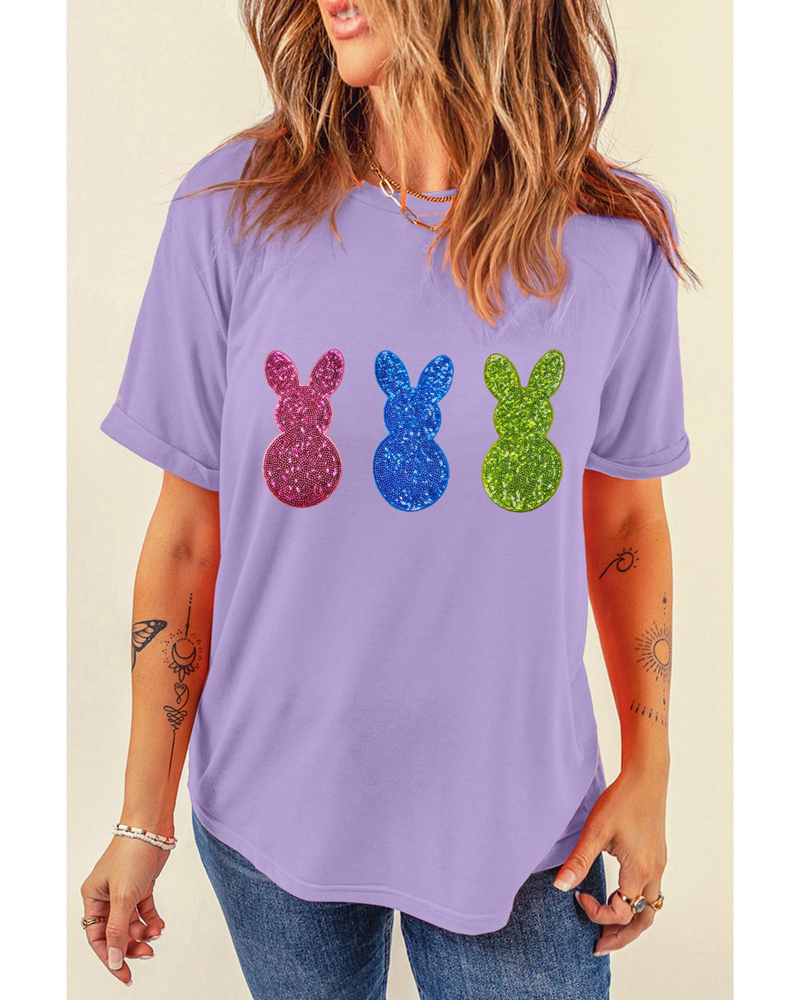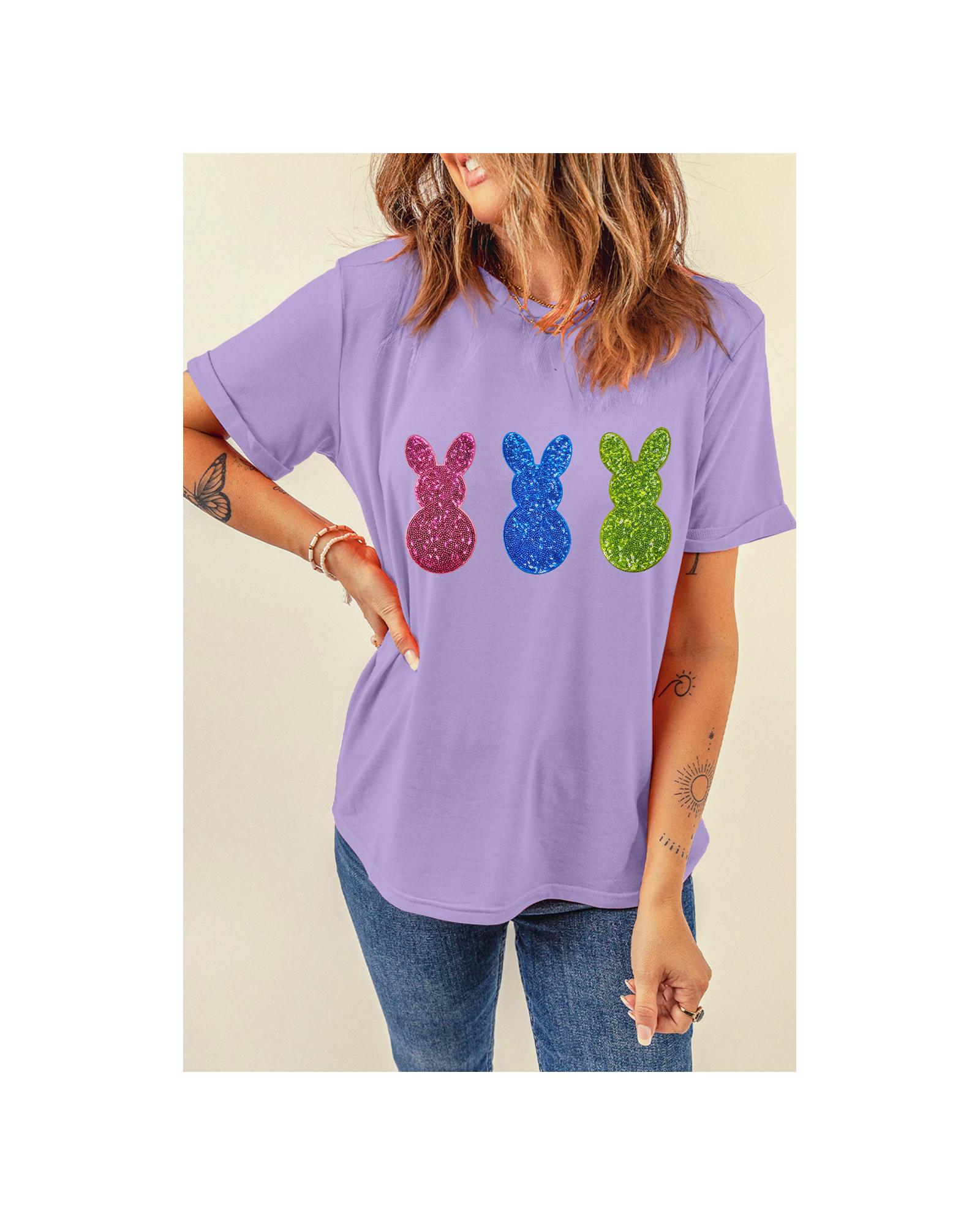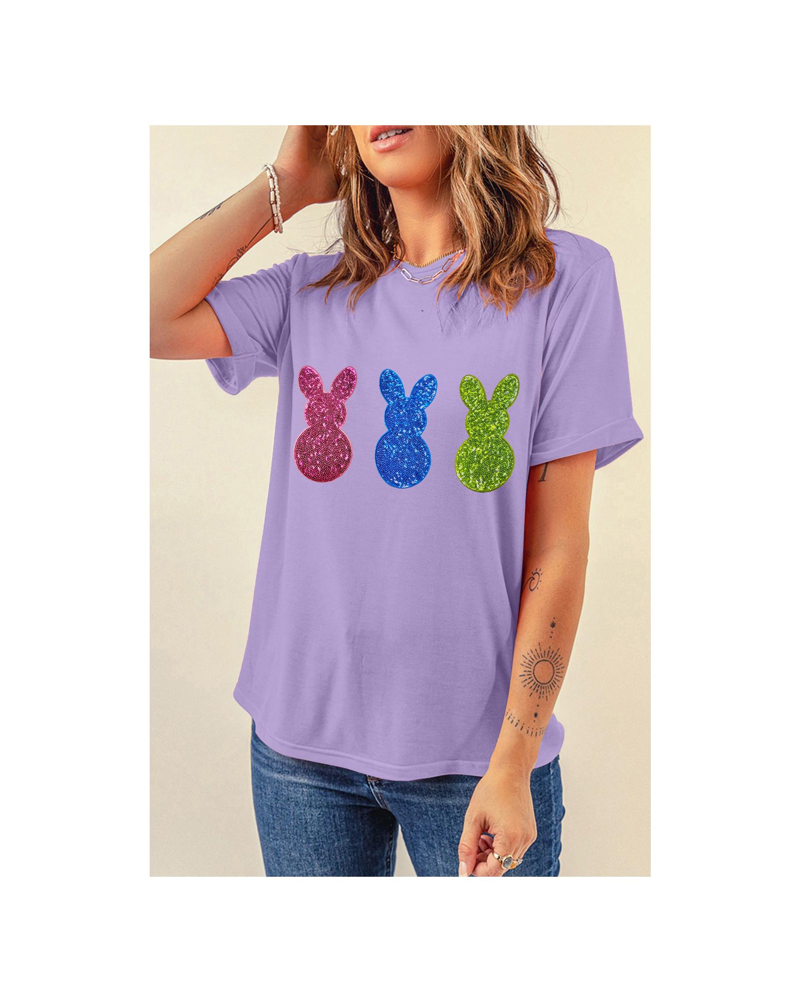 Wisteria Easter Shiny Bunny Graphic Crewneck T Shirt – M