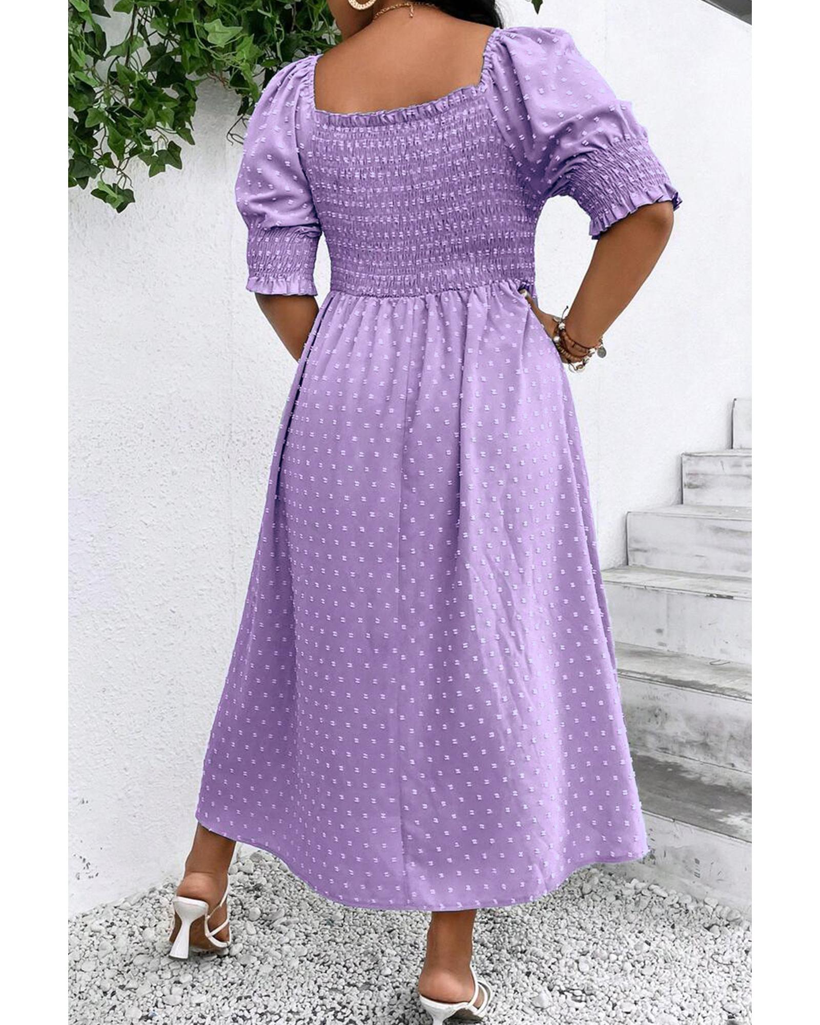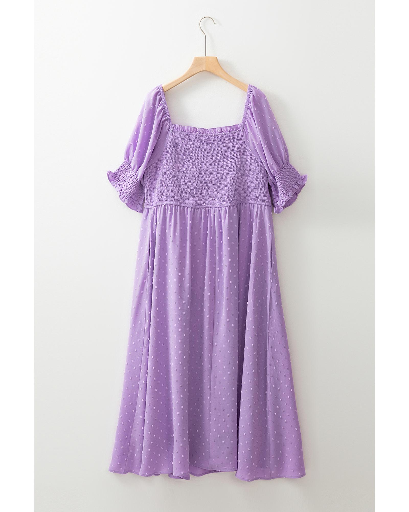 Wisteria Swiss Dot Smocked Frilled Neckline Short Sleeve Plus Size Dress – 1X