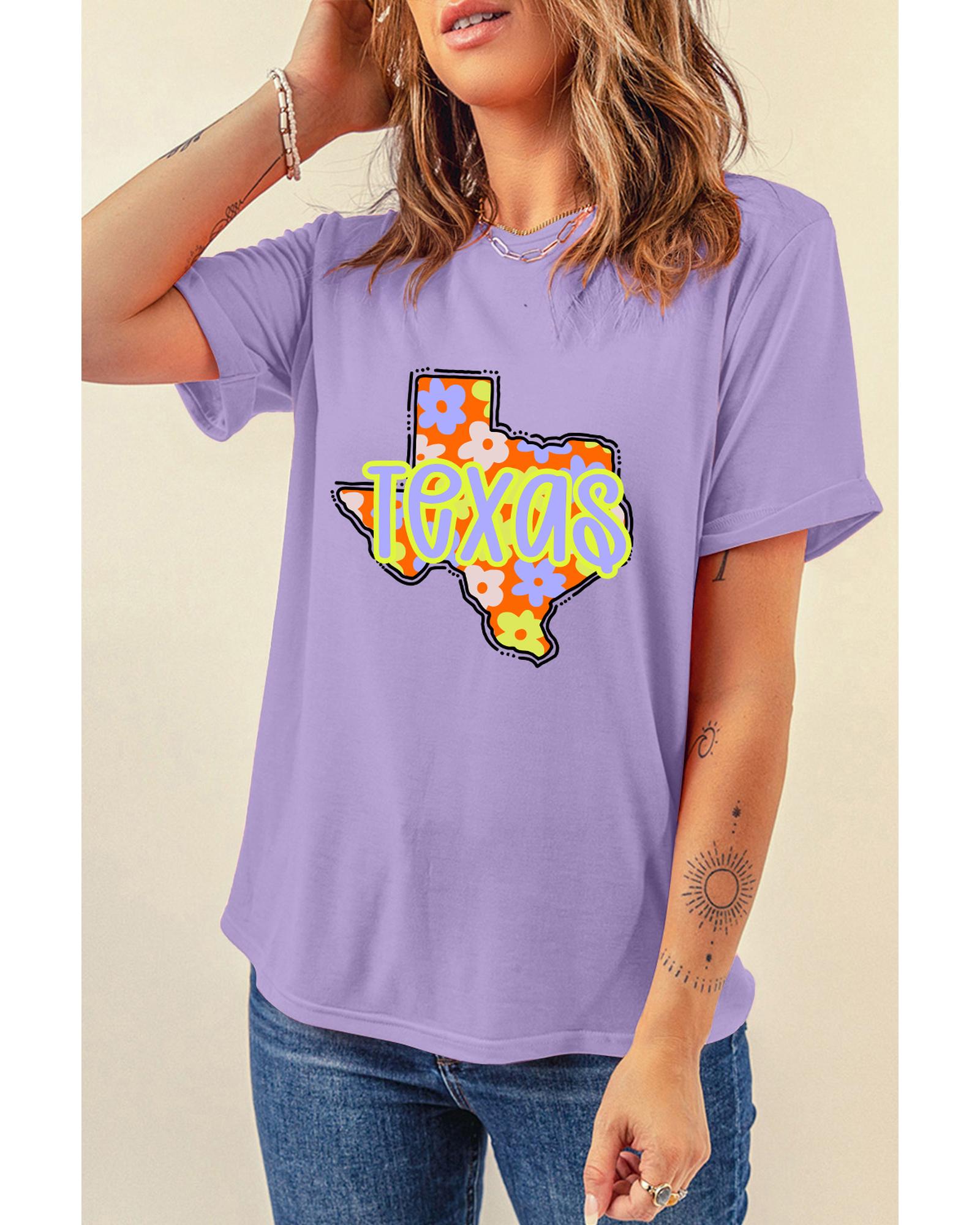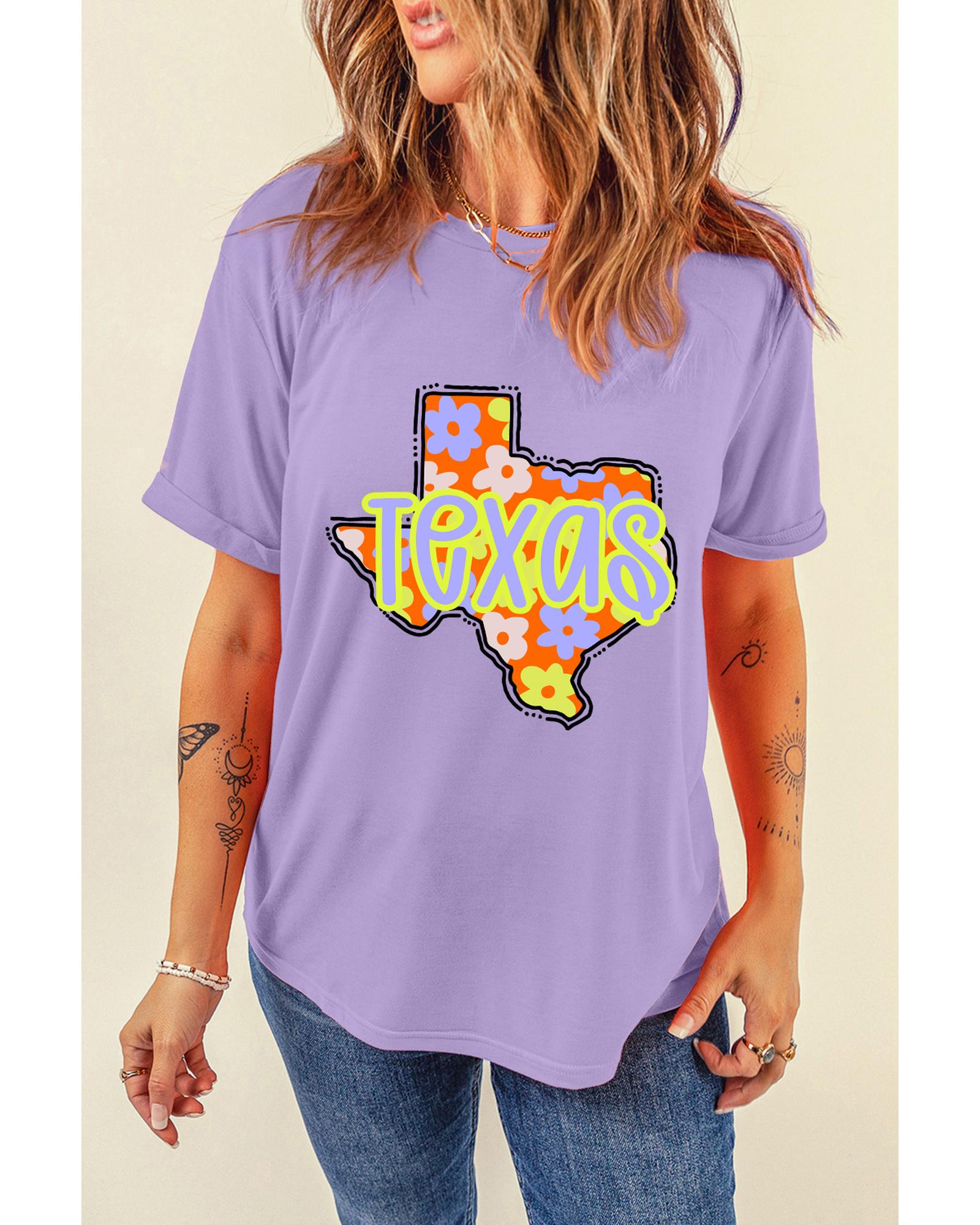 Wisteria TEXAS Flower Print Crew Neck T Shirt – M