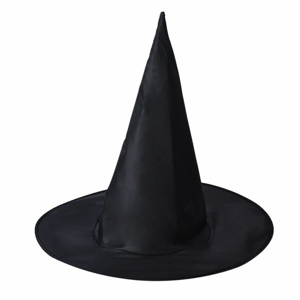 WITCH HAT Plain Black Halloween Costume Fancy Dress Womens Accessory Wizard
