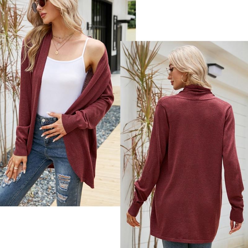 Women Mid-Length Sweater Jacket Temperament Loose Knitted Cardigan – Wine Red – S