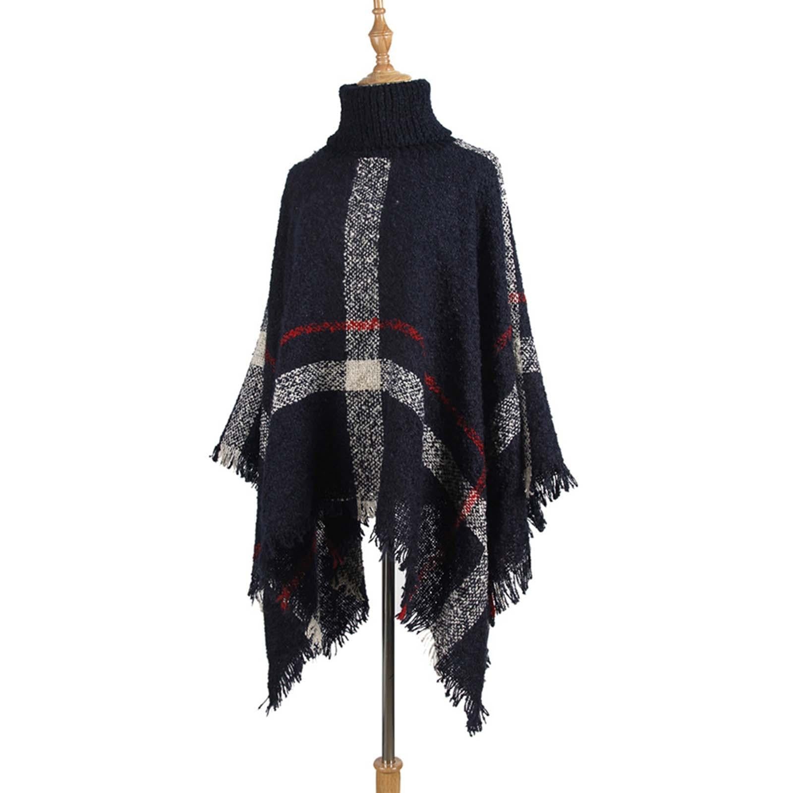 • 1 x Women Mid-Length Turtleneck Sweater Fringed Cloak Shawl – Size Free Size