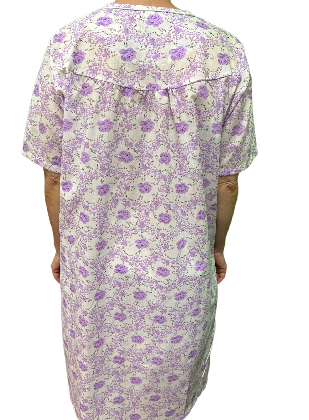 Womens 100% Cotton Short Sleeve Nightie Gown Night Sleepwear Pyjamas PJ Pajamas – Lilac – 22