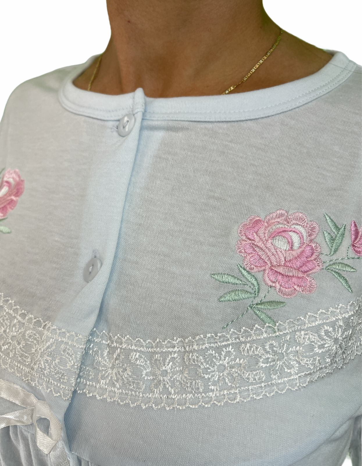 Womens Ladies Cotton Nightie Night Gown Pajamas Pyjamas Sleepwear PJ – Blue – 20