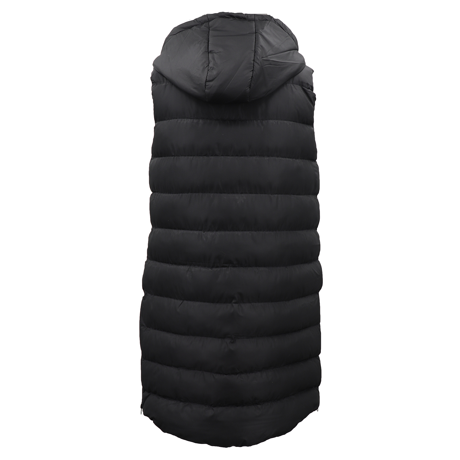 Women’s Longline Padded Vest Hooded Jacket Puffer Puffy Quilted Zip Coat Gilet, Black, 14