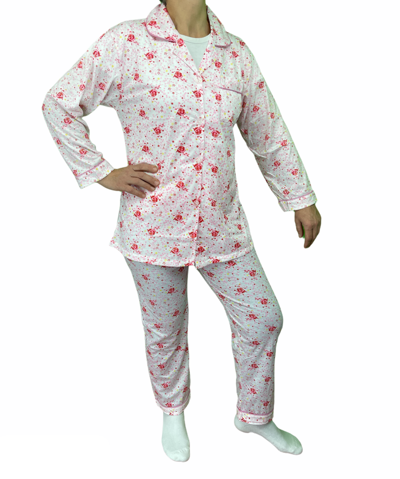 Womens PYJAMAS PJs Set Pajamas Ladies Cotton PJ Womens Long Sleeve Sleepwear – Pink – 16