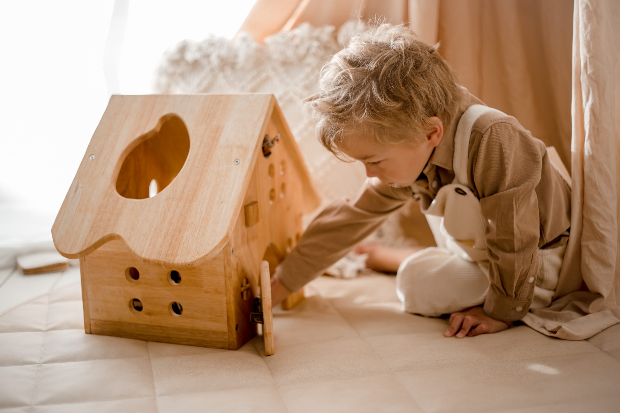 This beautifully made wooden barn house is perfect for pretend play. It is a signature piece in any setting. The house features a good size and a solid structure, easy to be set up perfect for all your pretend play experiences.  They are open ended toys which provide children with the perfect opportunity to explore their imaginative skills and can be added to any play space.
