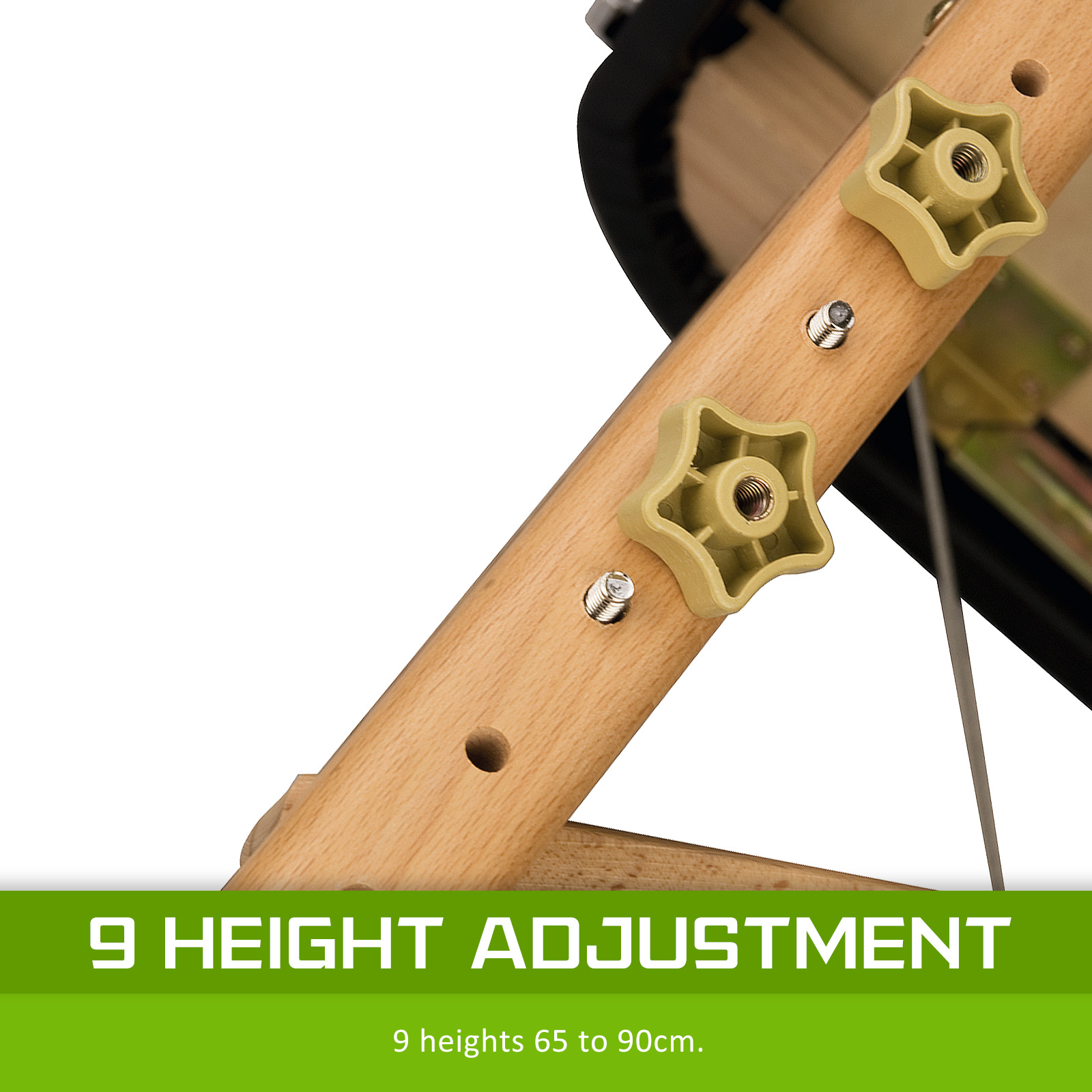Wooden frame! its sturdy structure allows the table to support up to 300kg. Furthermor, With 9 height adjustments ranging from 63cm – 84cm, this table accommodates user of different heights.