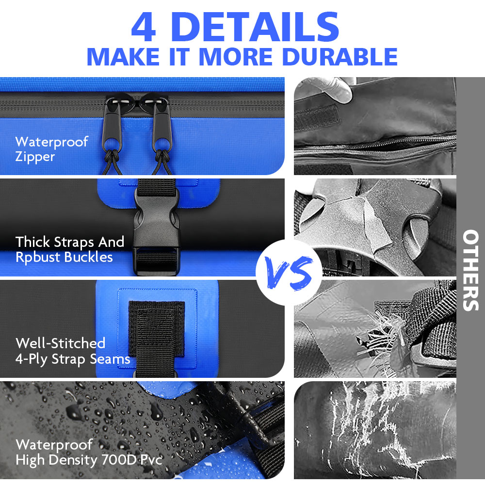 Upgraded waterproof zipper and widened zipper cover. We’ve upgraded it to a waterproof zipper with a widened 4.7″ zippered lid that prevents rainwater penetration and helps keep your stuff 100% dry.