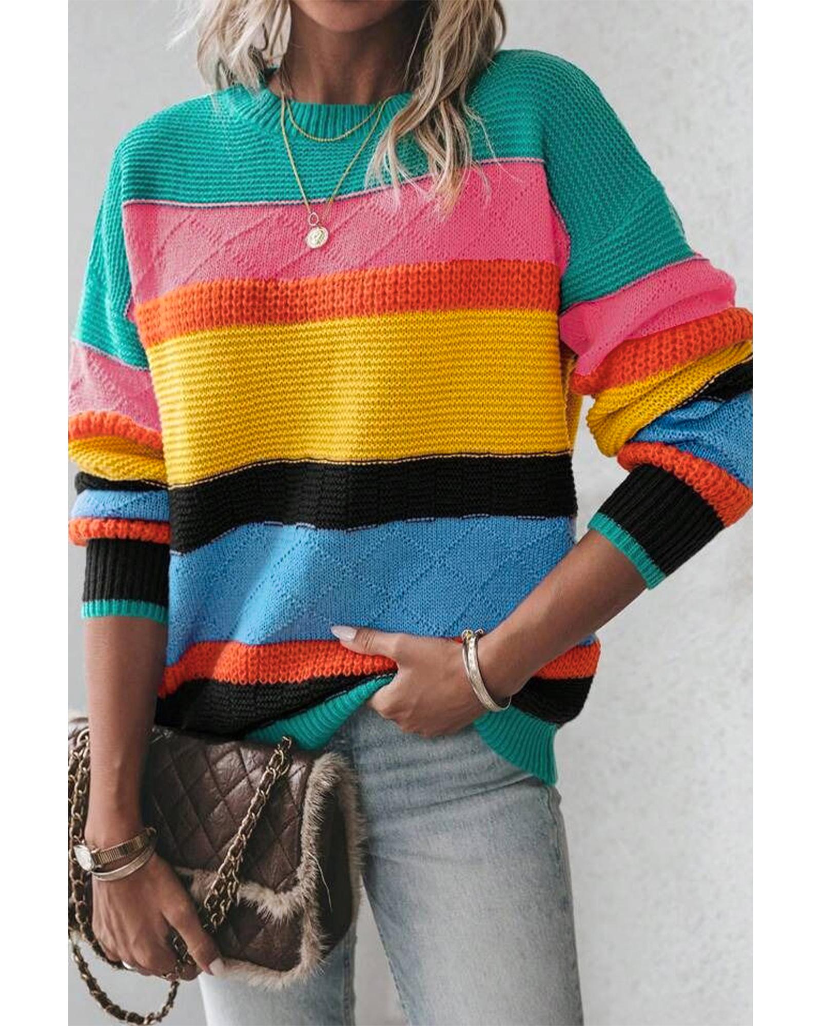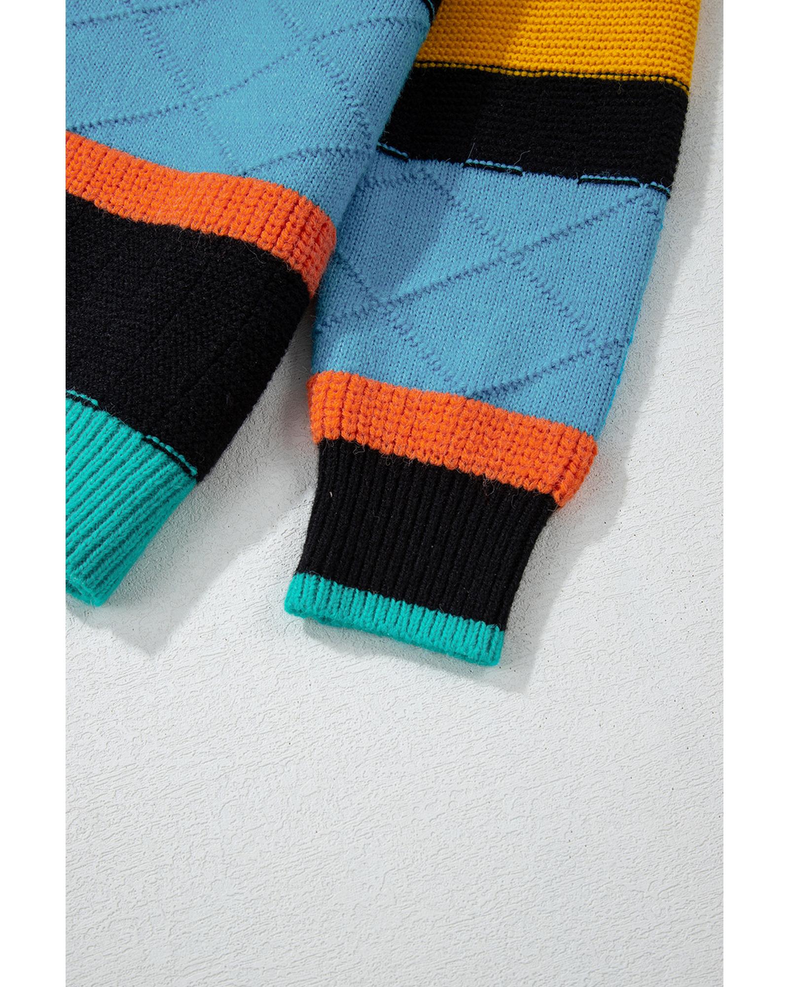 Yellow Colorblock Mixed Textured Drop Shoulder Sweater – XL