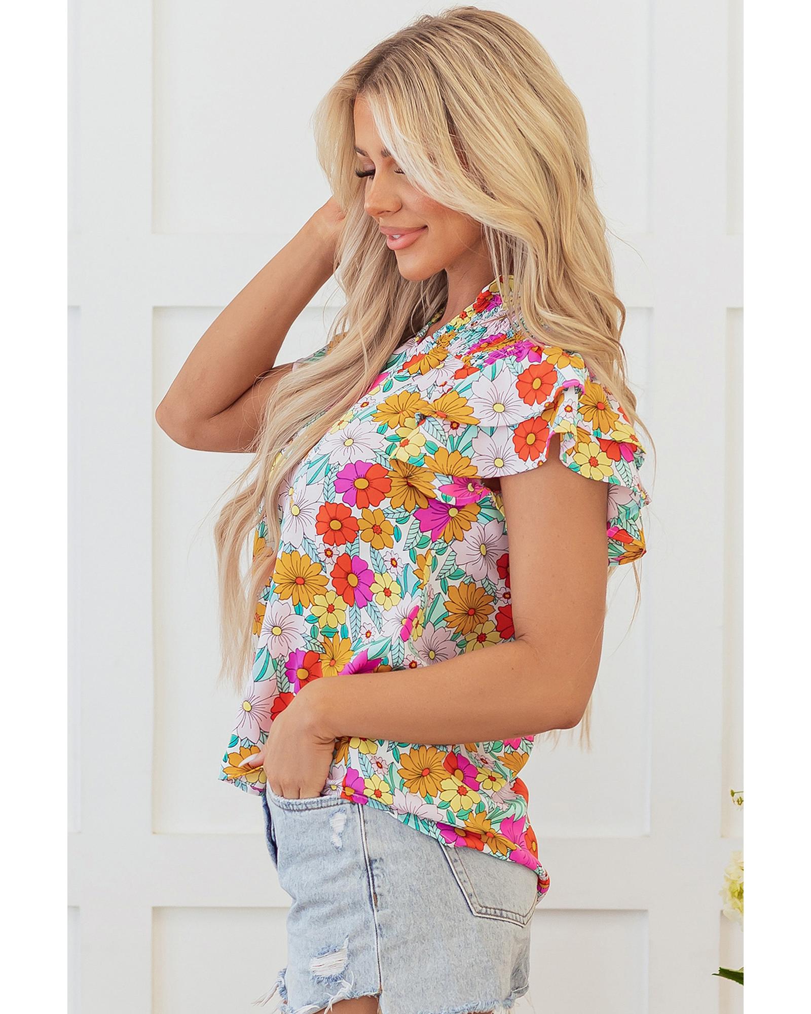 • Yellow floral print blouse