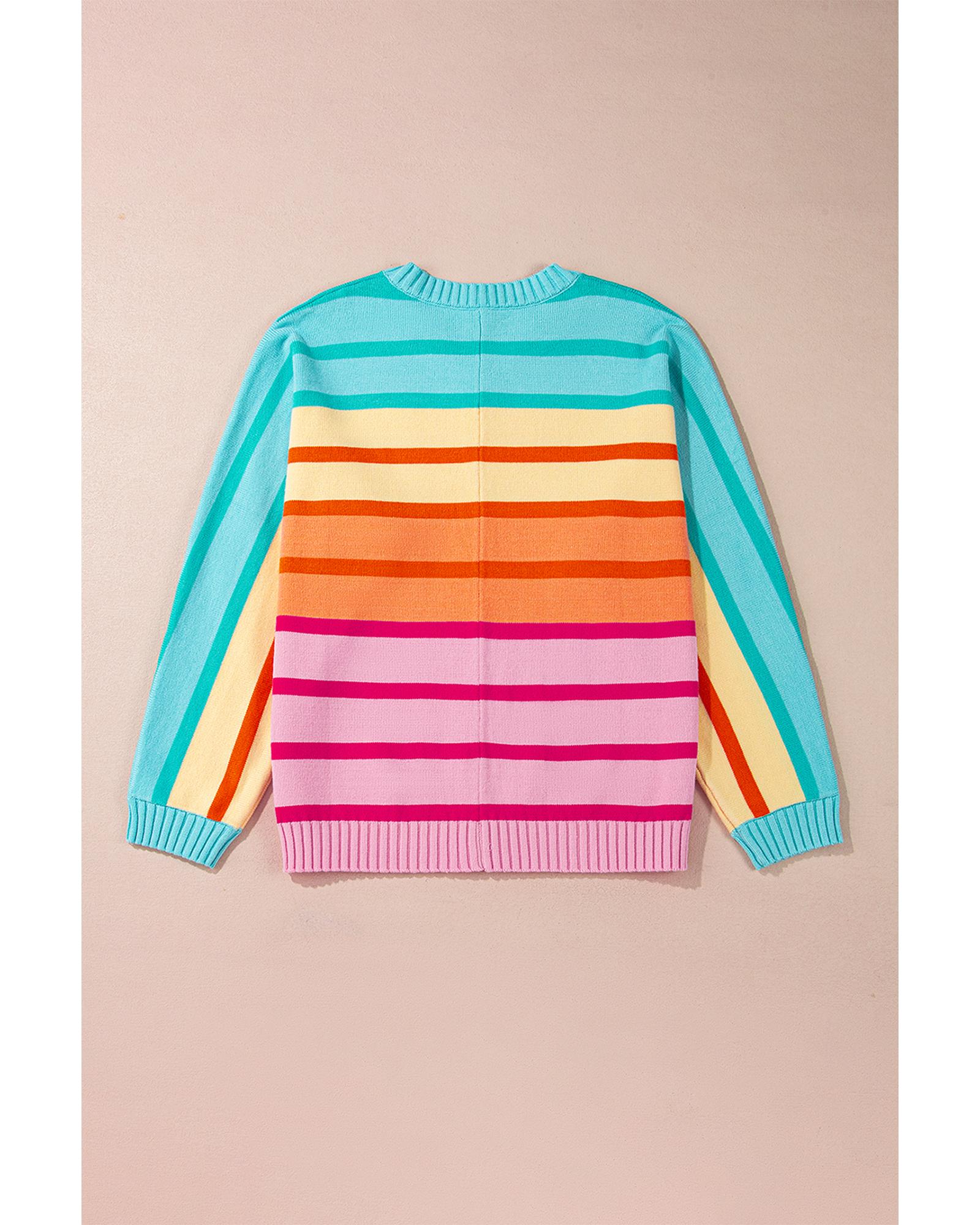 • Yellow Stripe Gradient Striped Ribbed Edge Loose Sweater