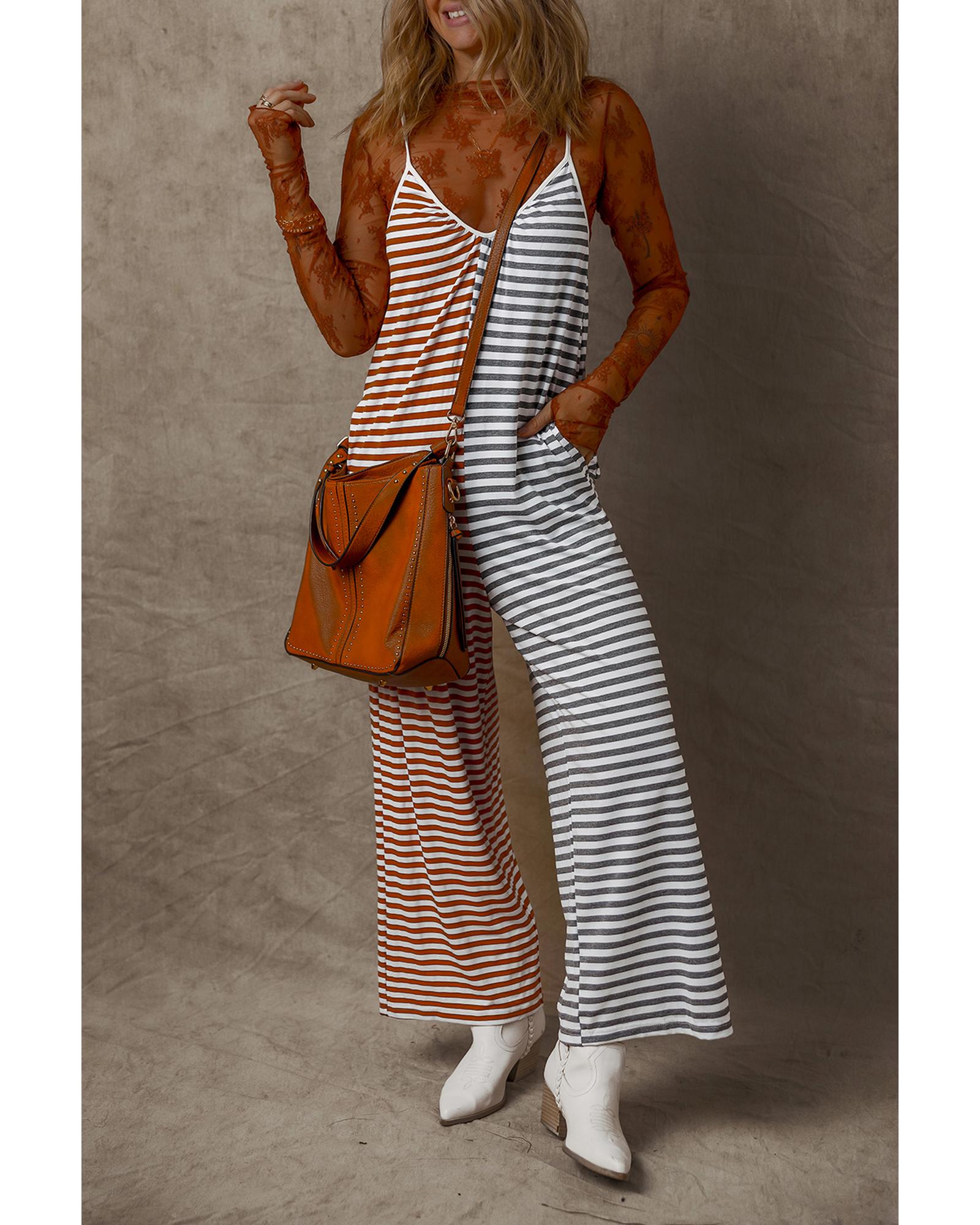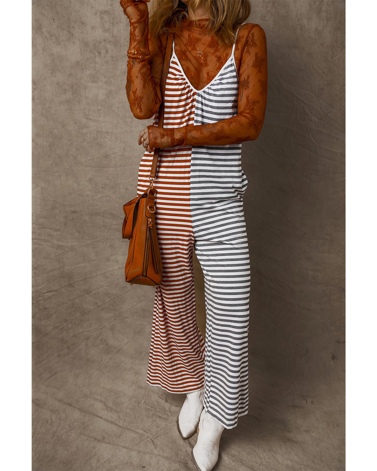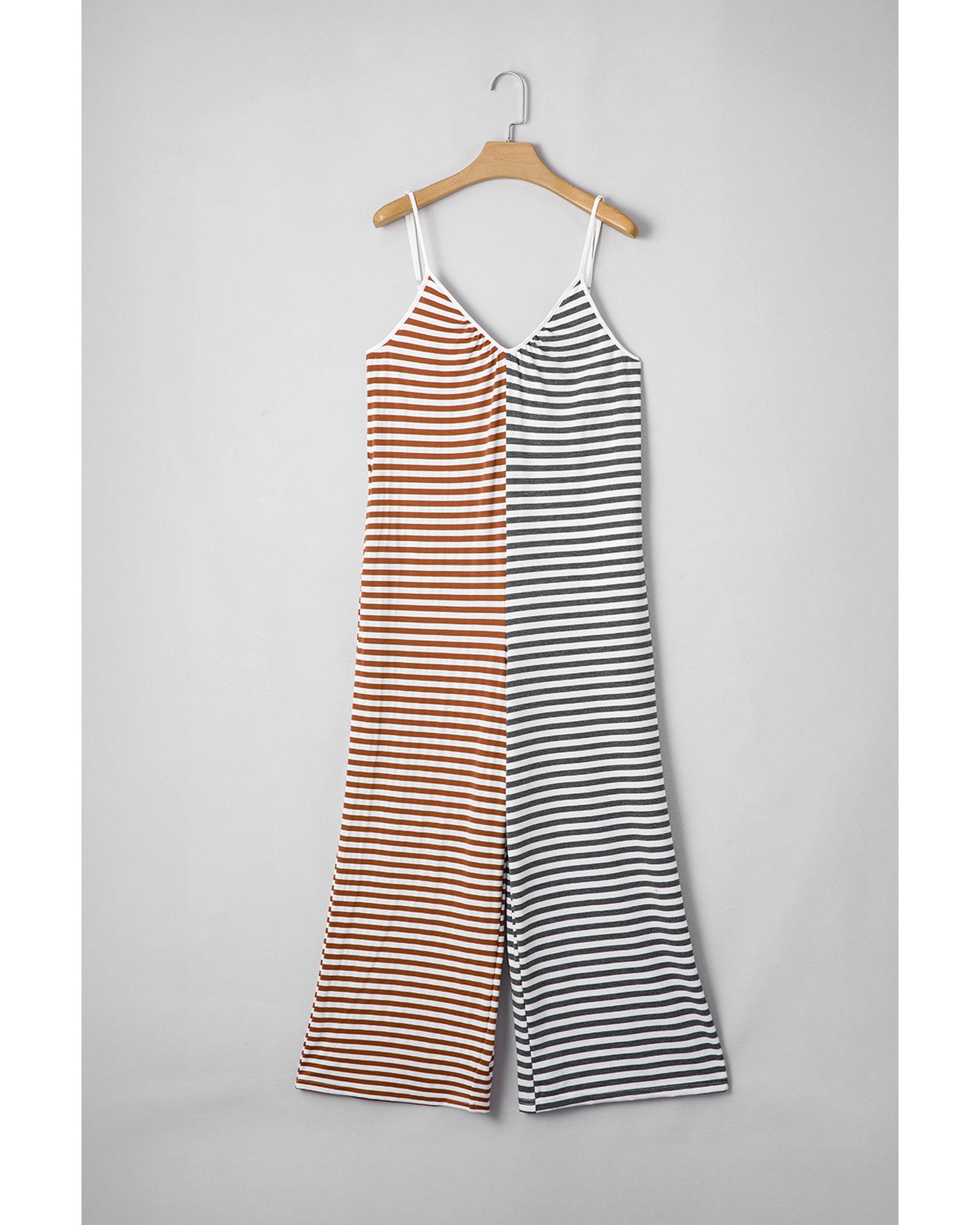 Yellow Stripe Two Tone Contrast Spaghetti Strap Backless Overall – L